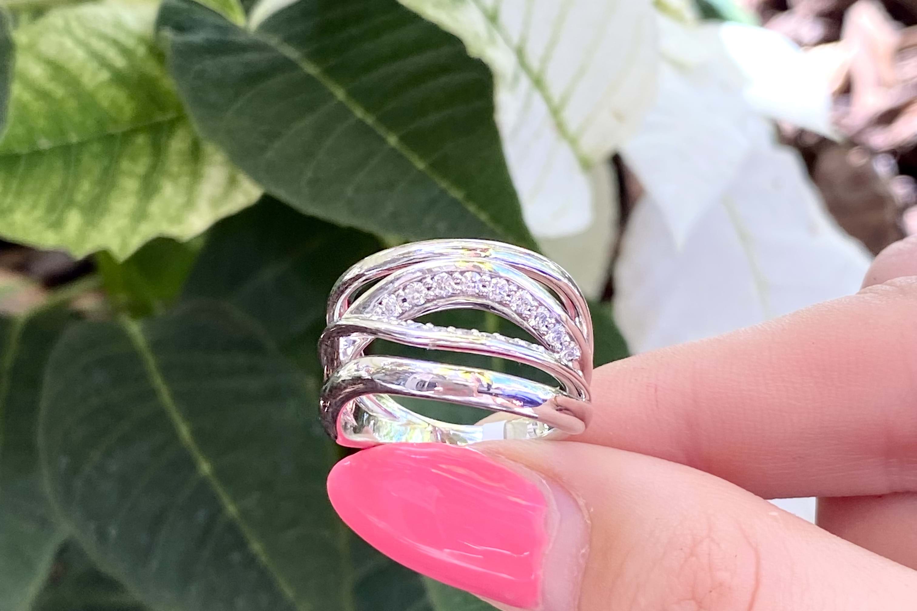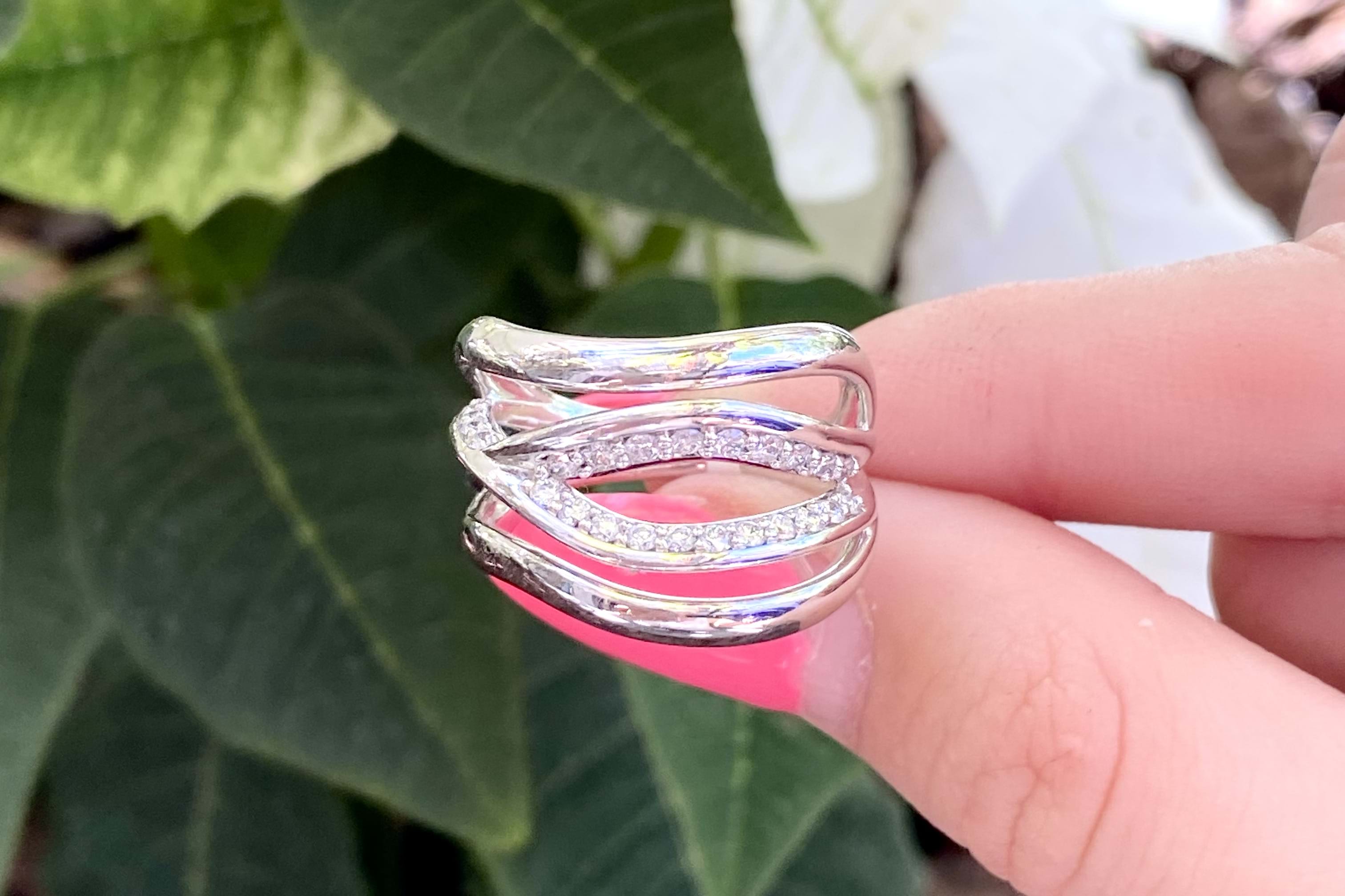 18ct White Gold 0.42ct GH SI Diamond Set Multi Swirl Wide Ring (N)