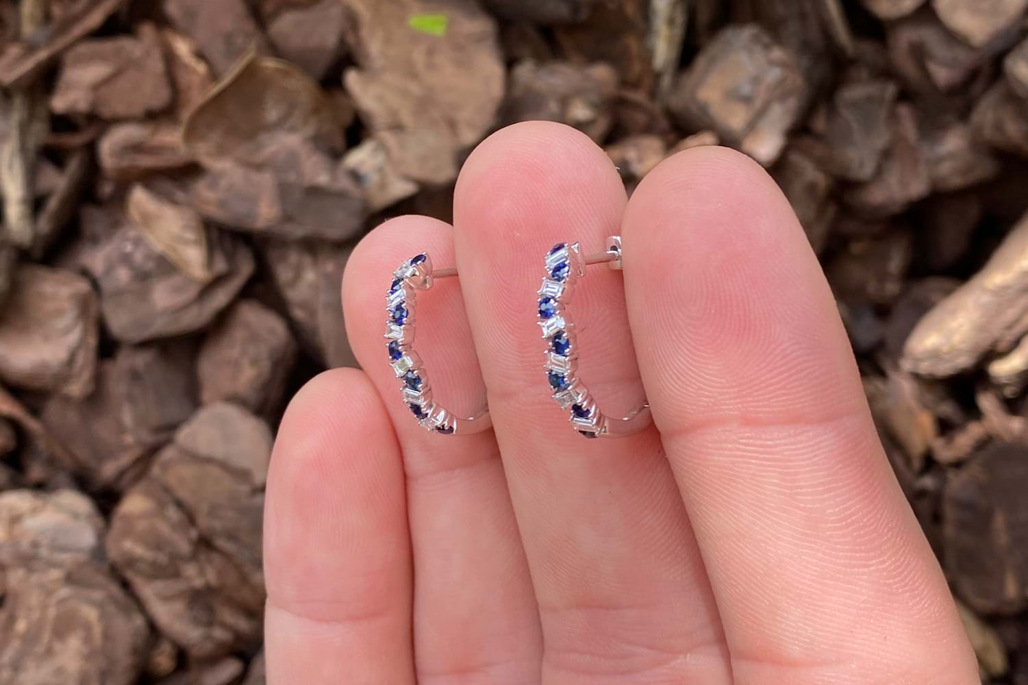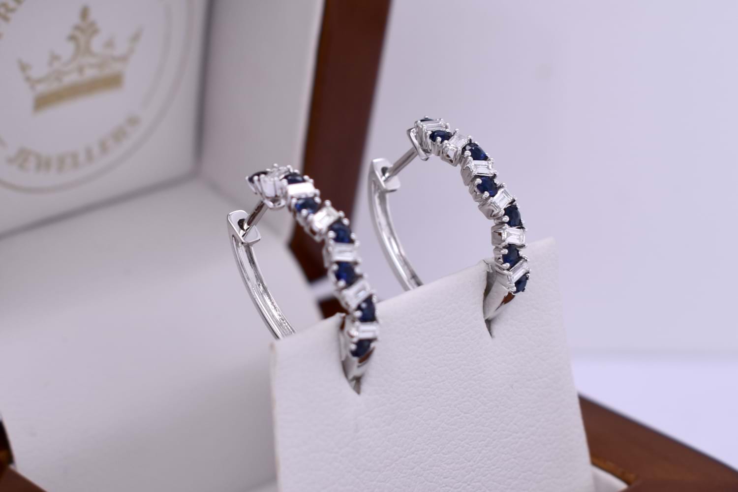 18ct White Gold 0.46ct Sapphire & 0.25ct Diamond Huggies