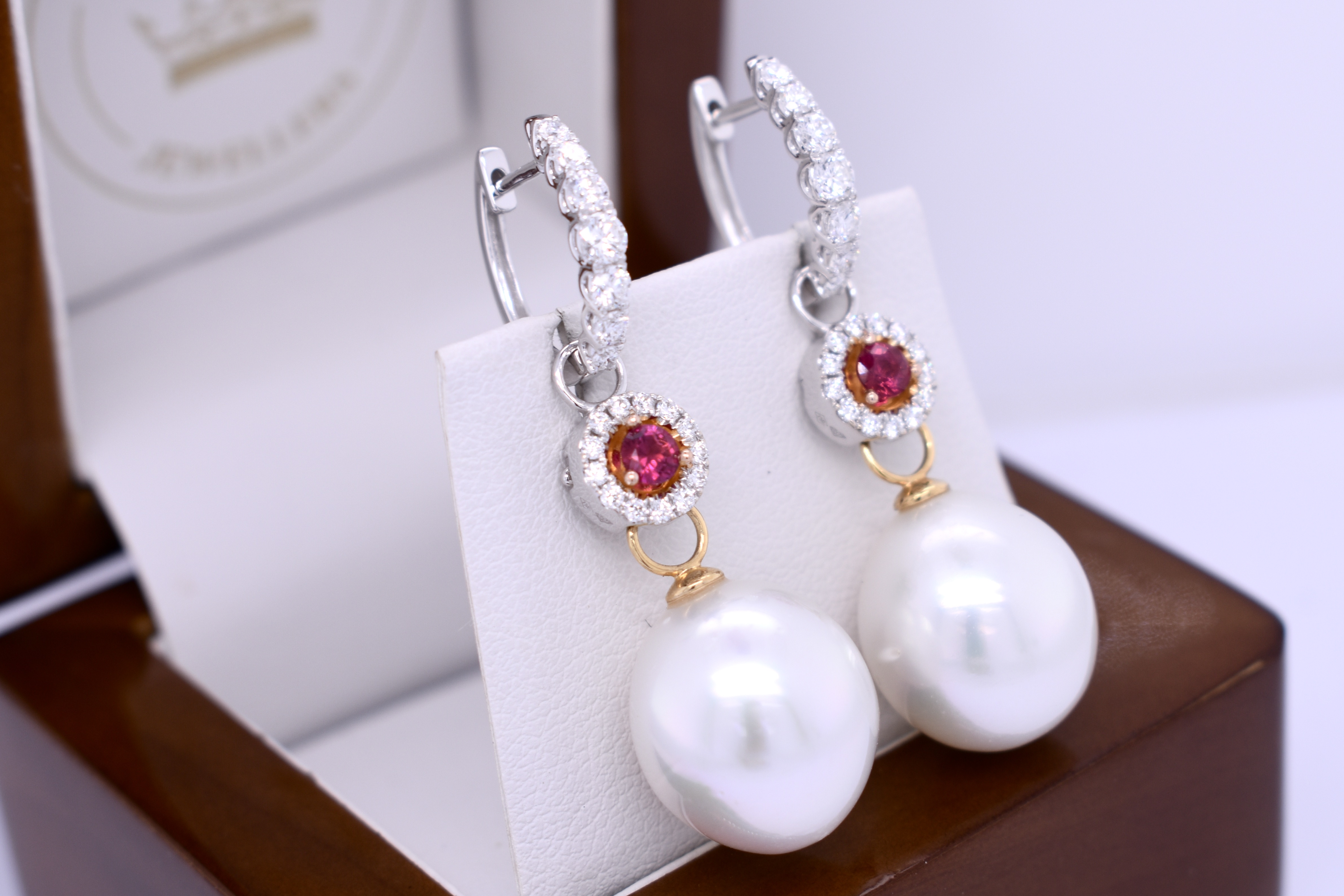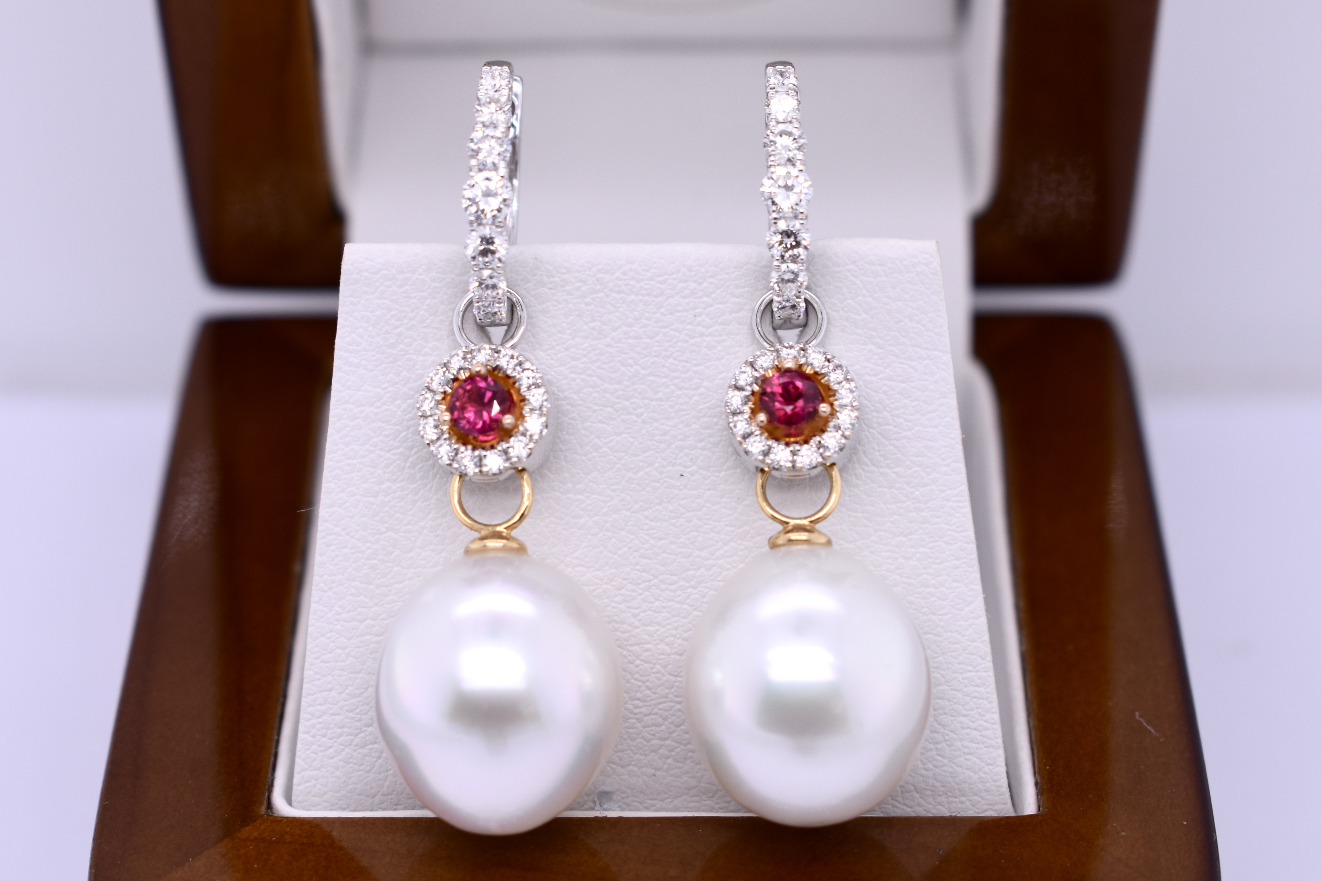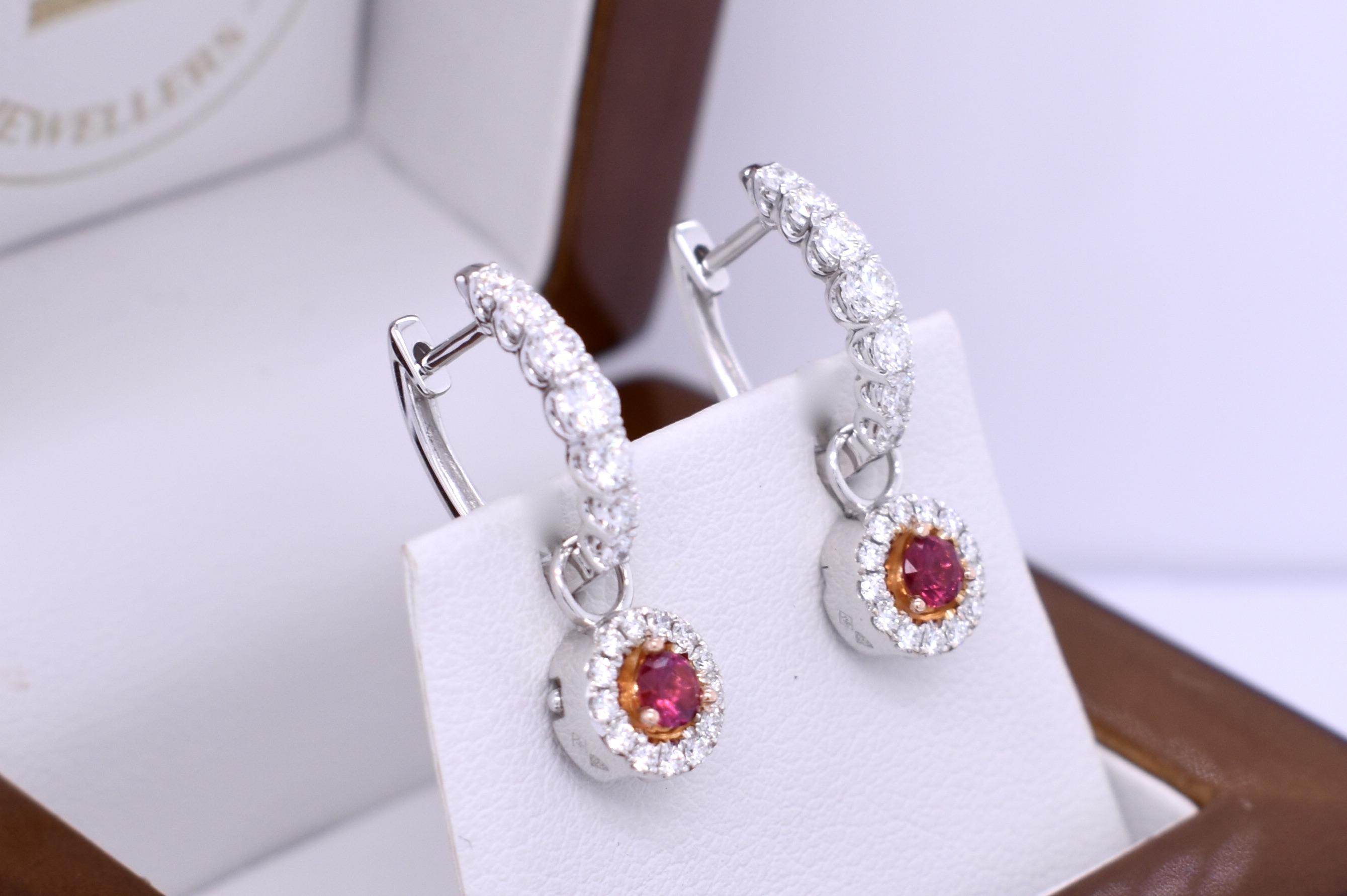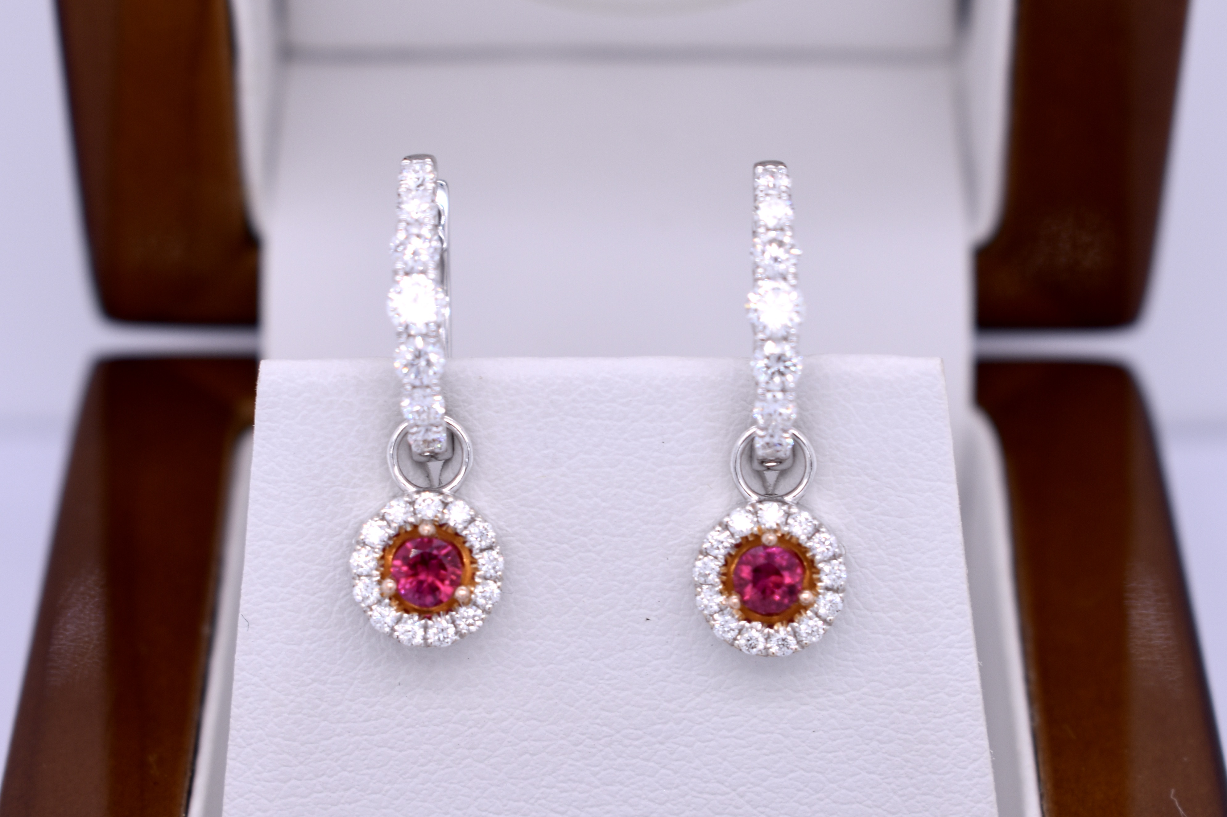 18ct White & Yellow Gold 0.33ct Burmese Ruby + 0.22ct White Diamond Halo Earring Enhancers with Additional Drop