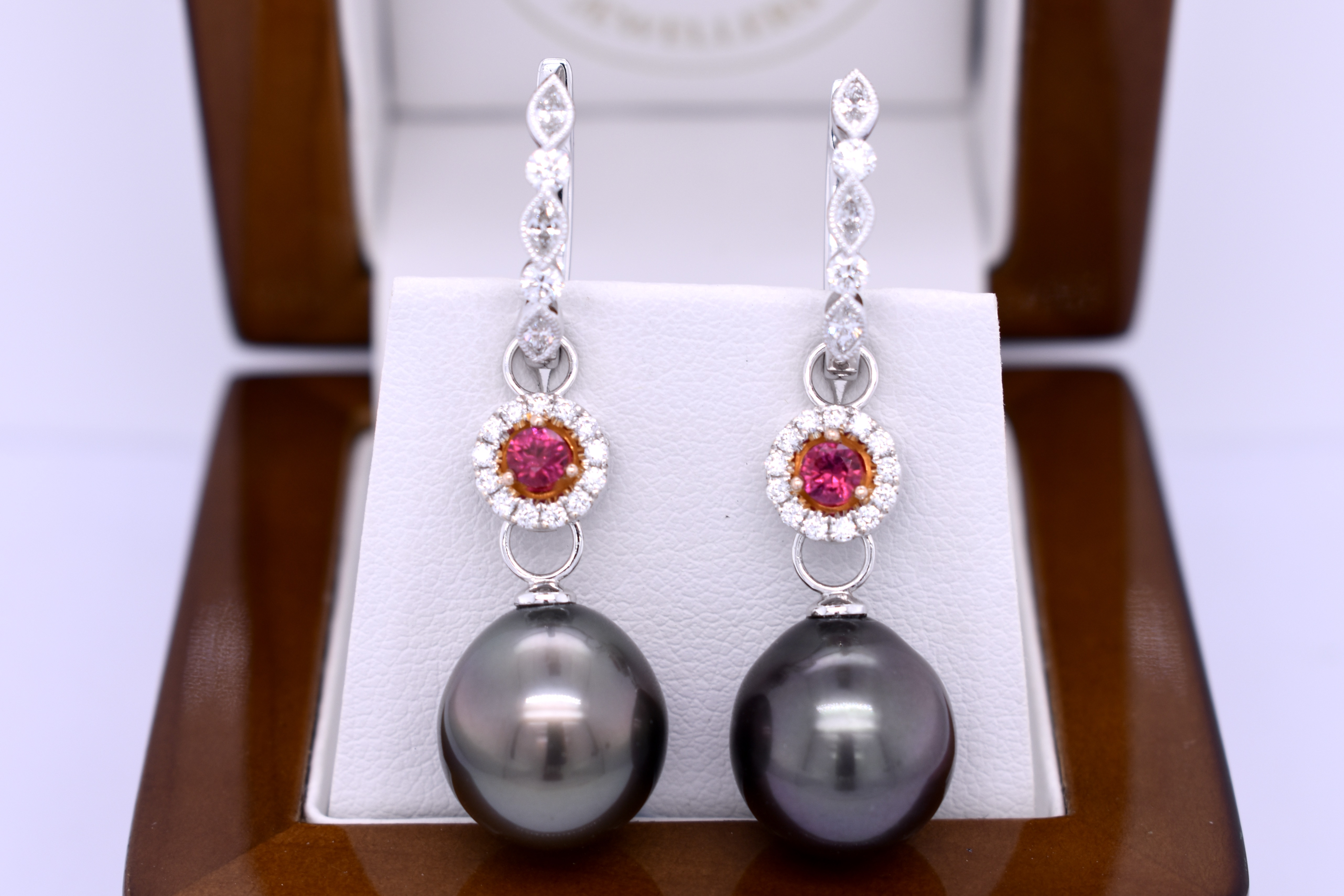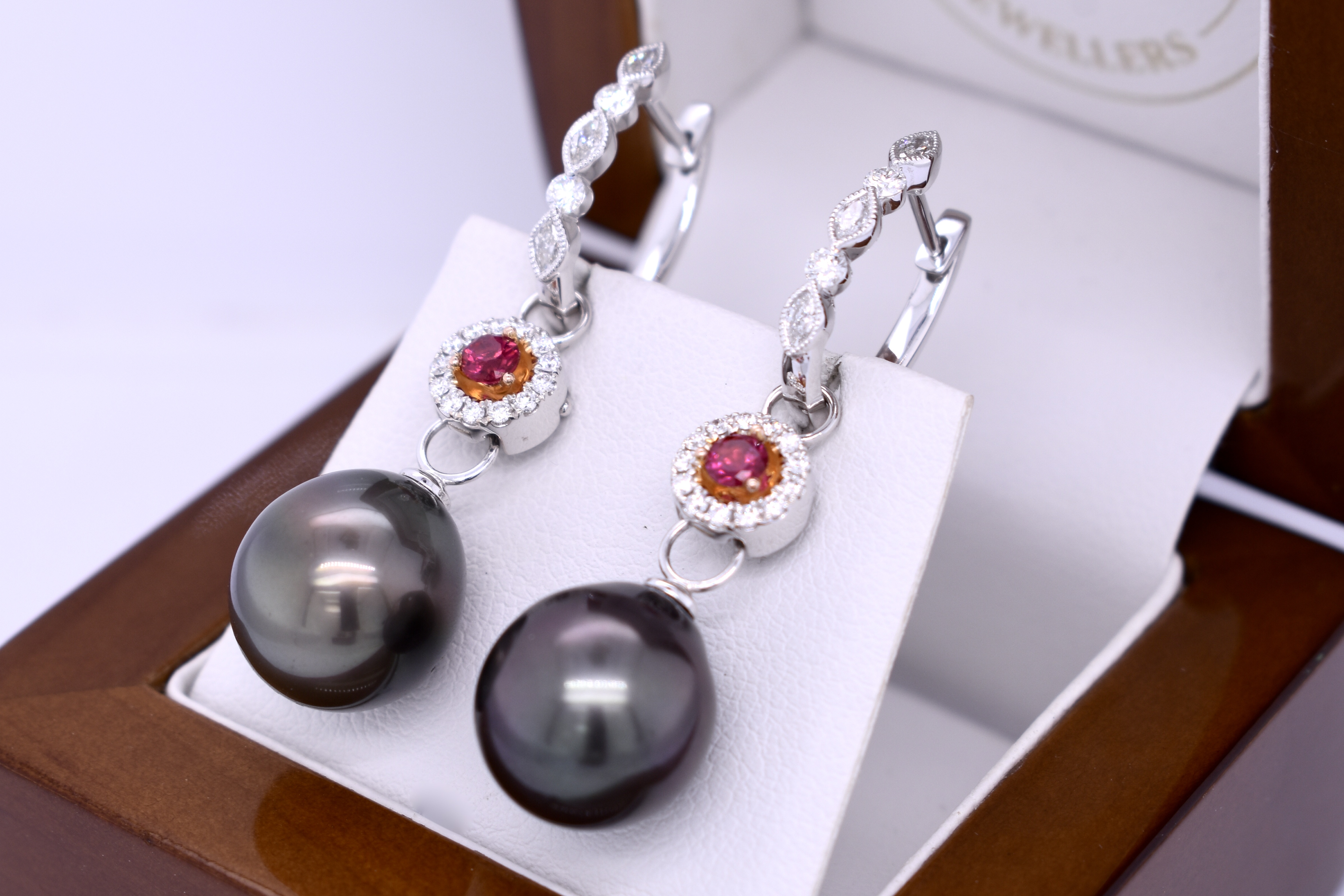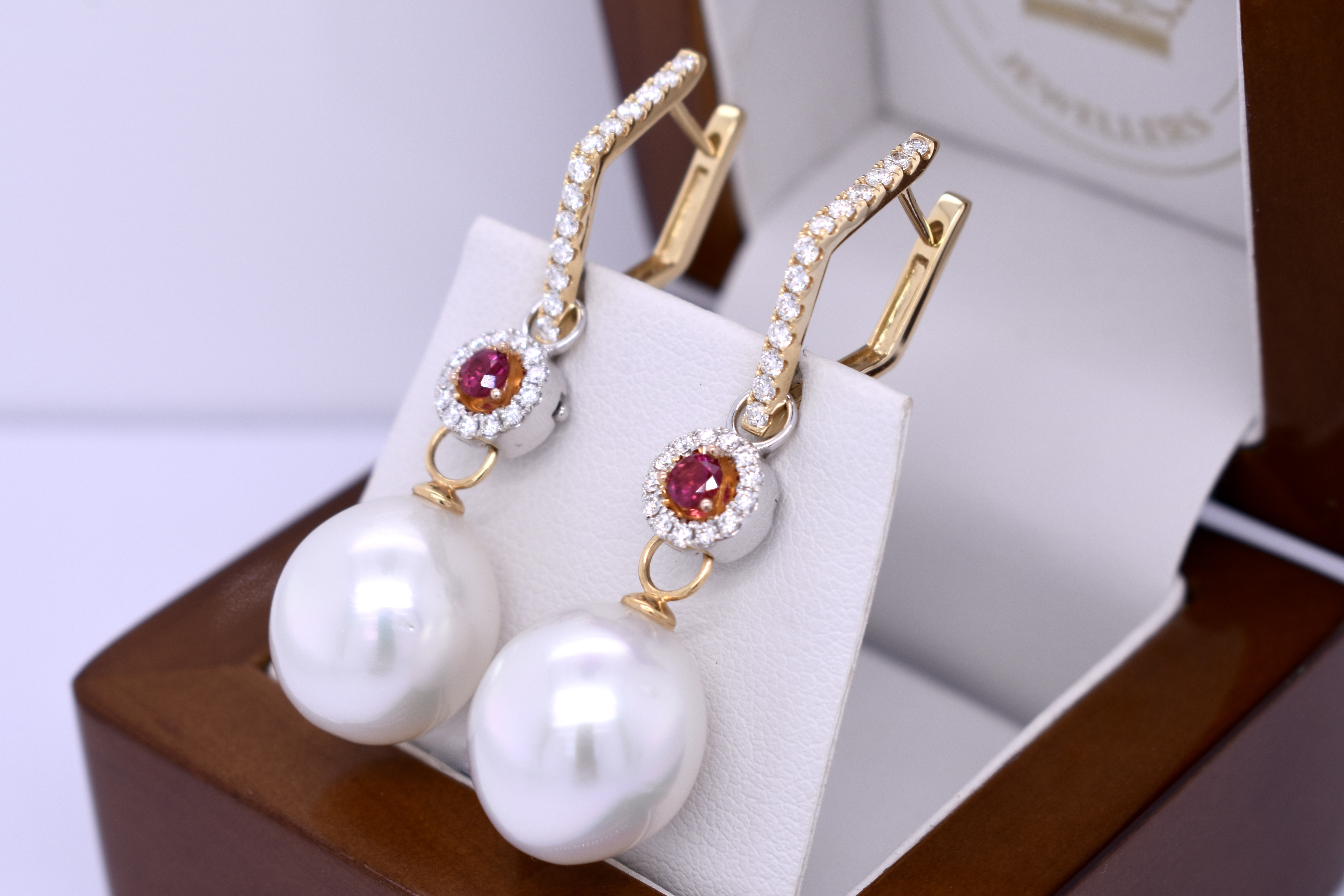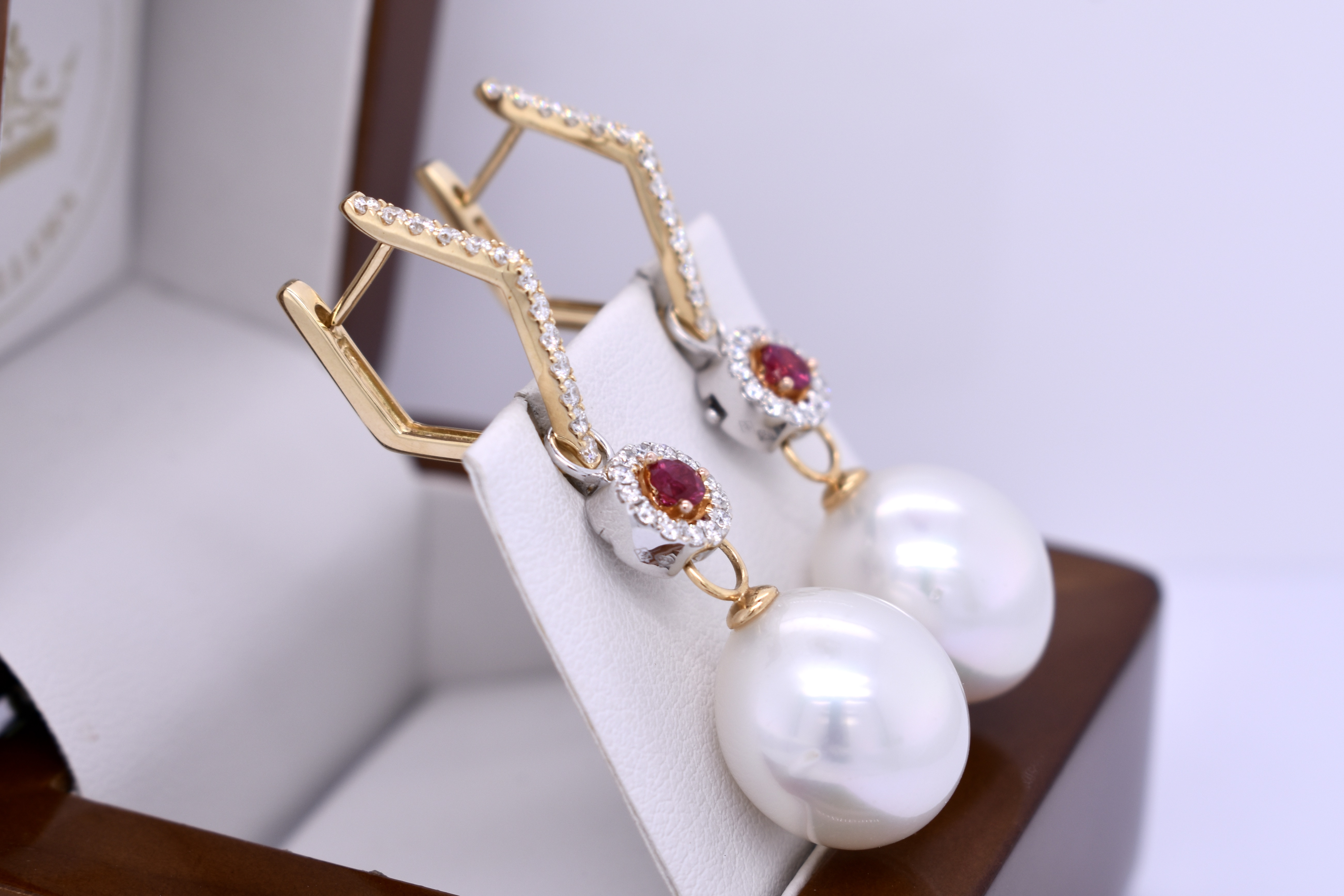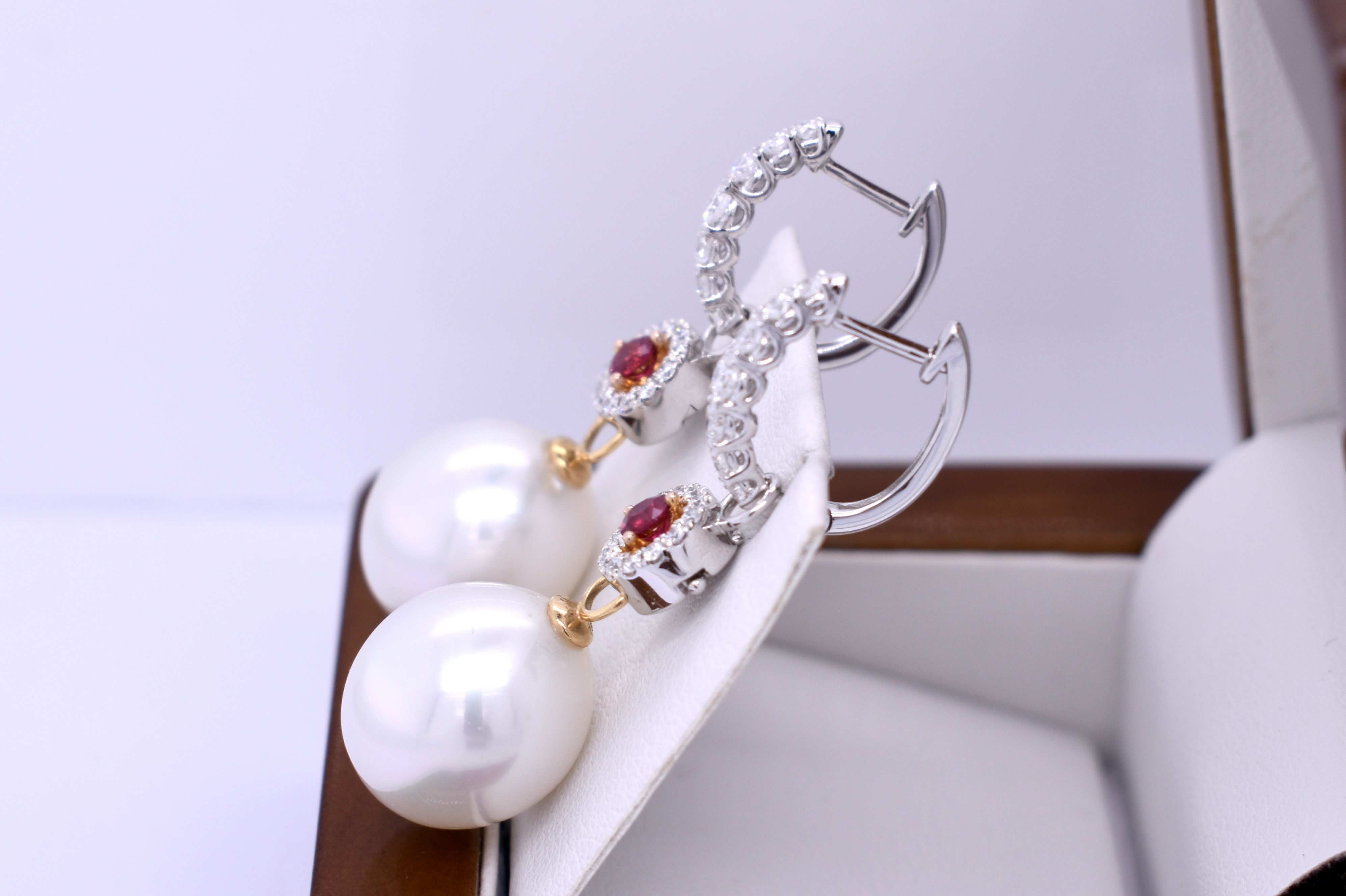 18ct White & Yellow Gold 0.33ct Burmese Ruby + 0.22ct White Diamond Halo Earring Enhancers with Additional Drop
