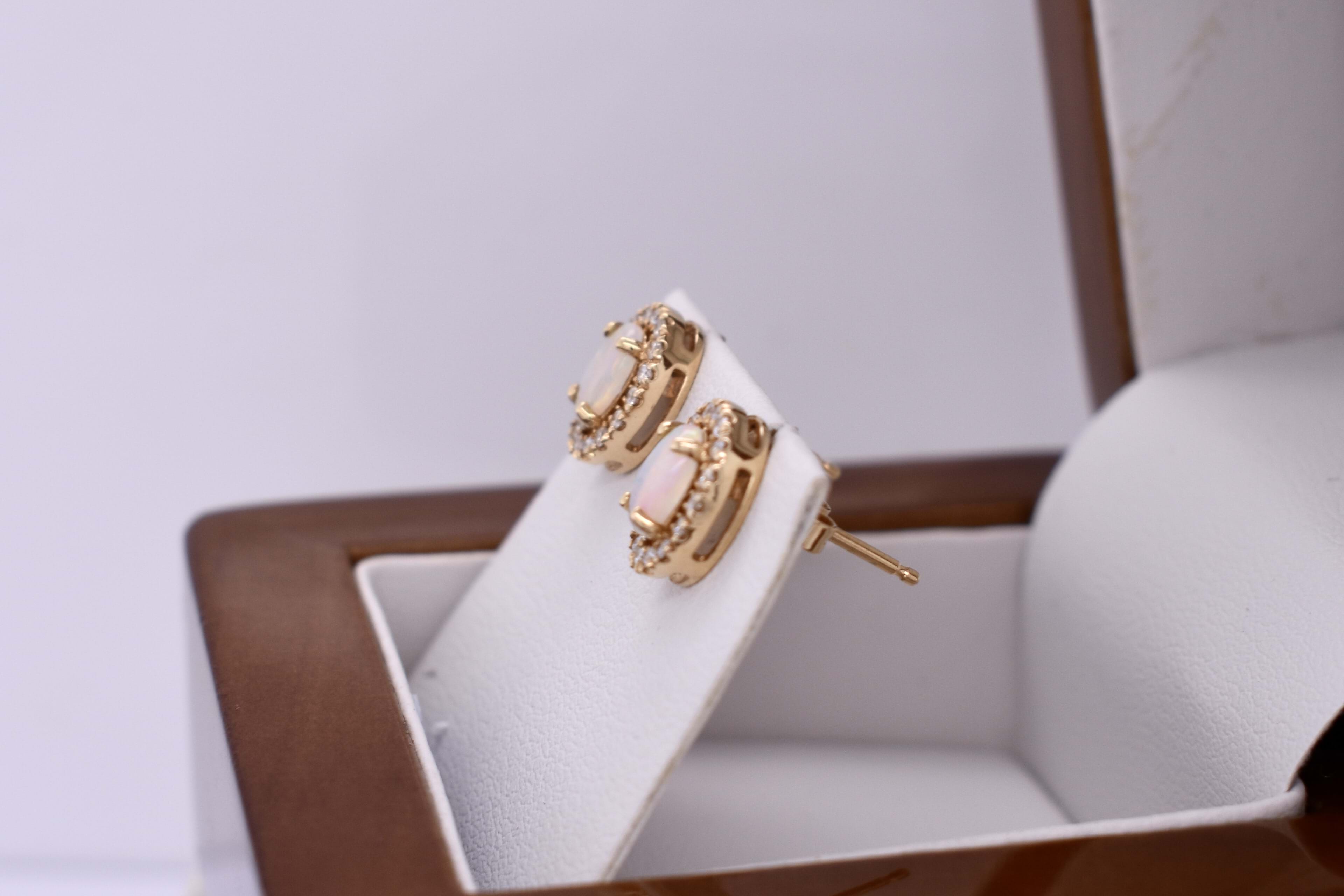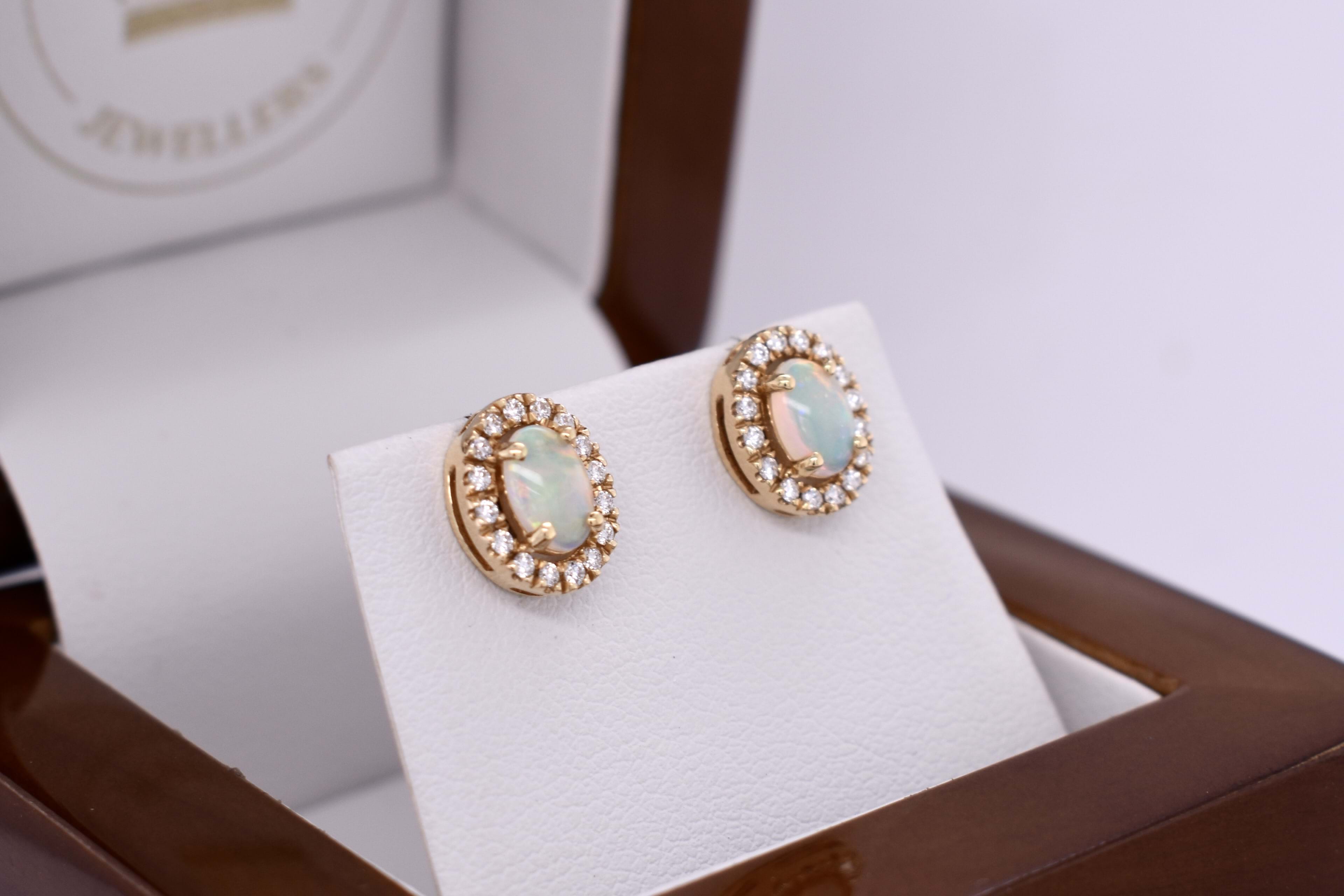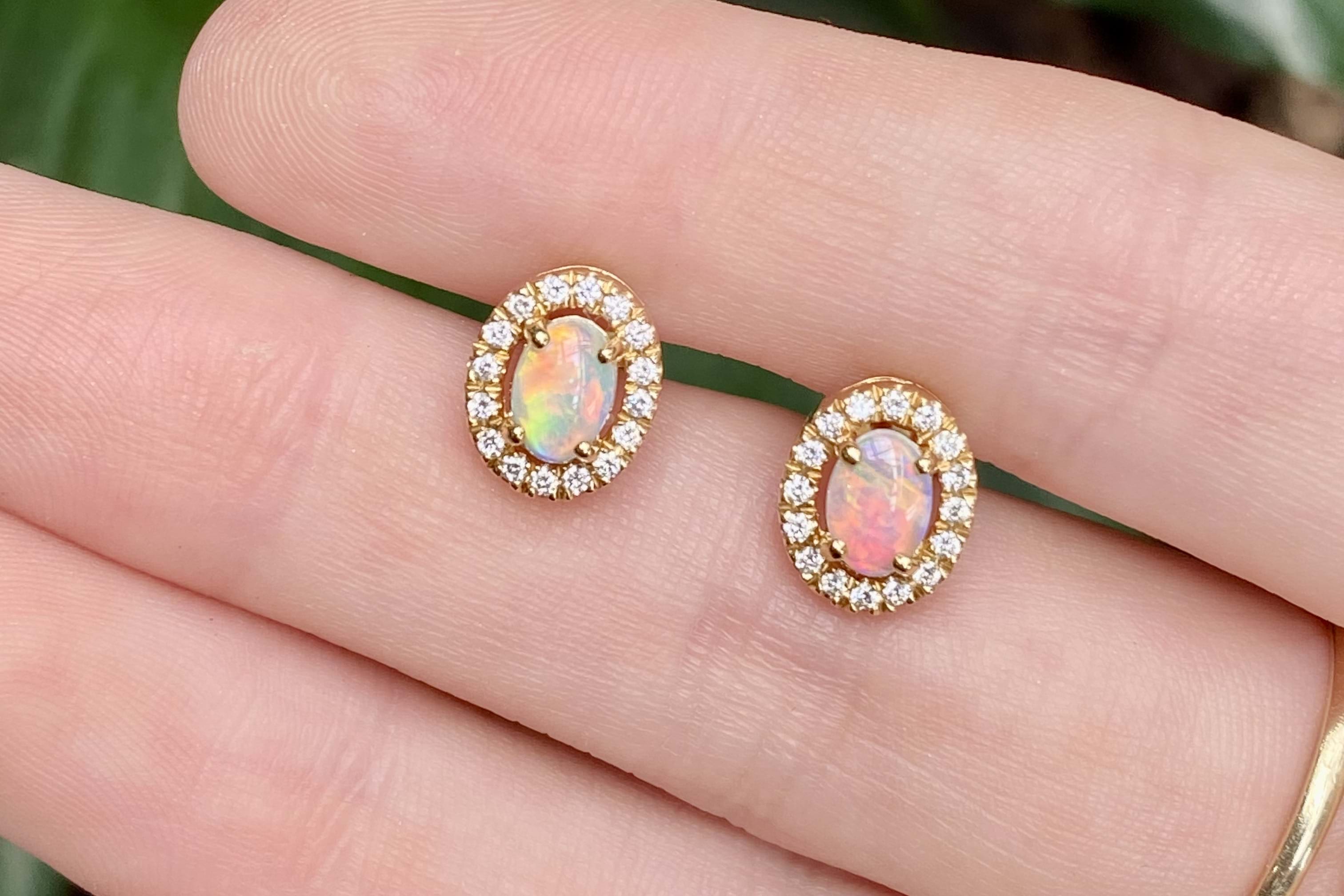 18ct Yellow Gold 0.52ct Crystal Opal & Diamond Studs