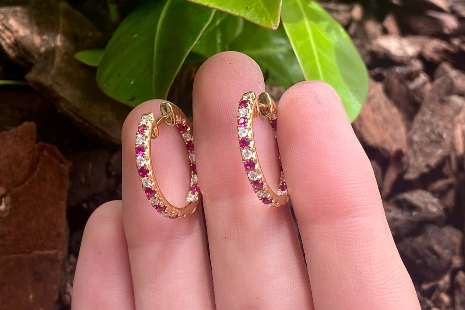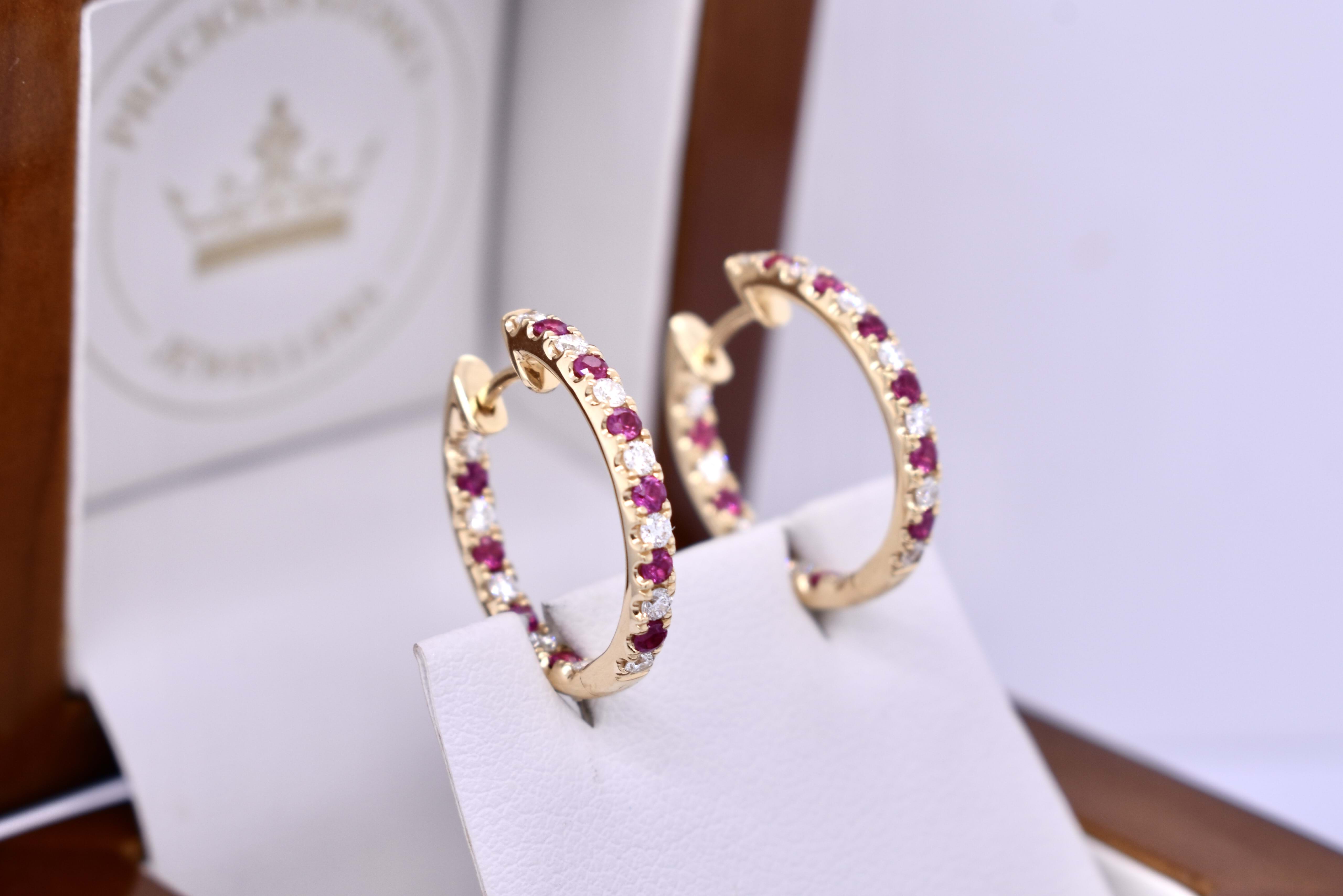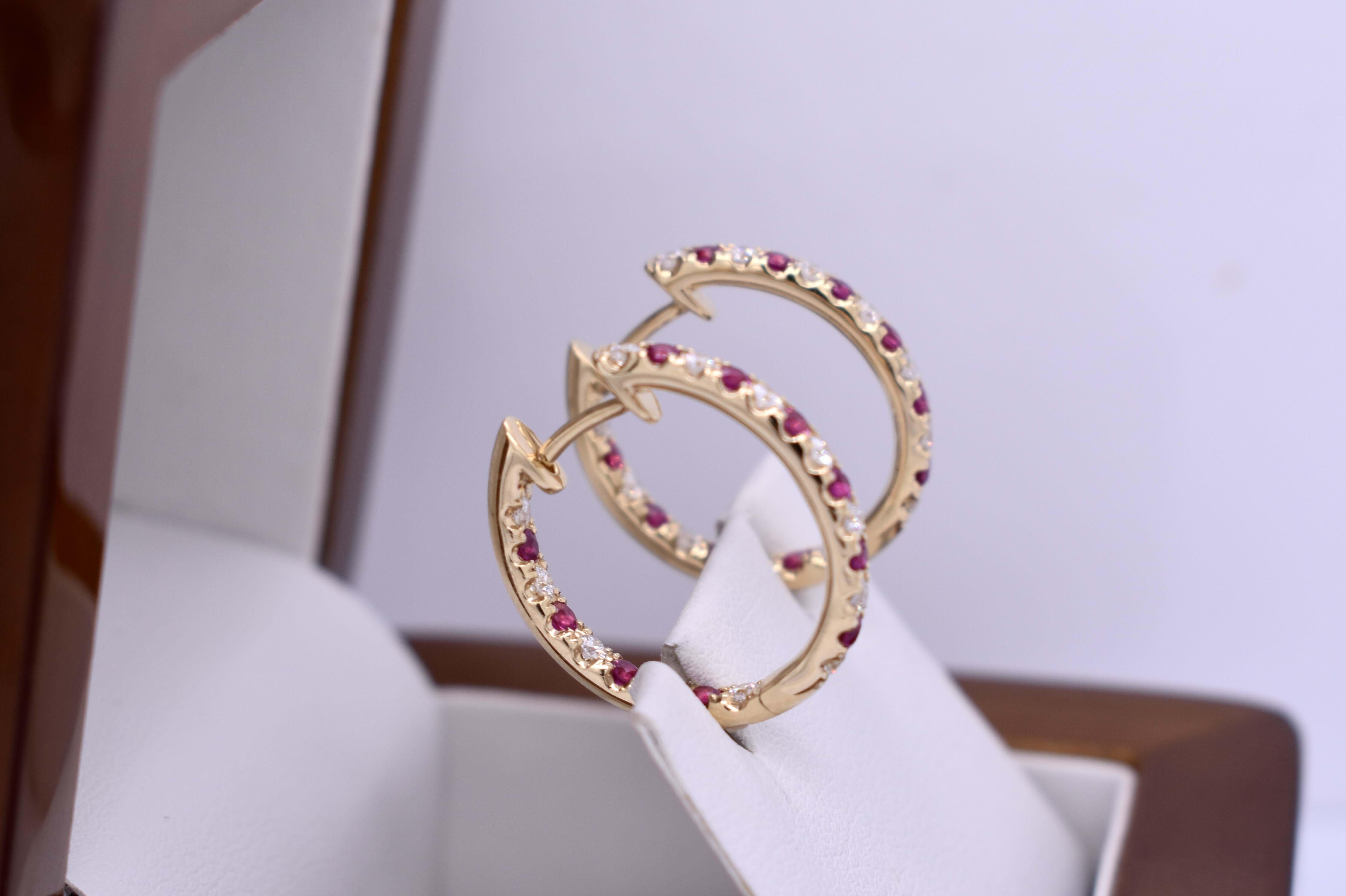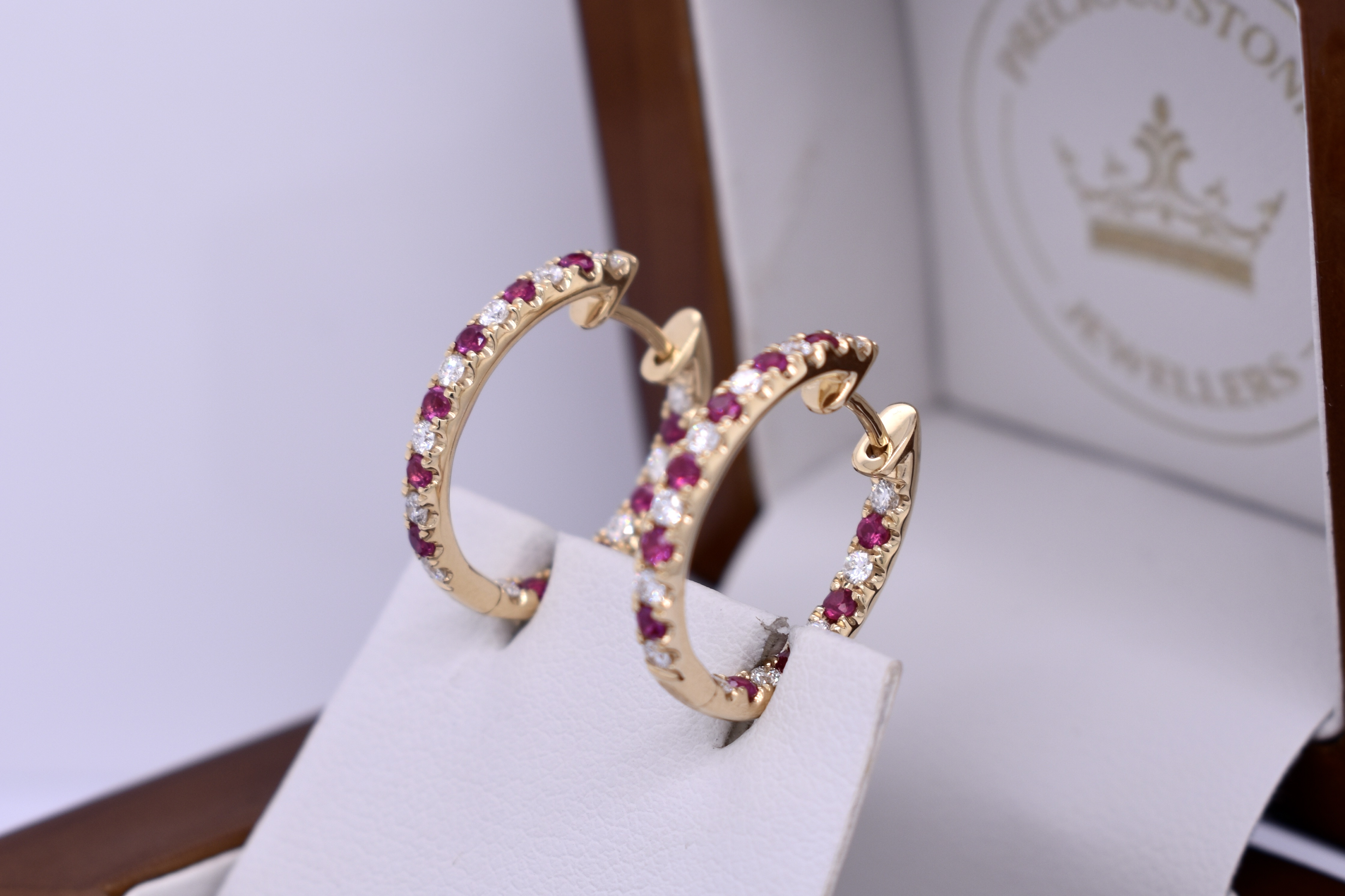 18ct Yellow Gold 0.61ct Ruby & 0.44ct Diamond Hoop Earrings