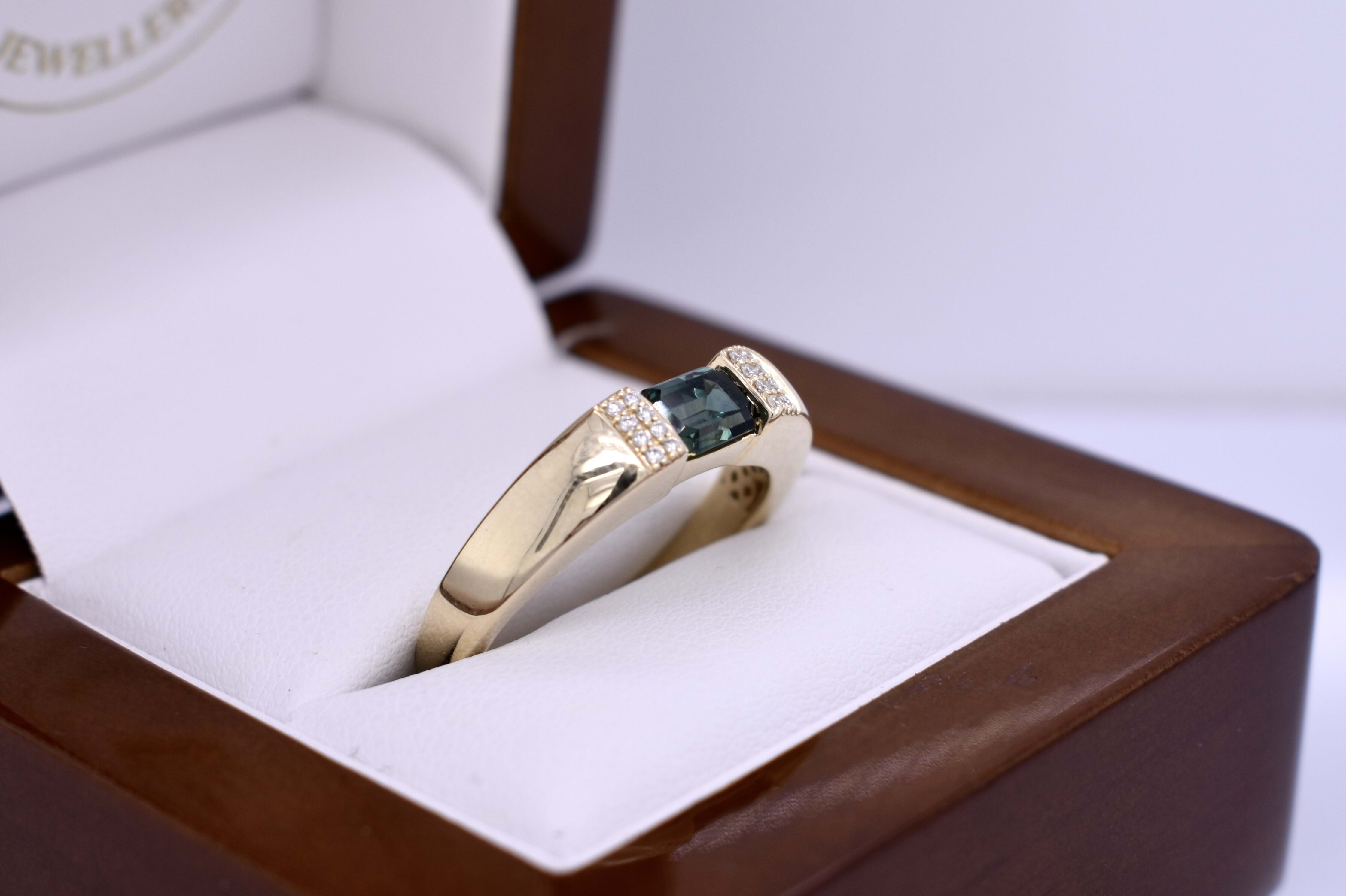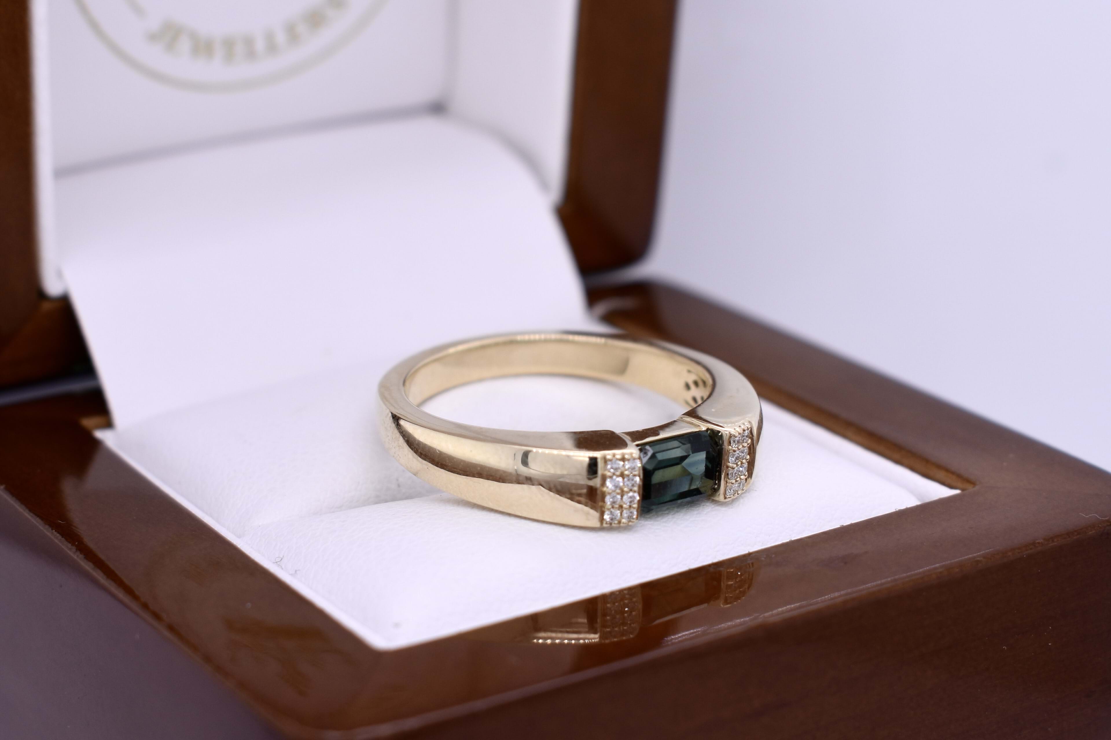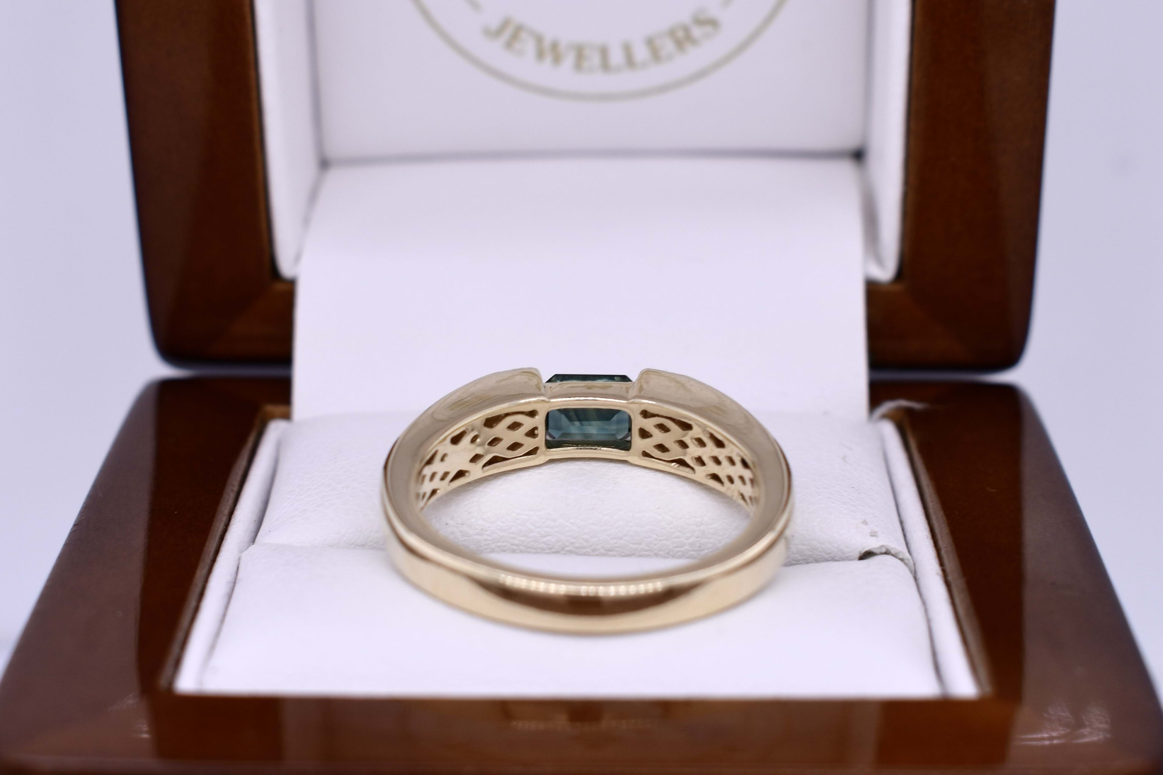 9ct Yellow Gold 1.01ct Australian Emerald Cut Sapphire & 0.06ct Diamond Ring (S+)