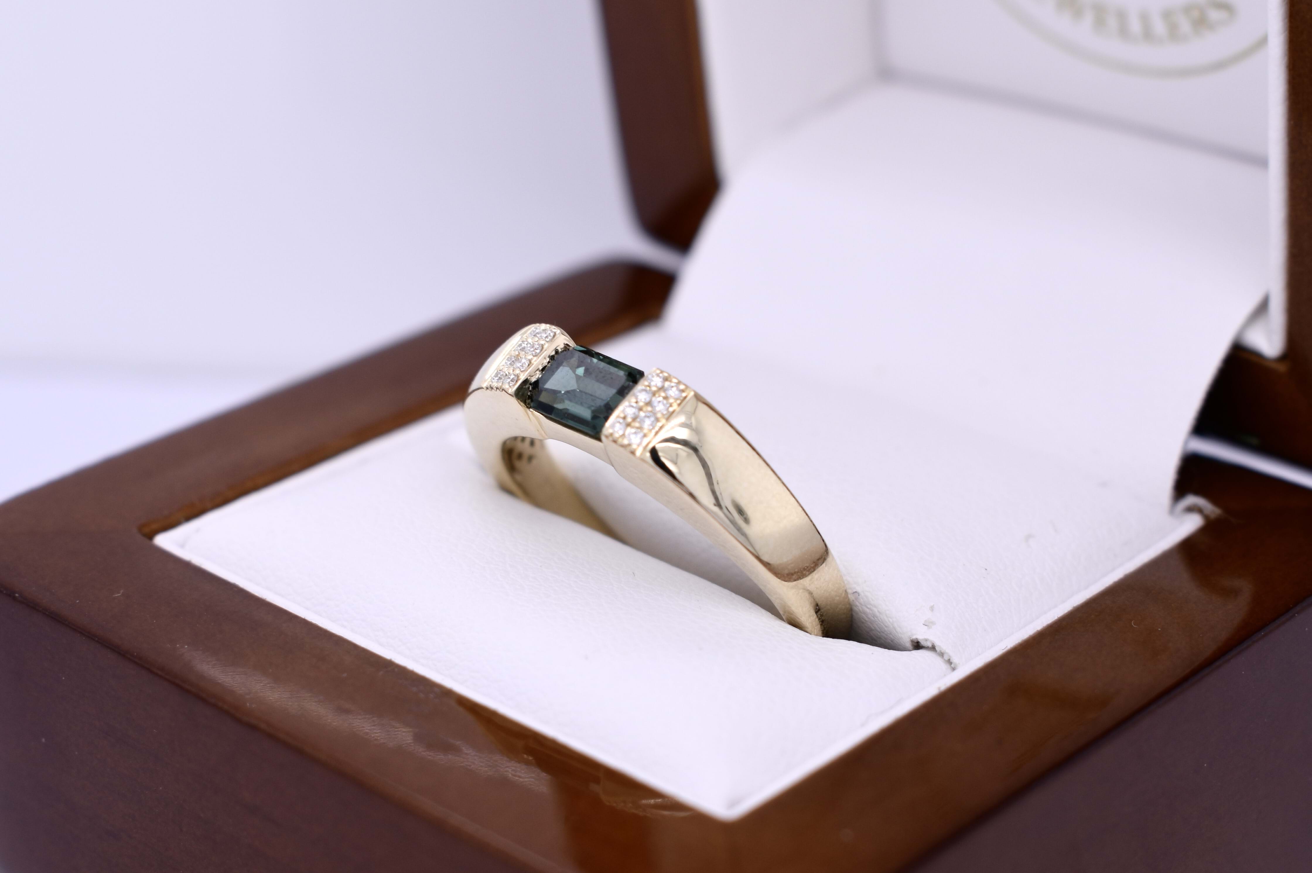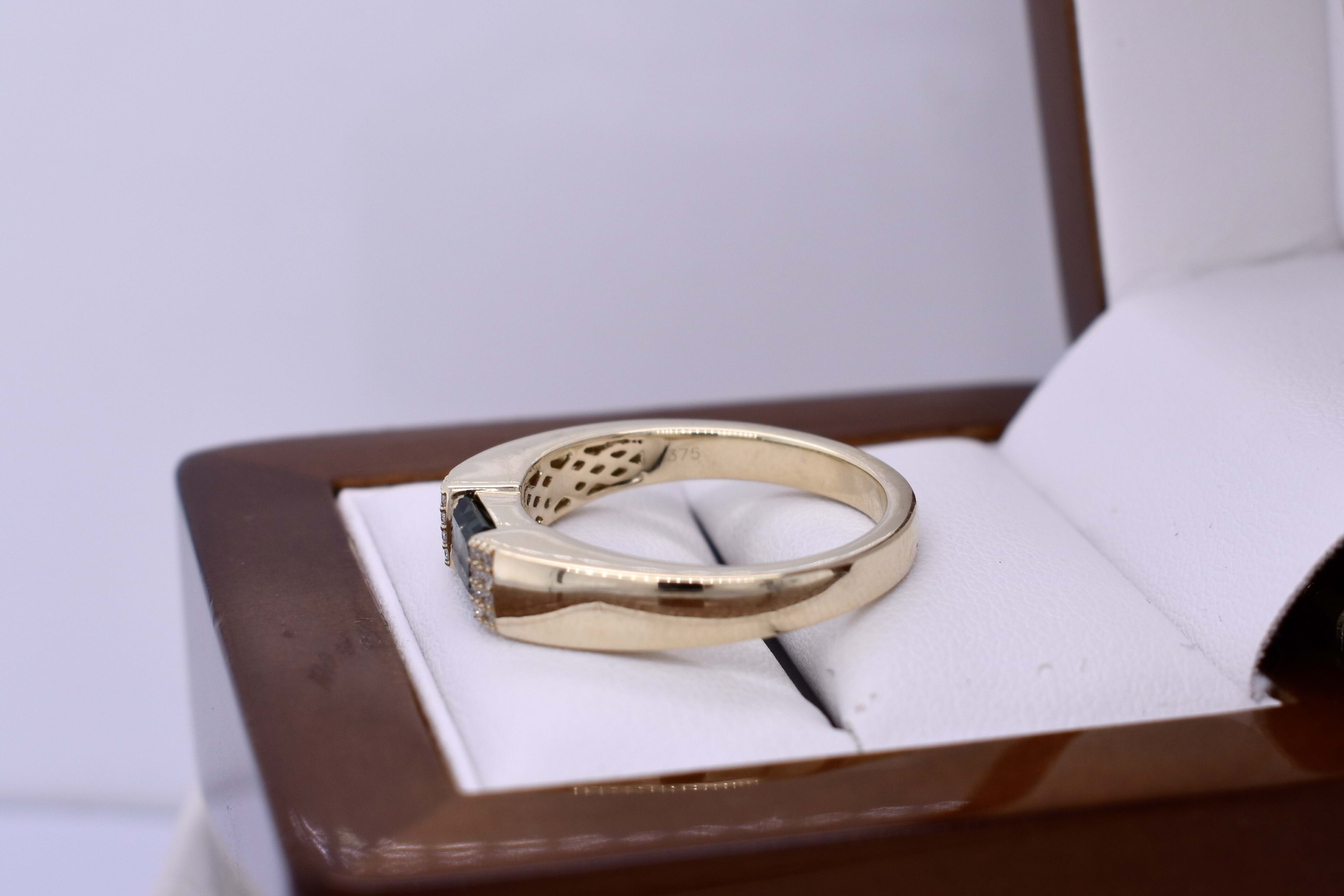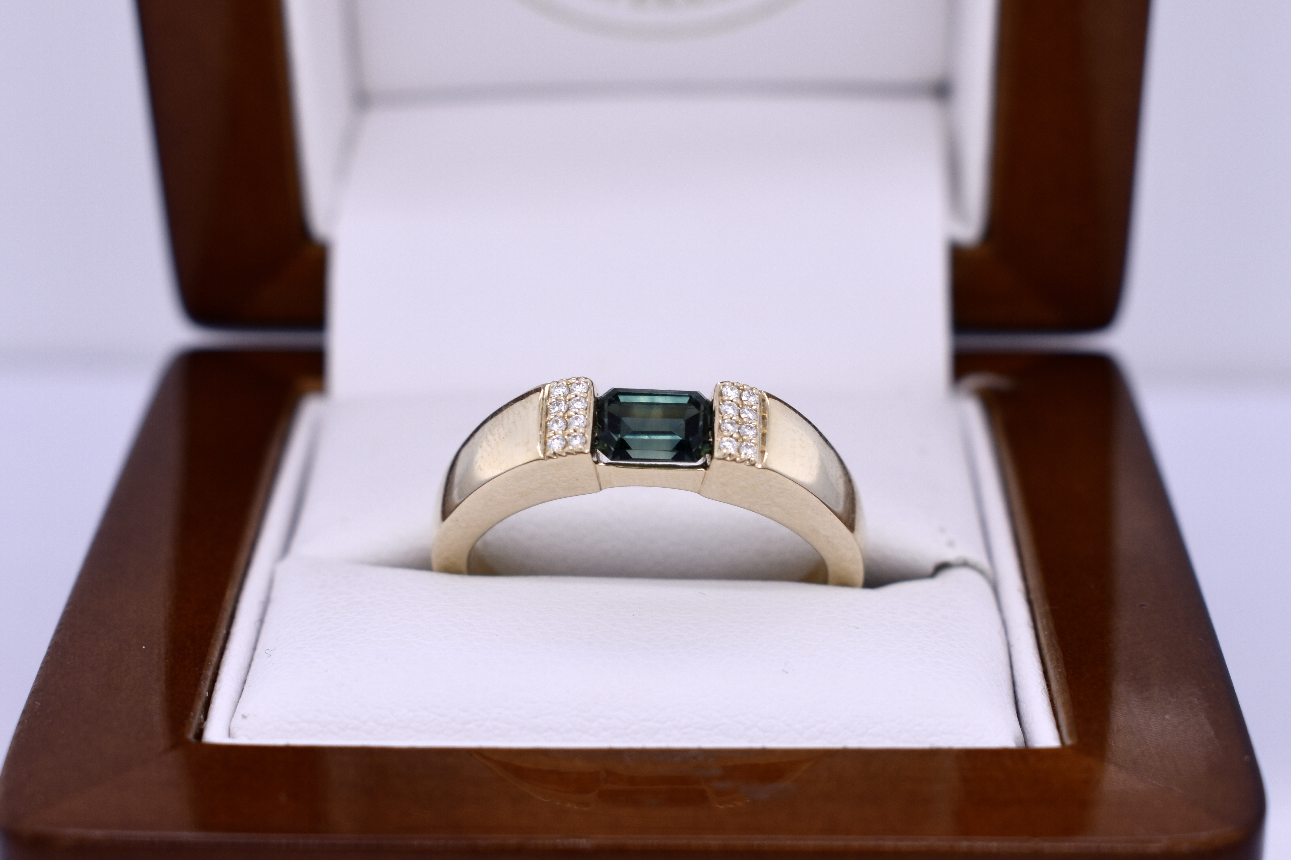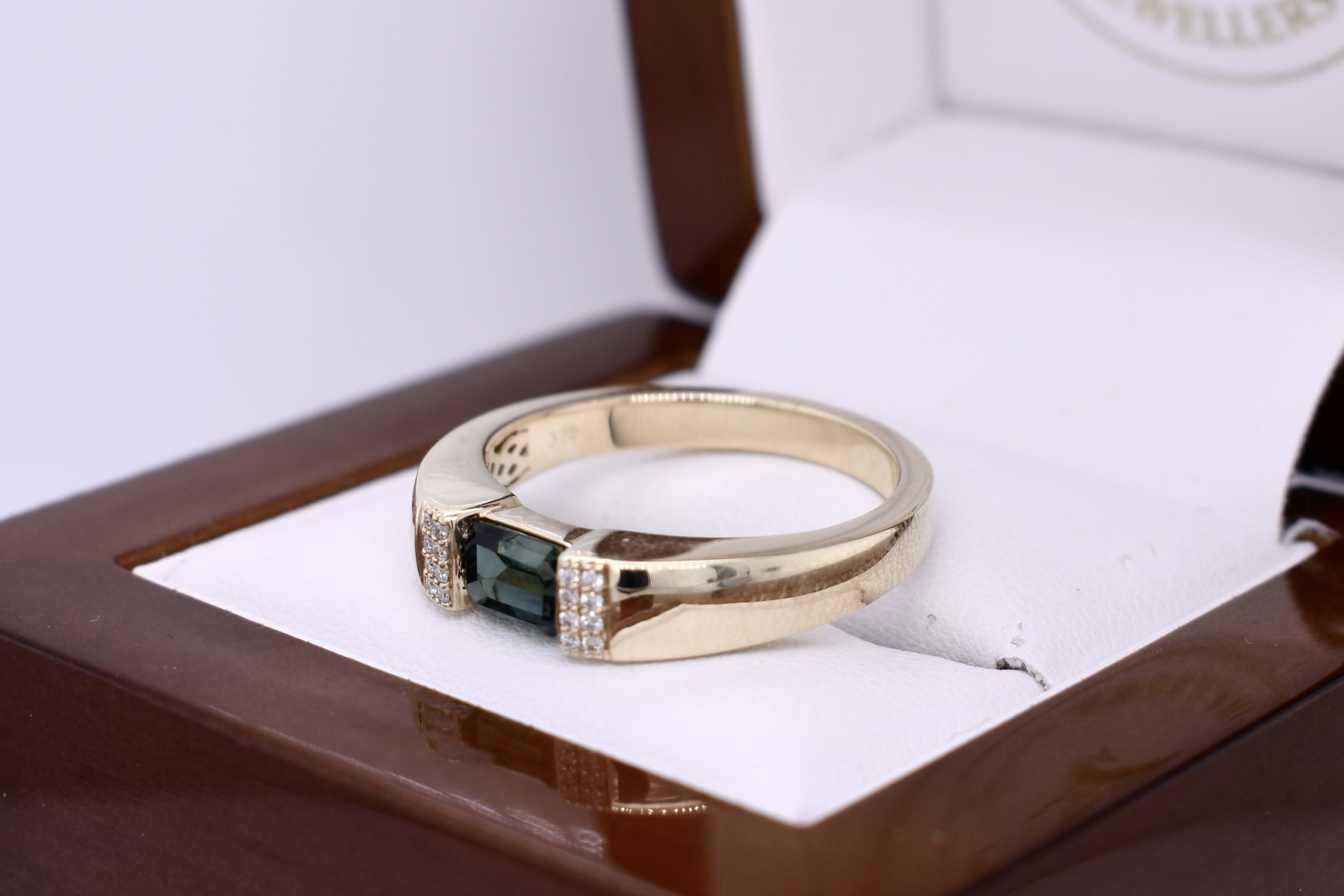 9ct Yellow Gold 1.01ct Australian Emerald Cut Sapphire & 0.06ct Diamond Ring (S+)