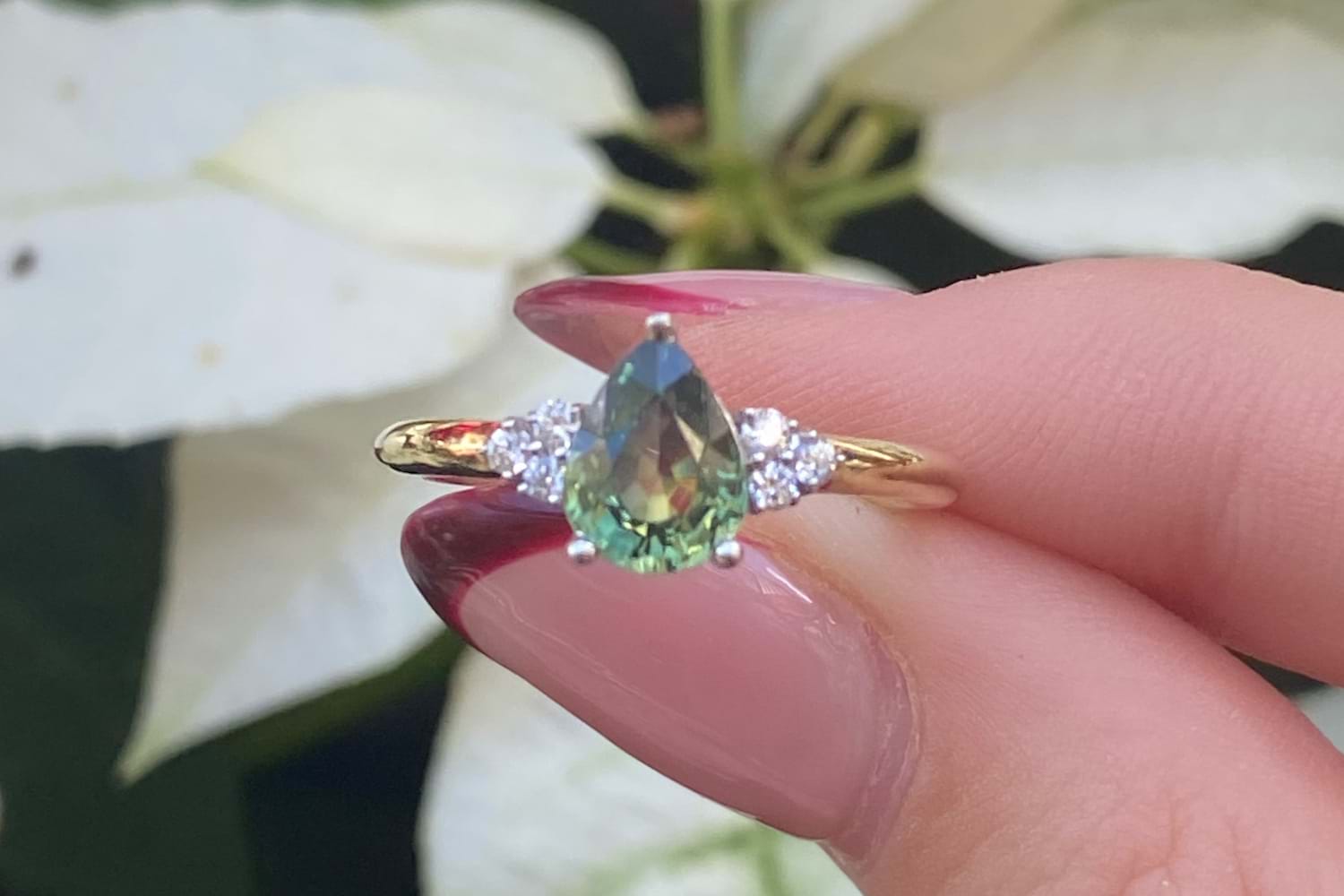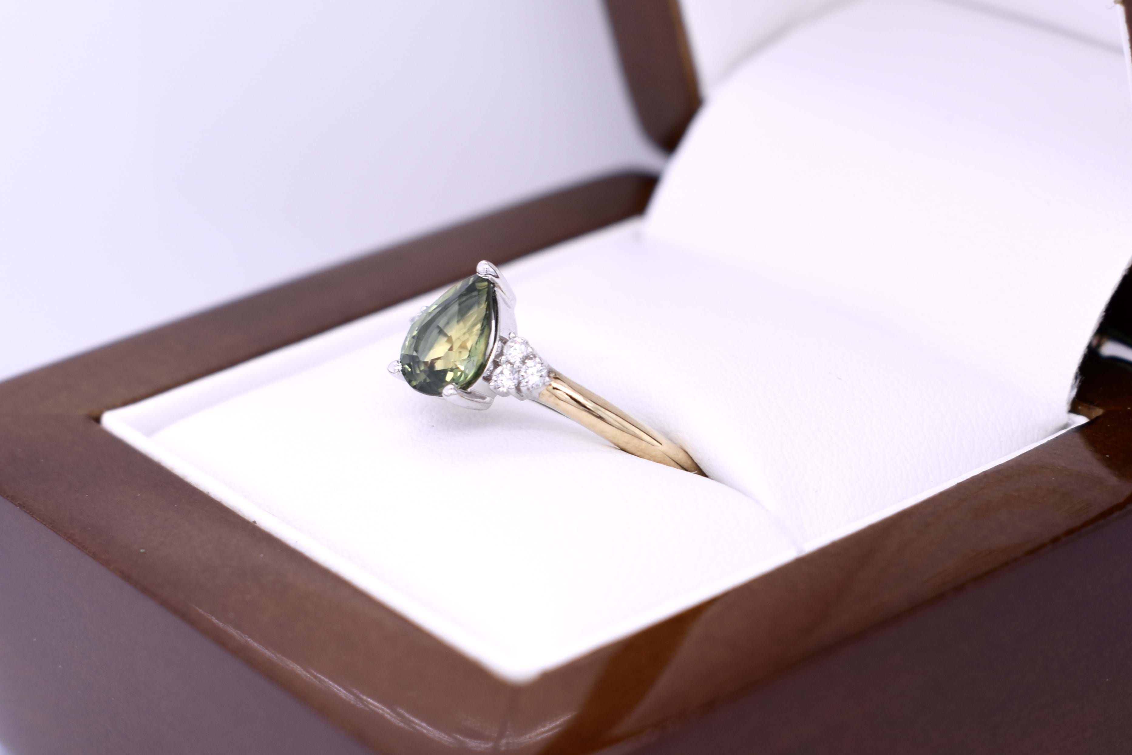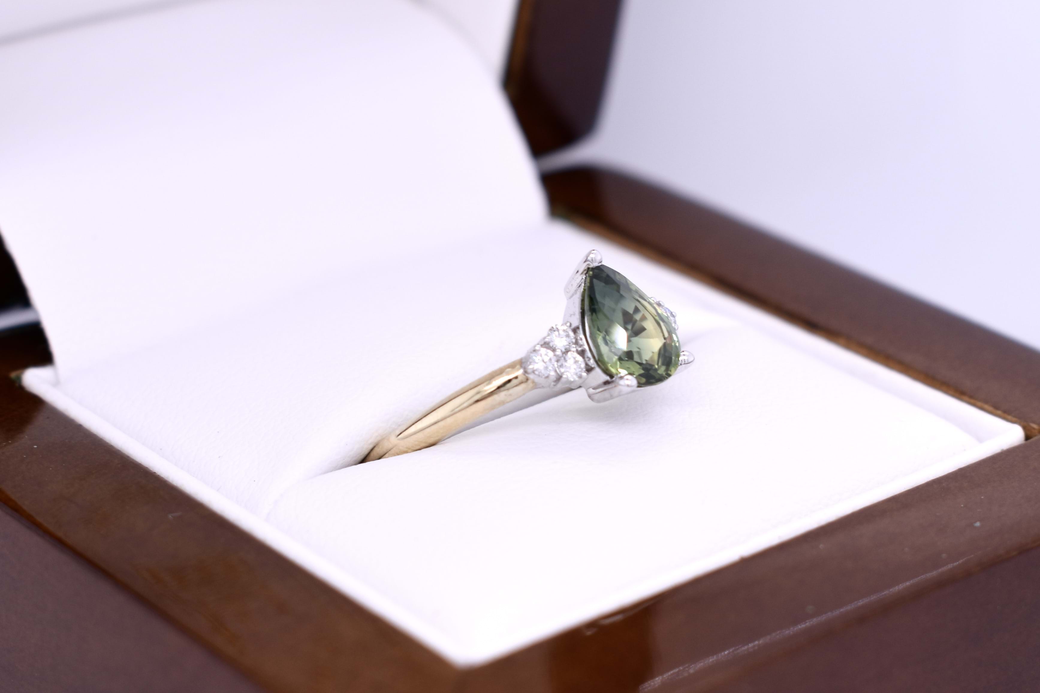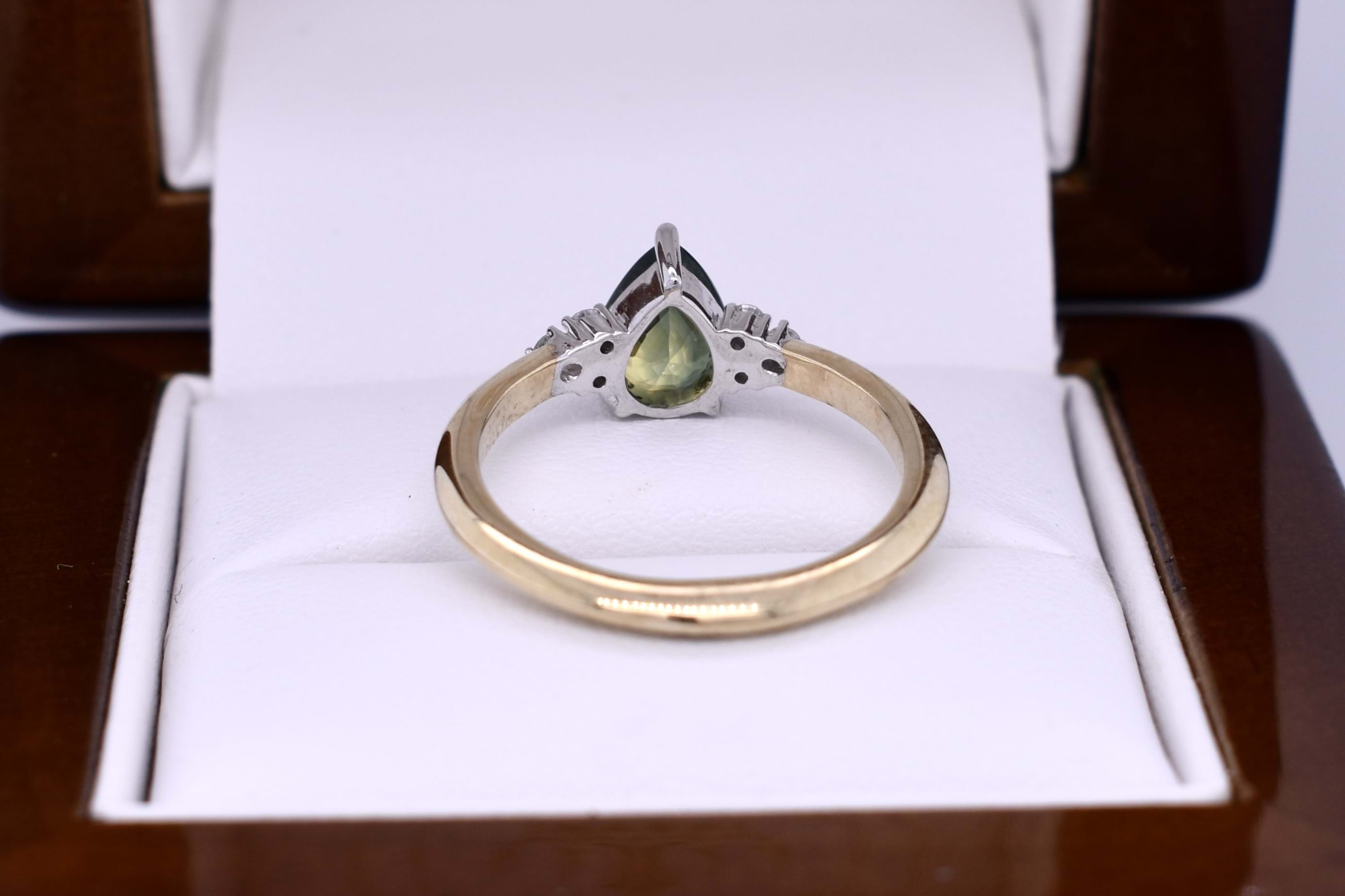 9ct Yellow Gold 1.32ct Pear Shaped Aus Green Parti Sapphire & 0.08ct Diamond Ring (M+)