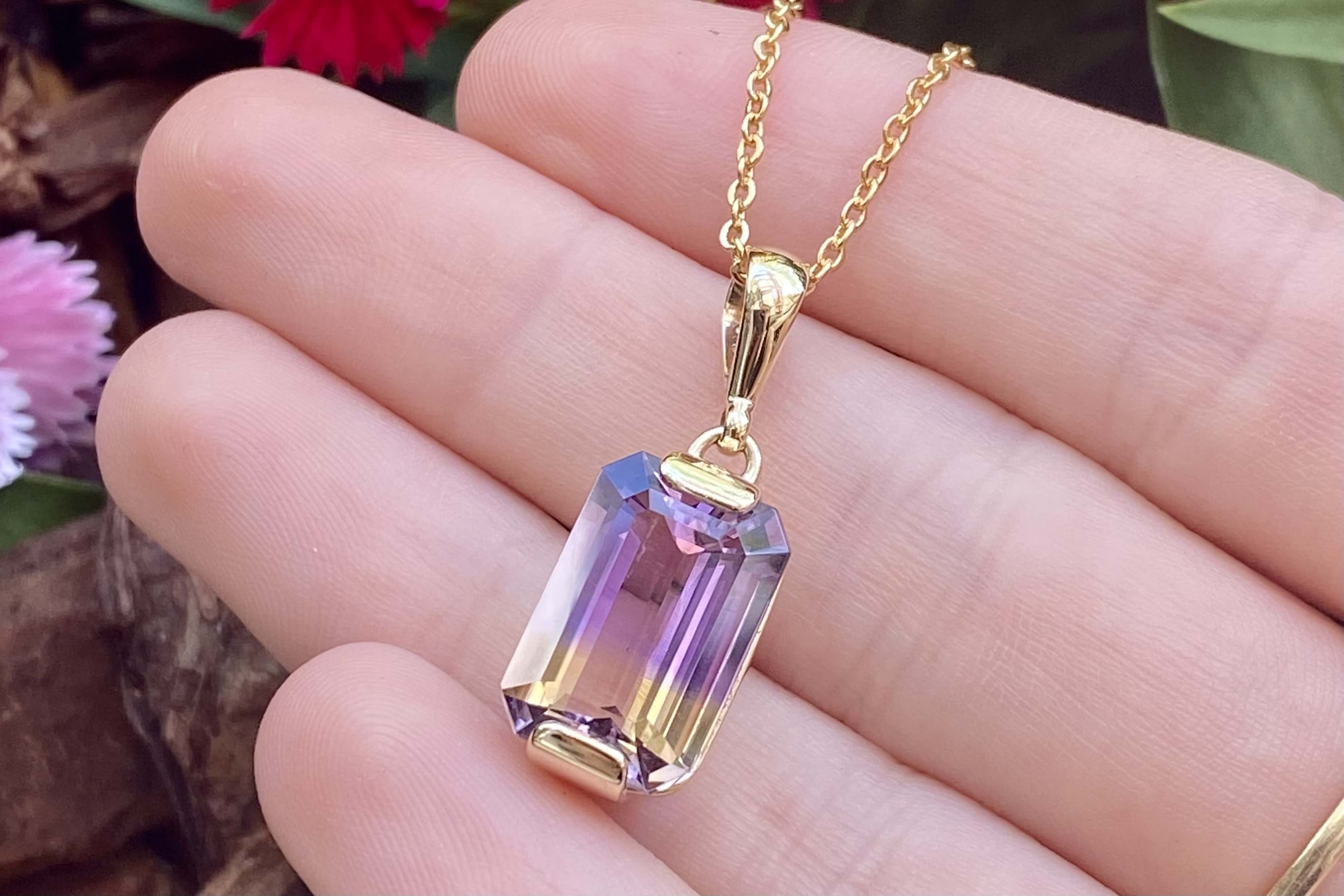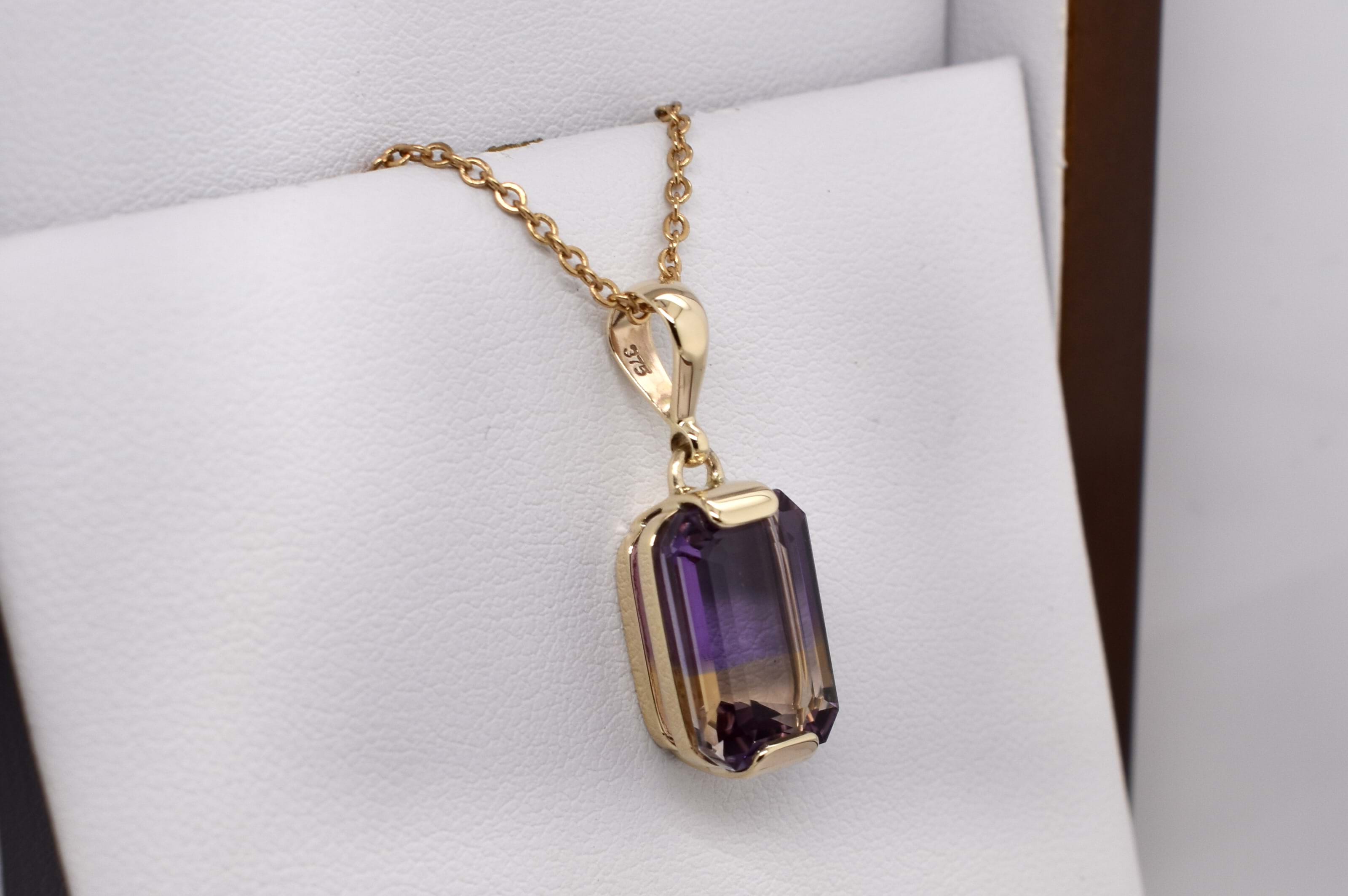 9ct Yellow Gold Ametrine Emerald Cut Semi Bezel Pendant