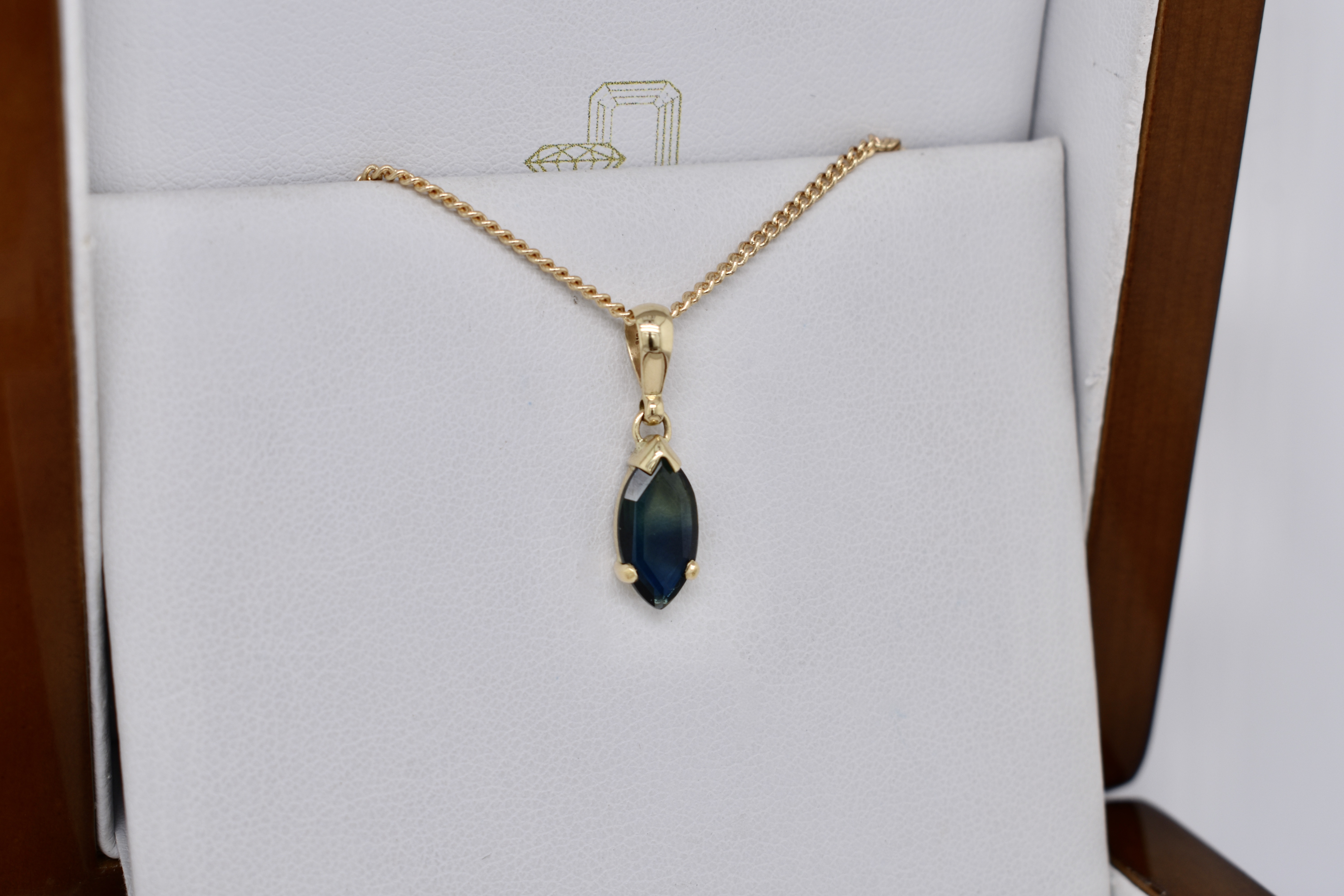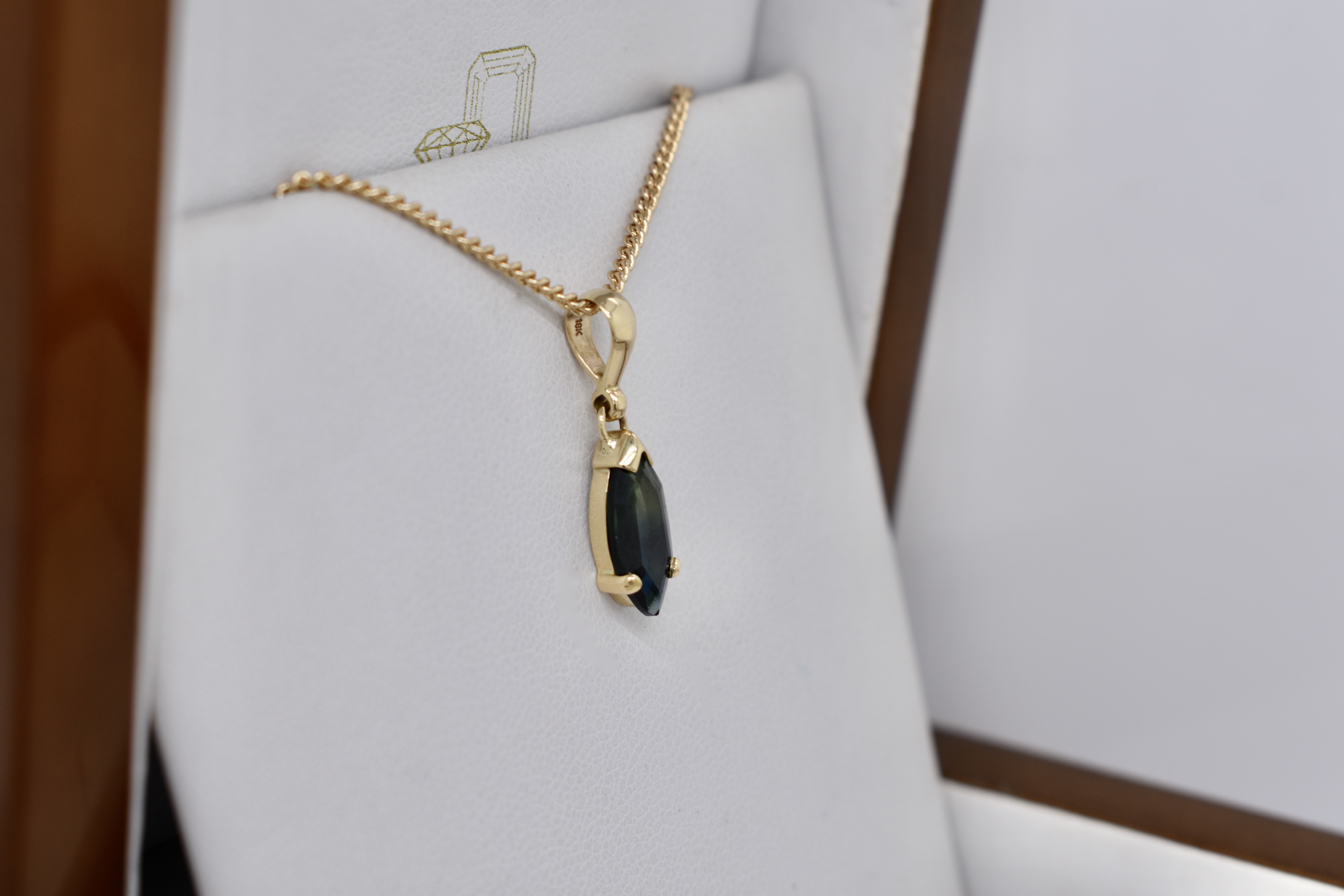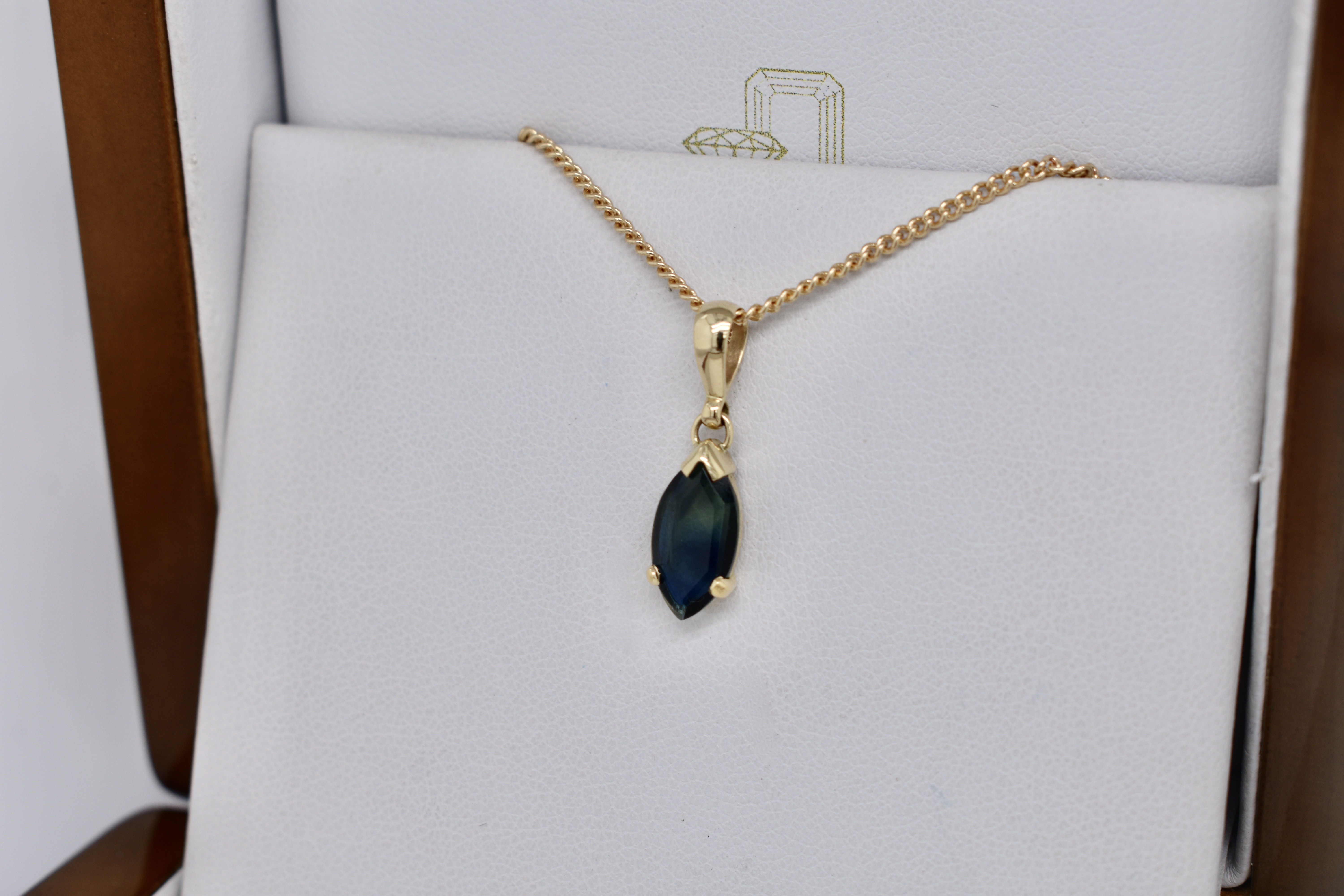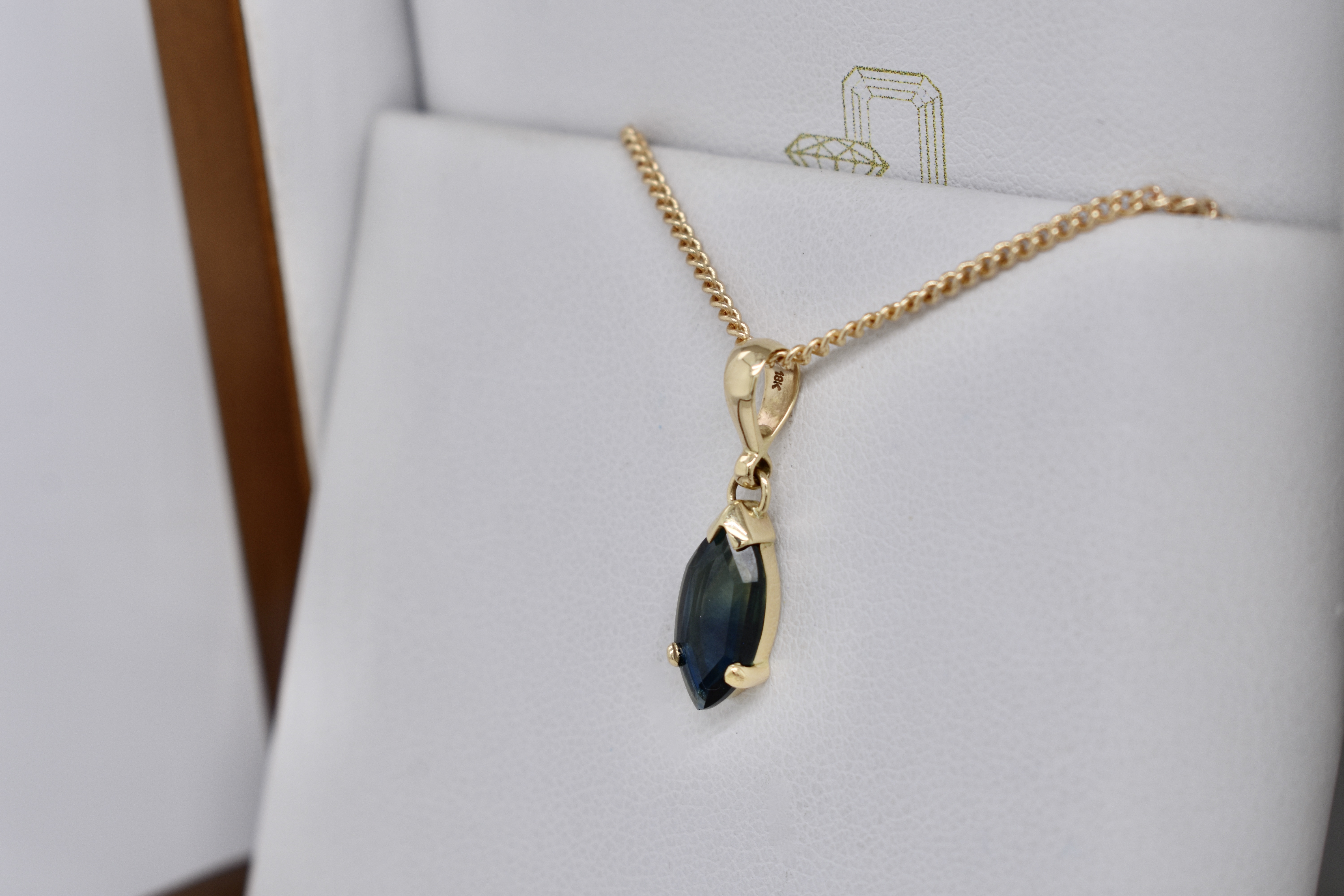 SOLD Handmade 18ct Yellow Gold Marquise Untreated Queensland Sapphire Pendant