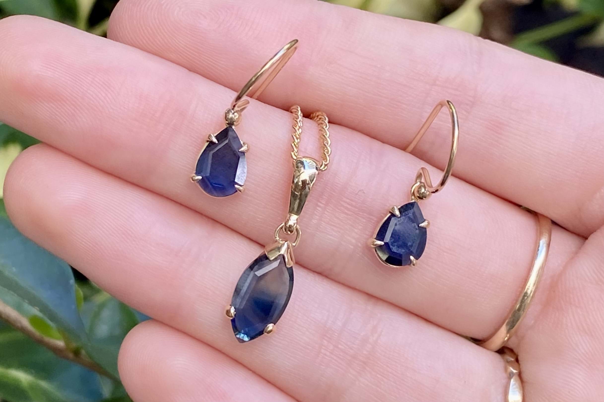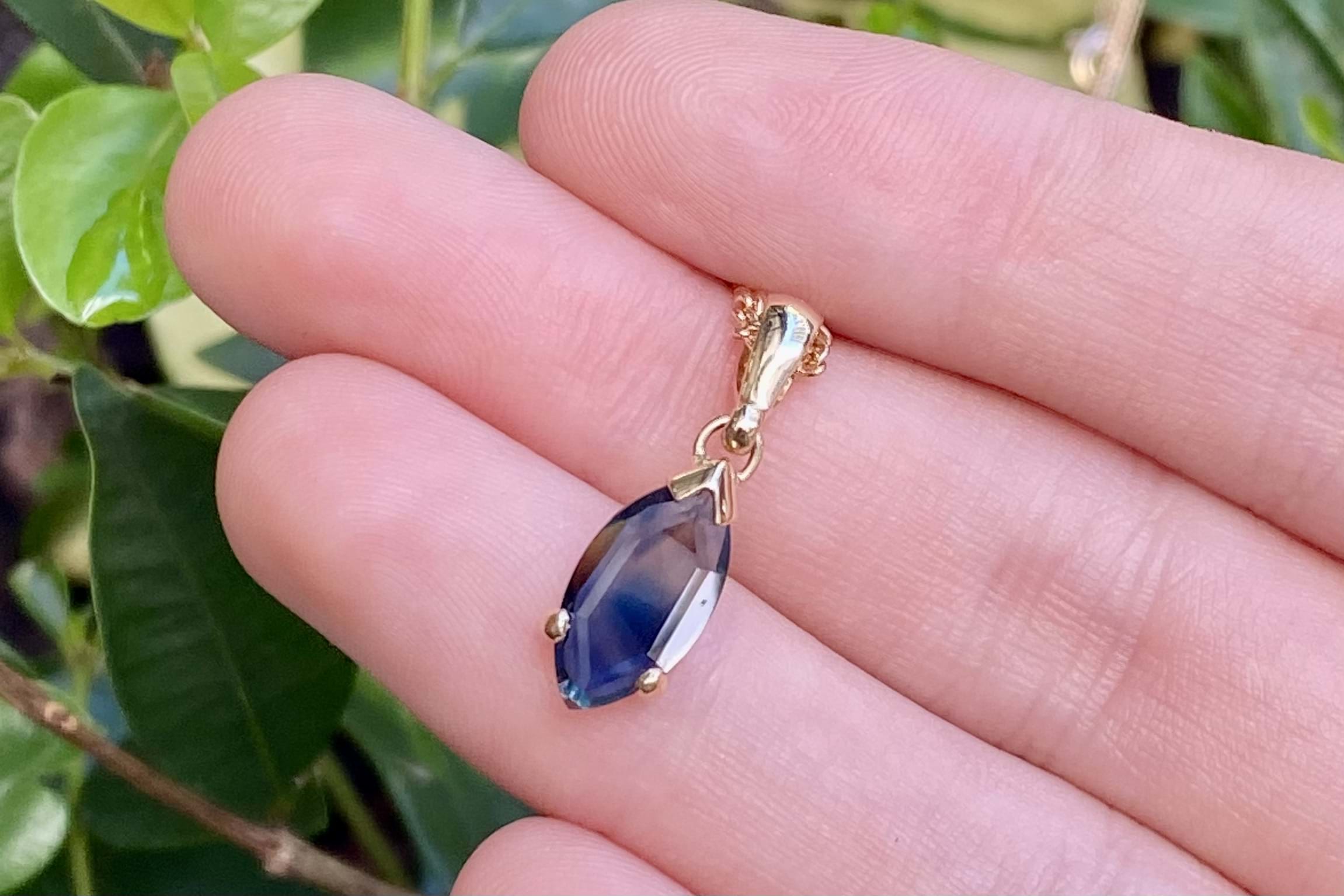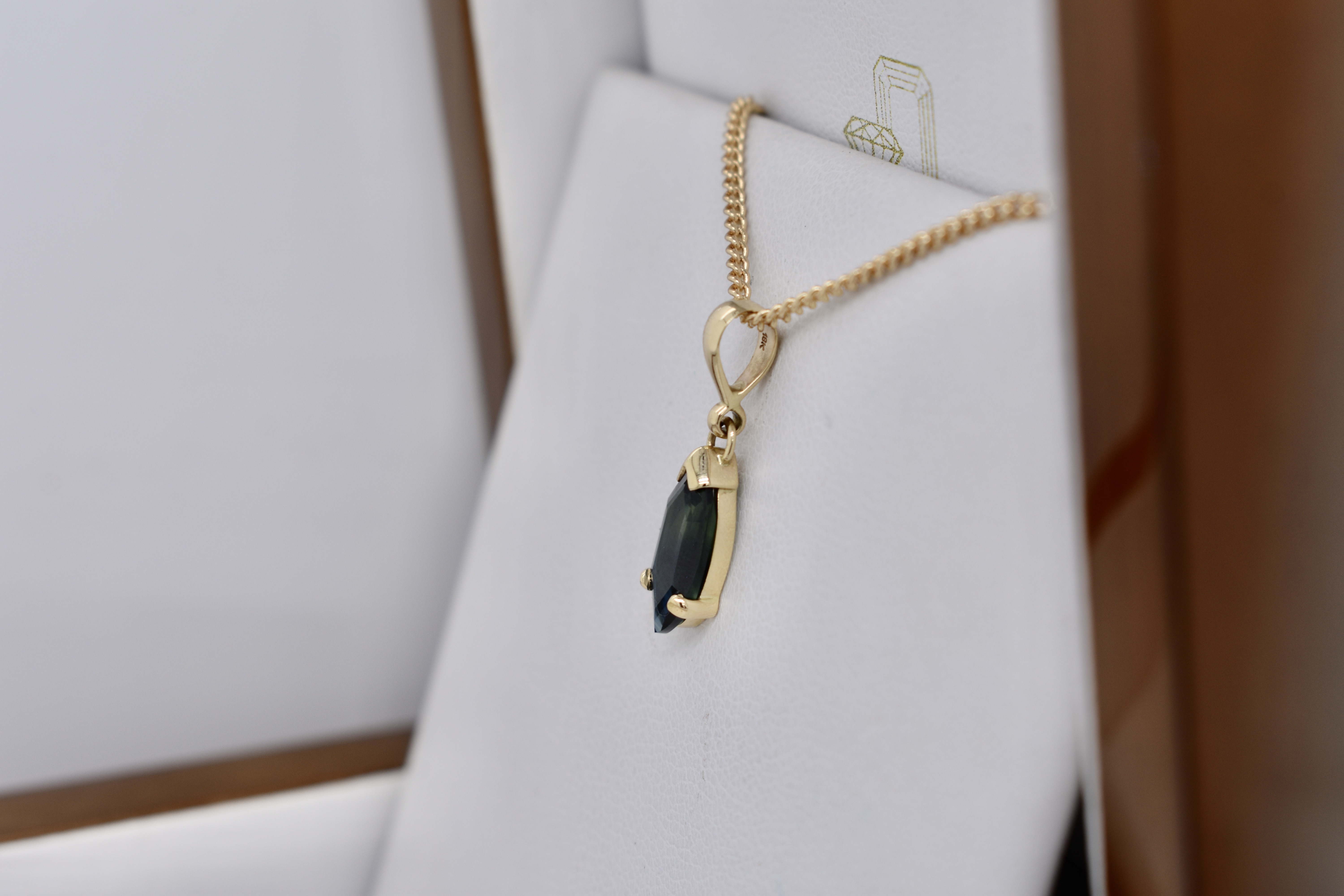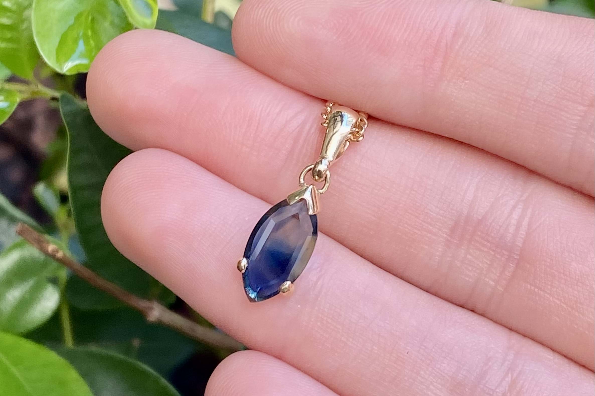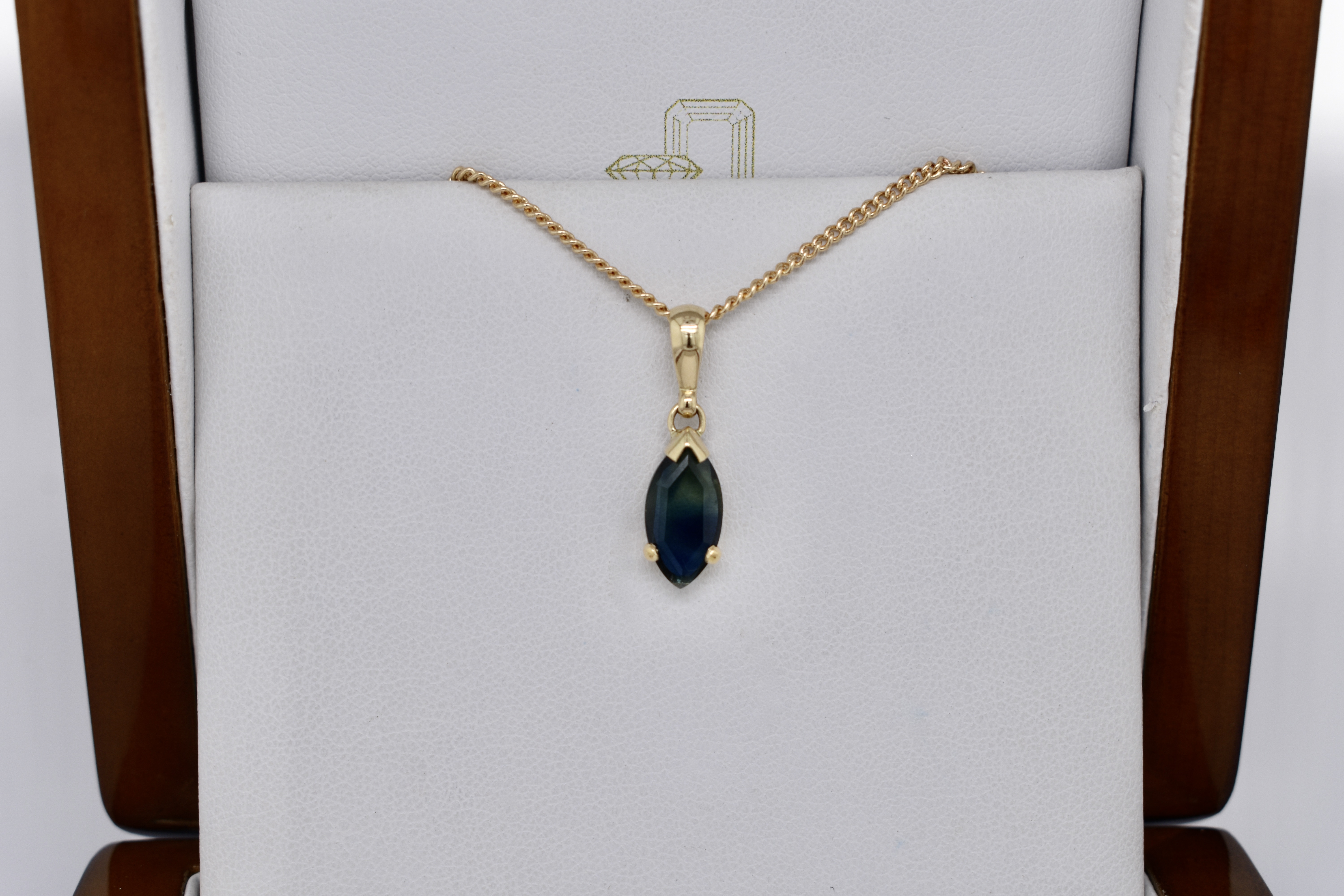 SOLD Handmade 18ct Yellow Gold Marquise Untreated Queensland Sapphire Pendant