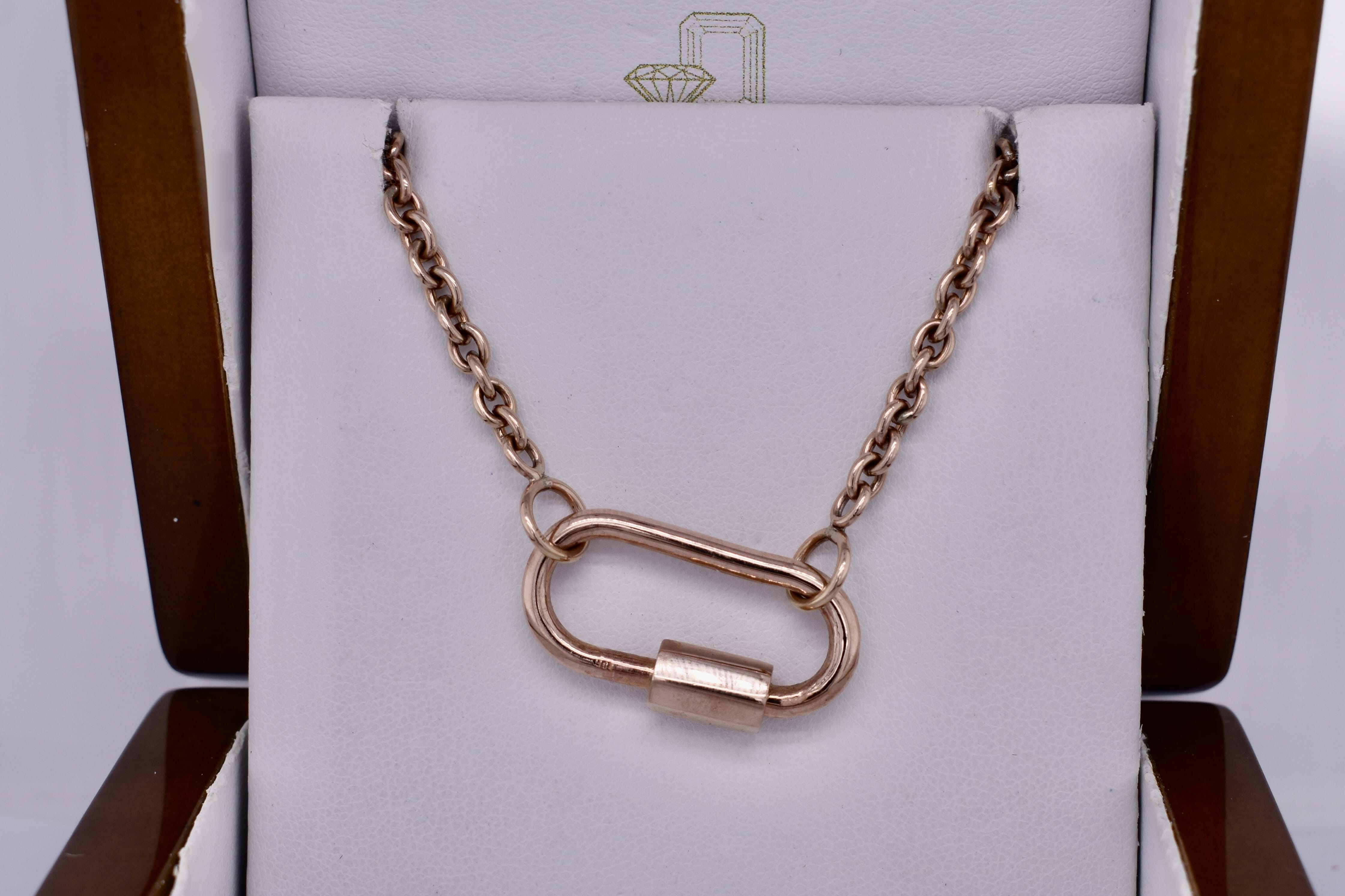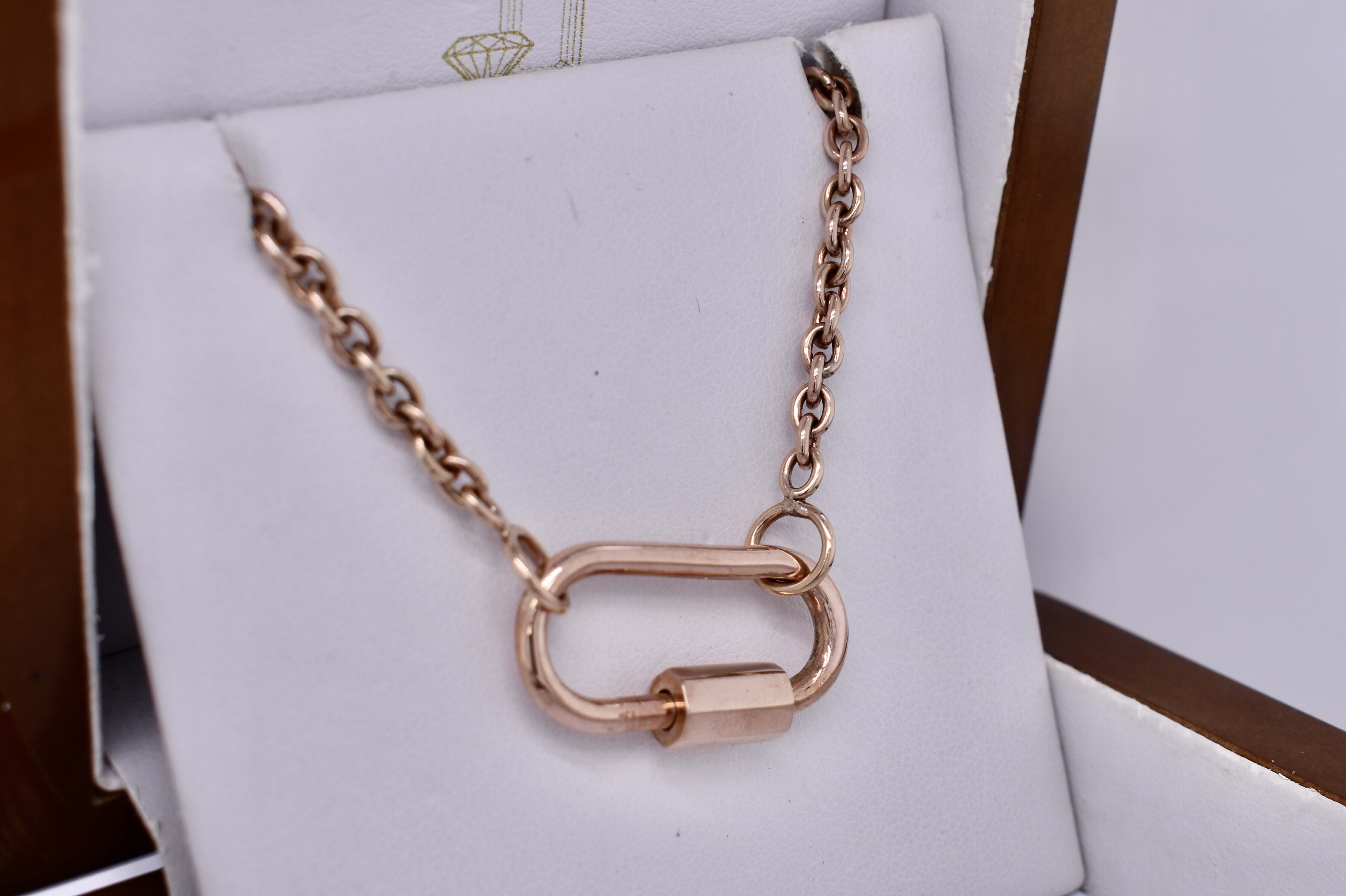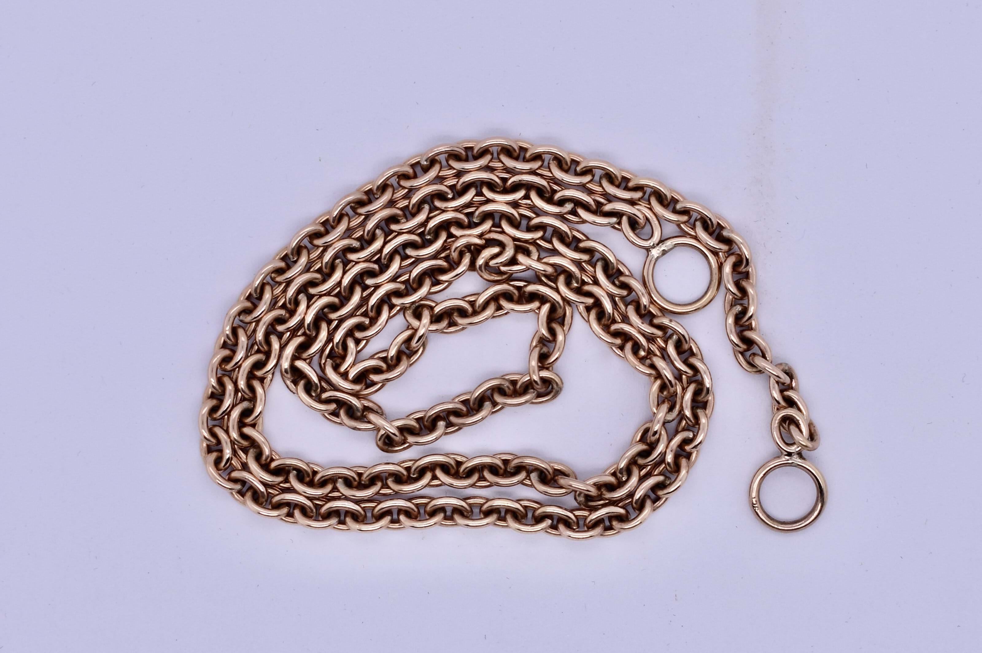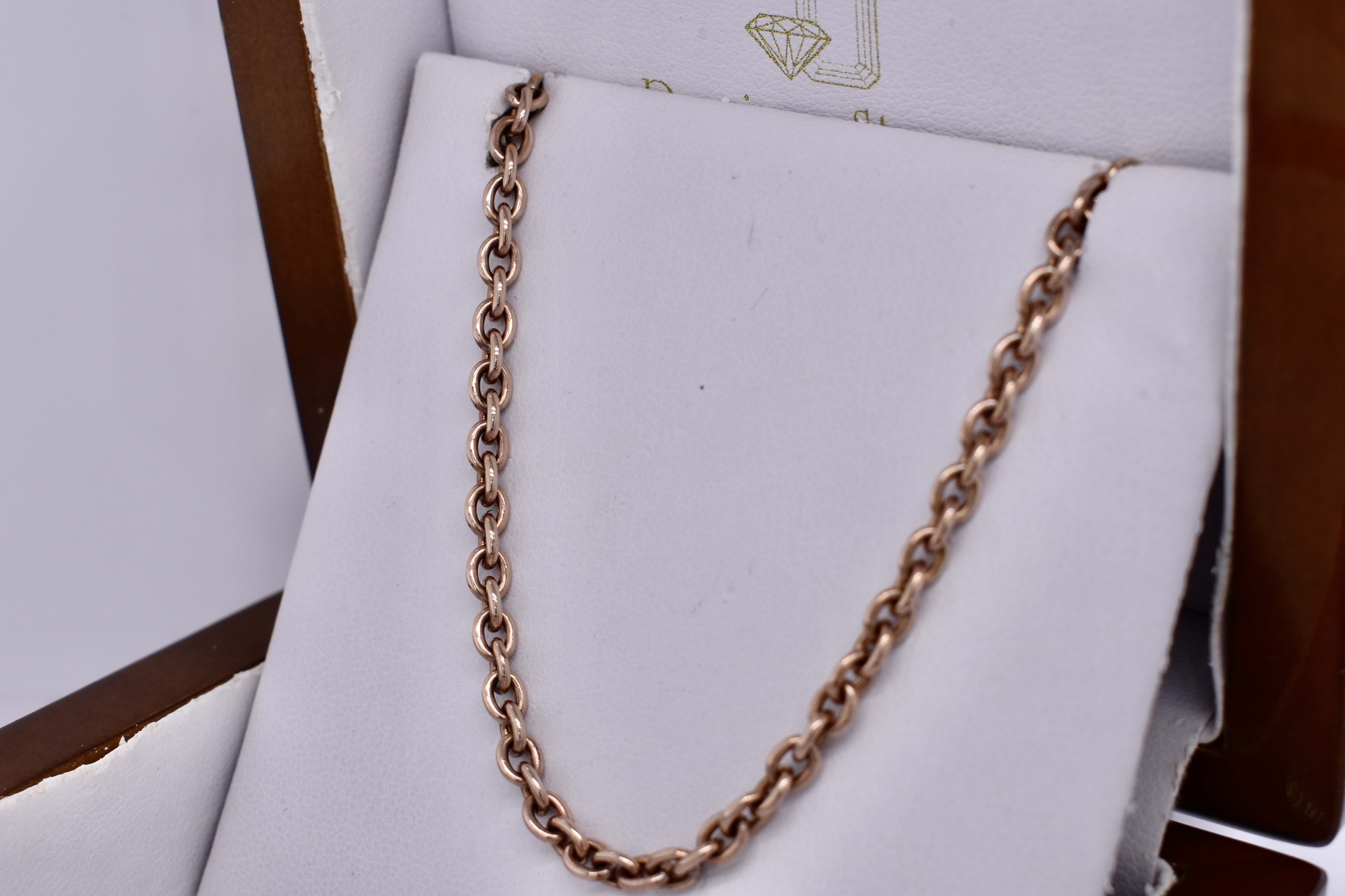 This stunning chain was handmade by our goldsmith in 9ct rose gold in this pretty square cable link. It has two jump rings on the ends, offering great versatility for different clasps, carabiners and brooches. Chain measures 45cm long and weighs 15.40grams.