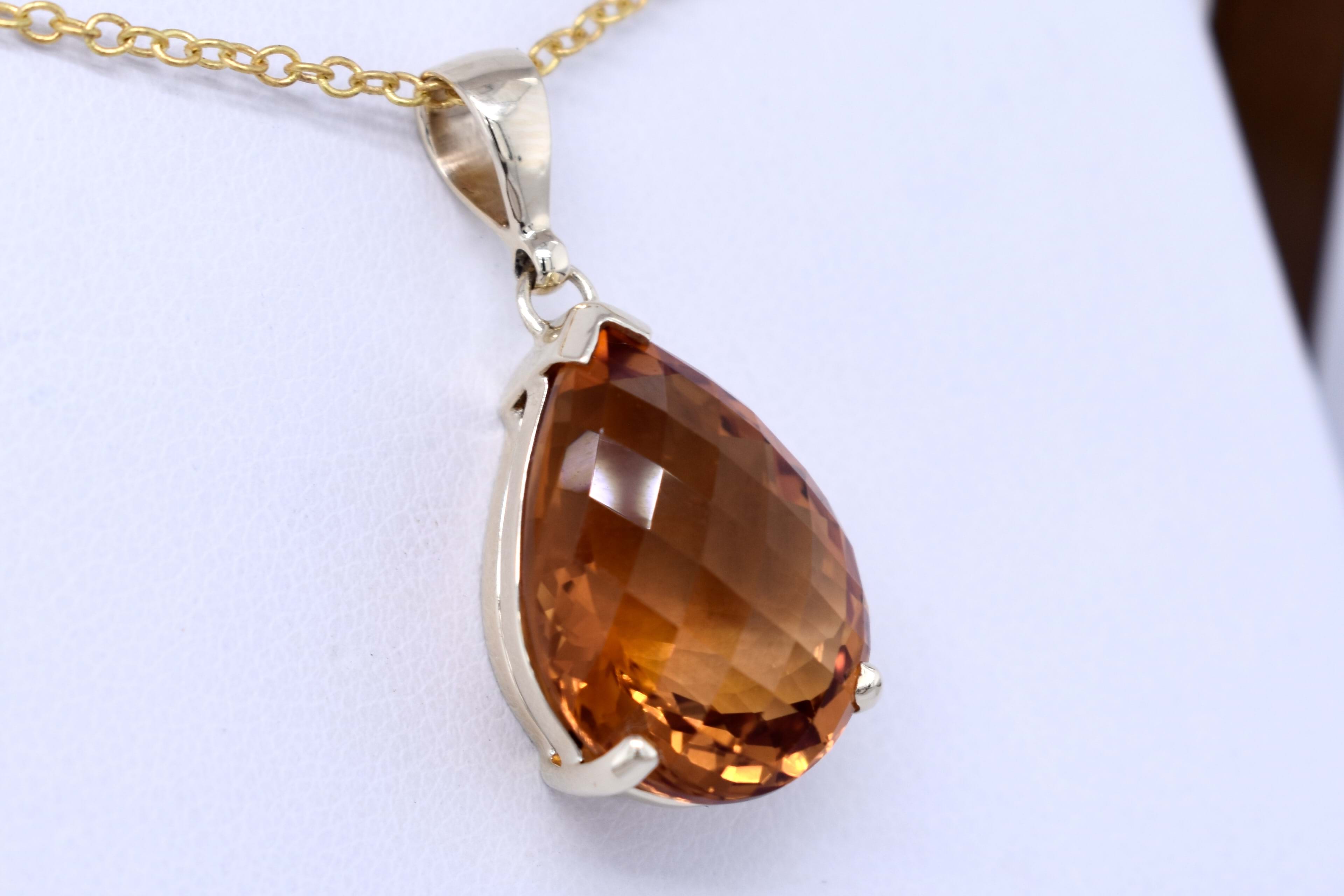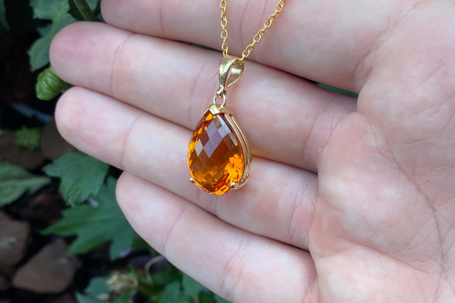 Handmade 9ct Yellow Gold 15.50ct Citrine Pear Pendant