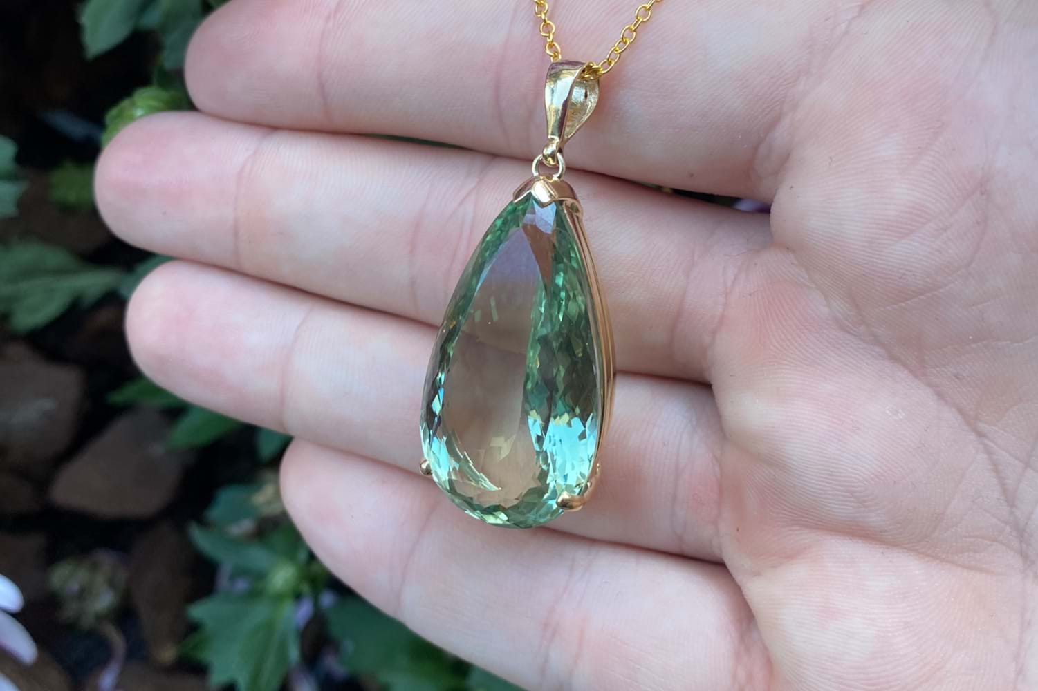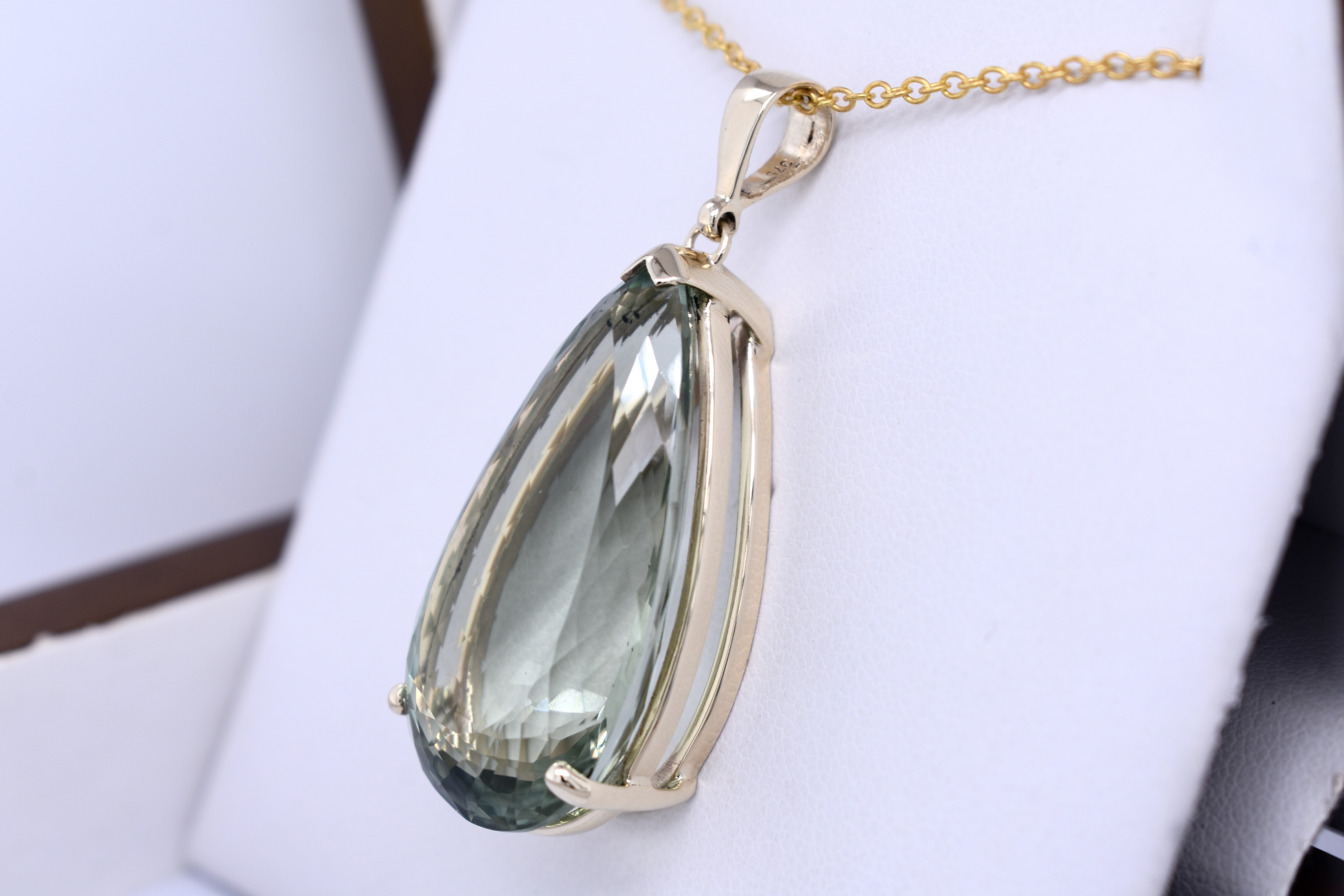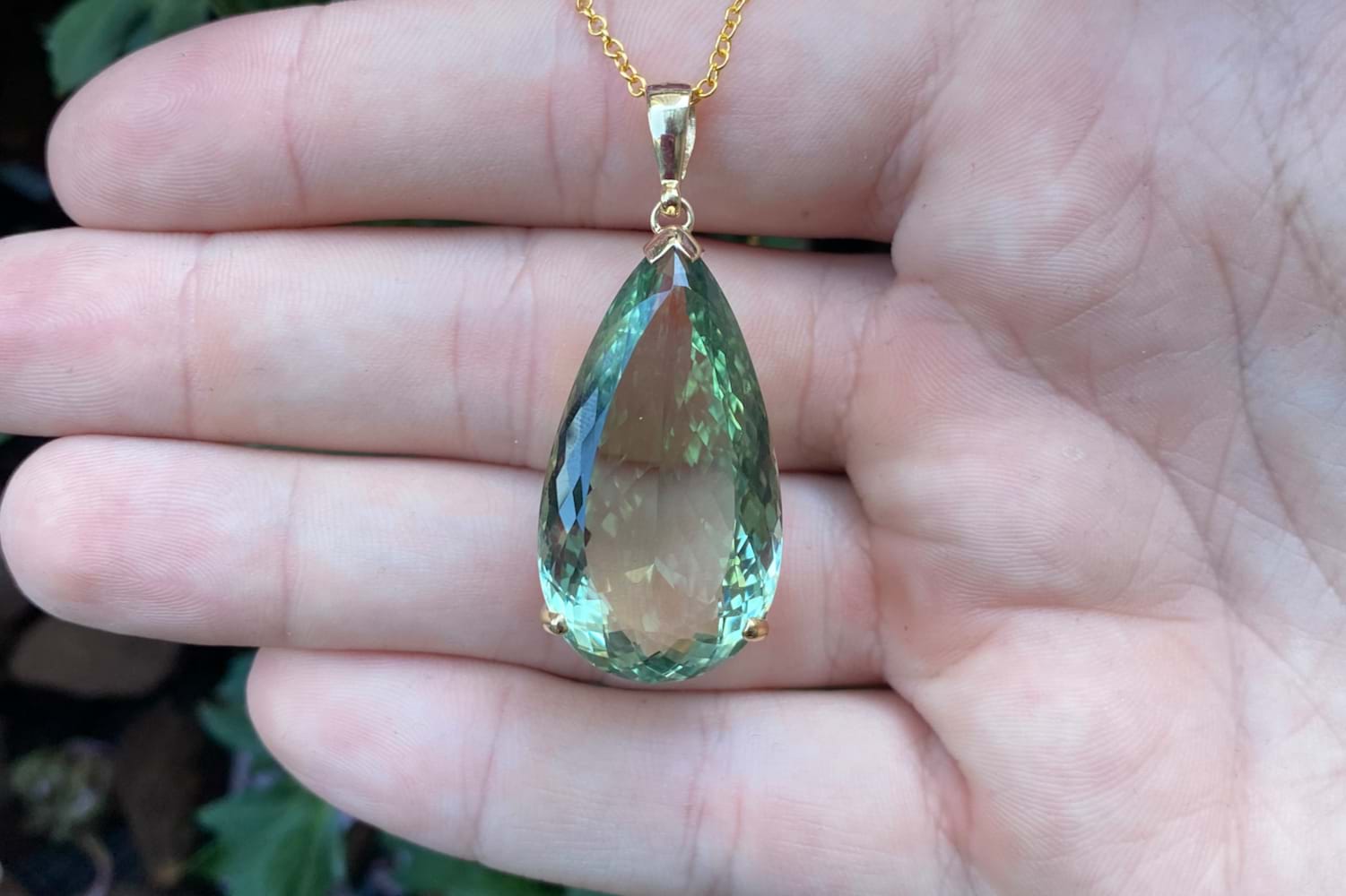 Handmade 9ct Yellow Gold 36.00ct Pear Shaped Prasiolite Pendant