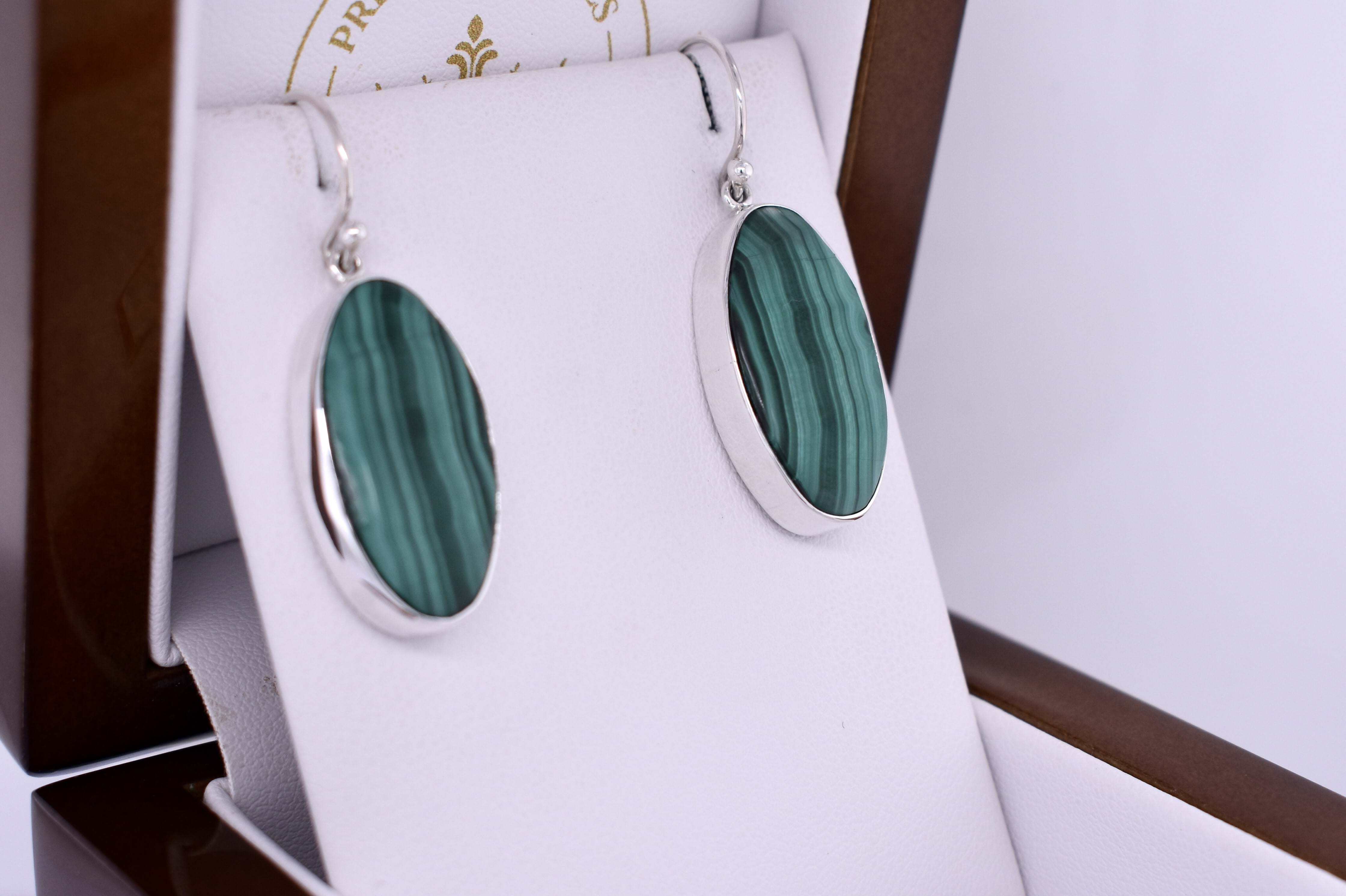 Handmade Sterling Silver 23.4x12.64mm Oval Malachite Drops