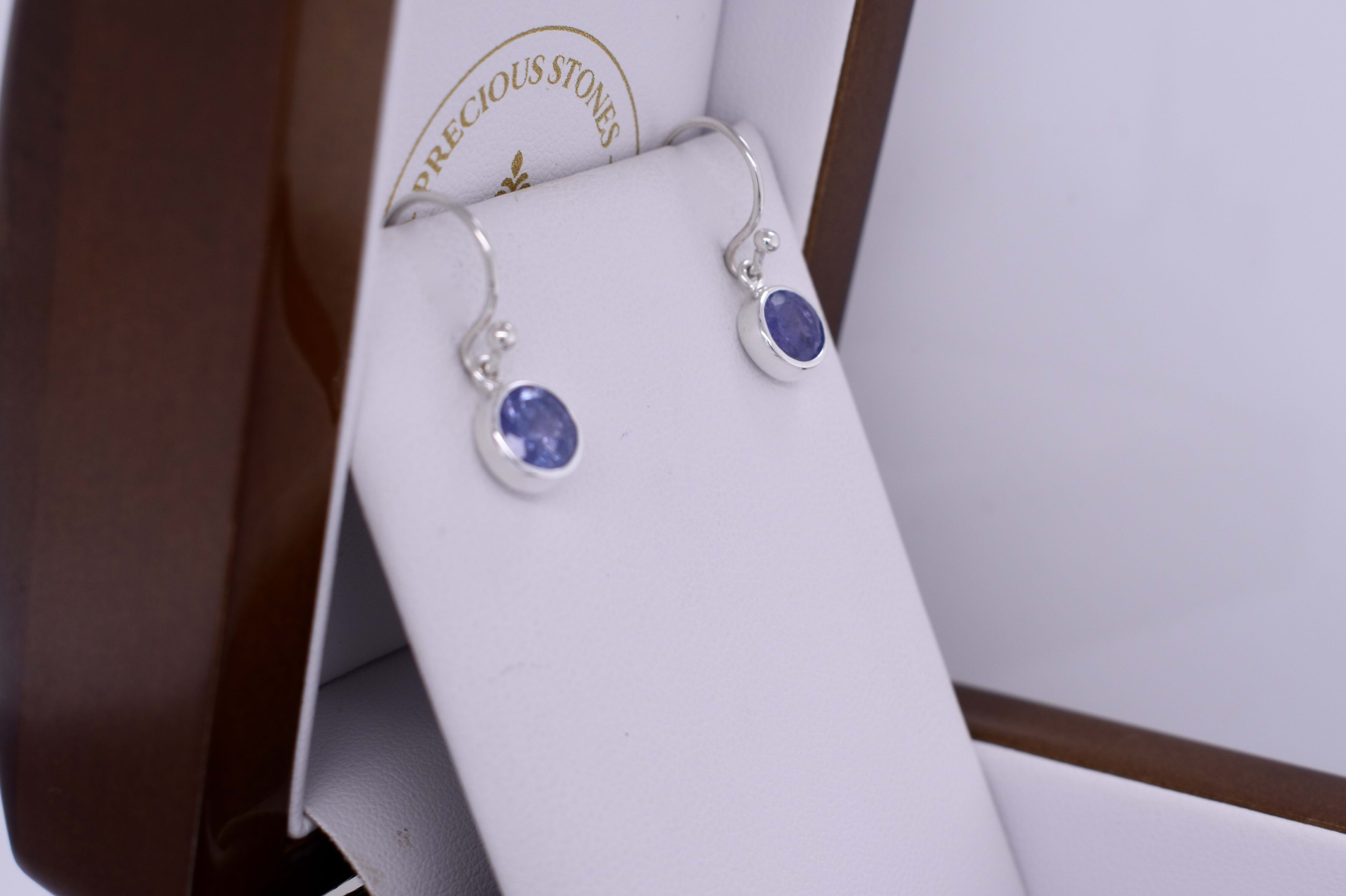 Handmade Sterling Silver 7.3mm Round Tanzanite Drops