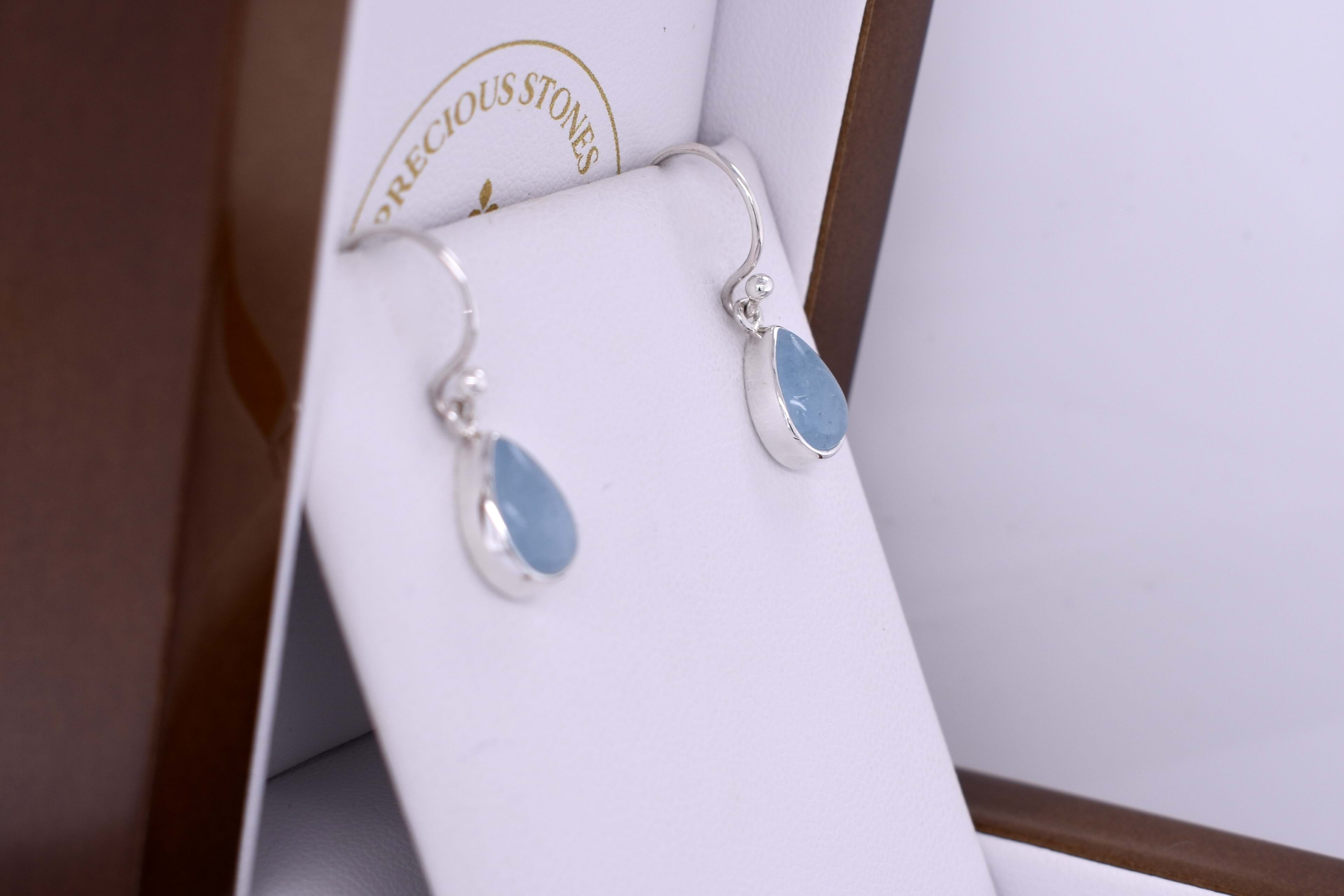 Handmade Sterling Silver 9.3x6.9mm Pearshape Cabochon Aquamarine Drops