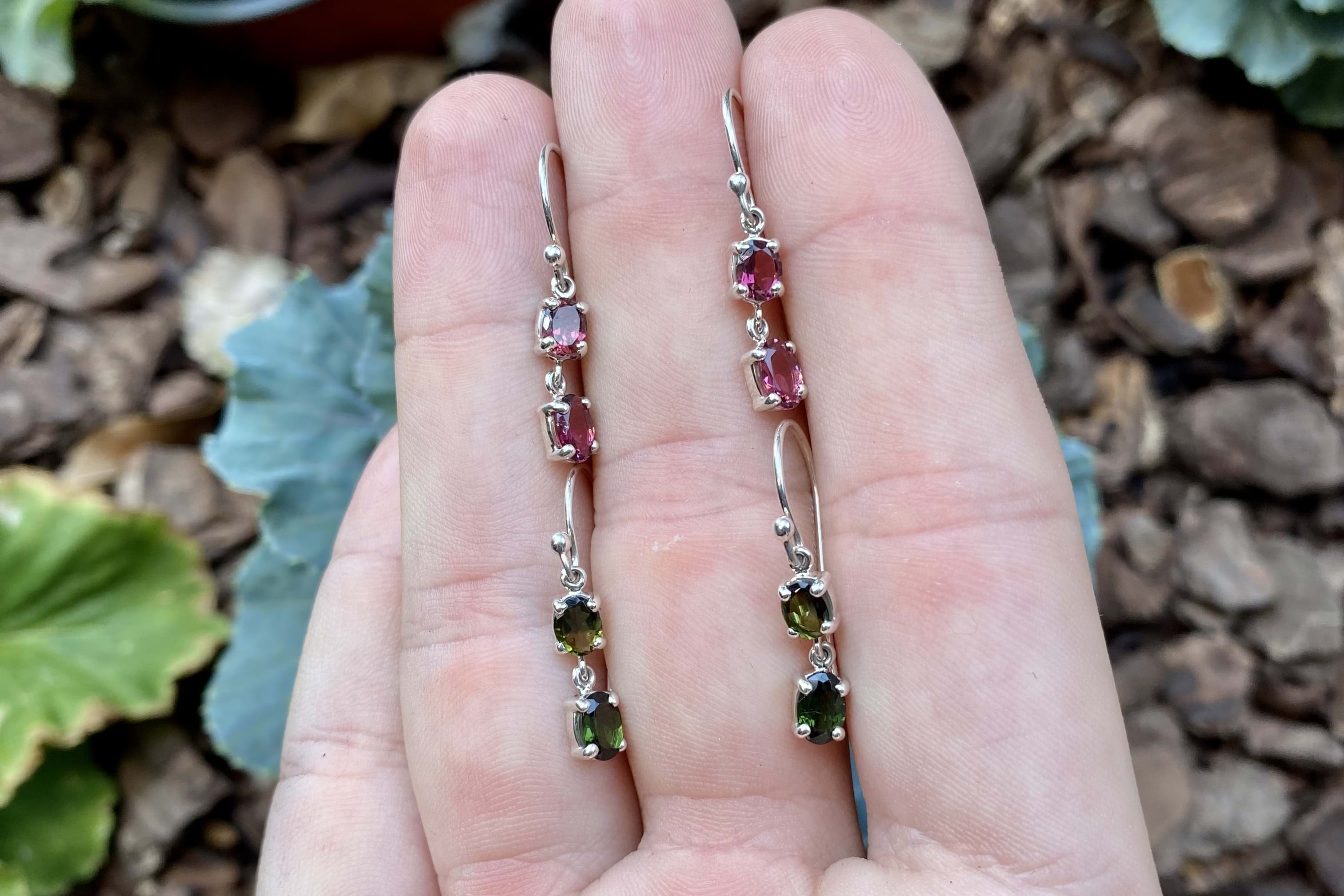 Handmade Sterling Silver Green Tourmaline Oval Double Drops