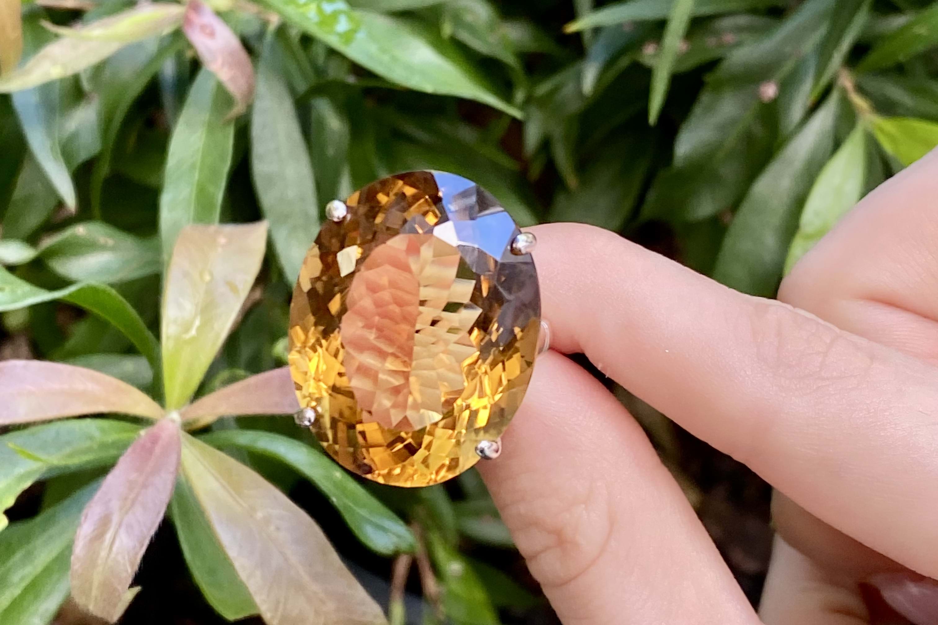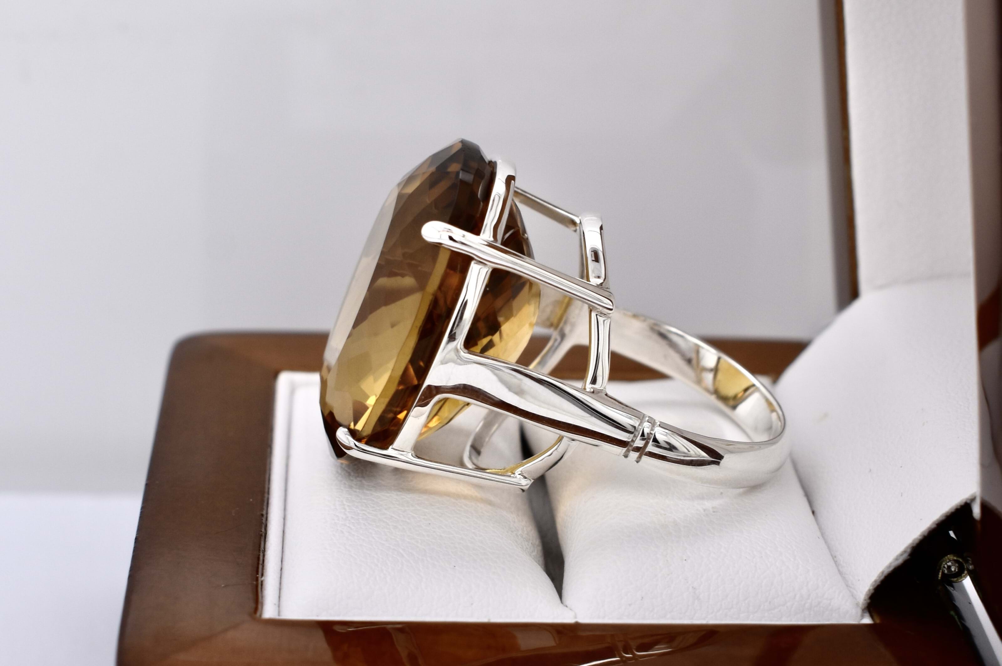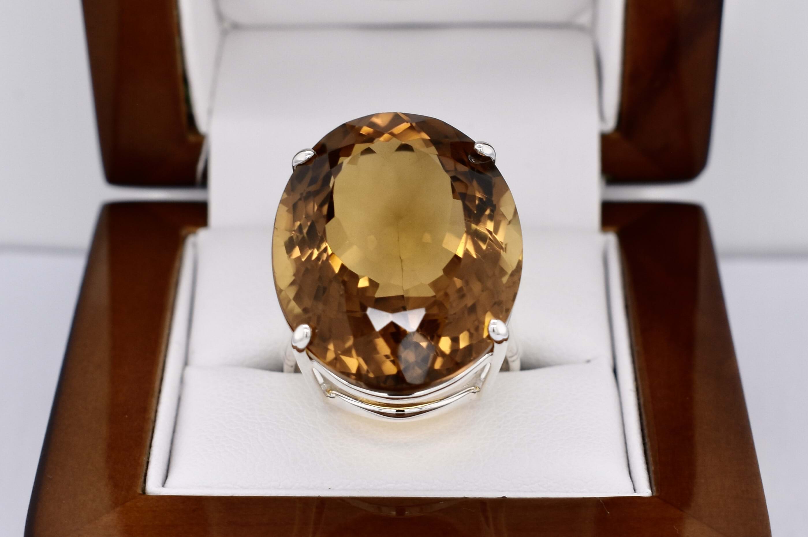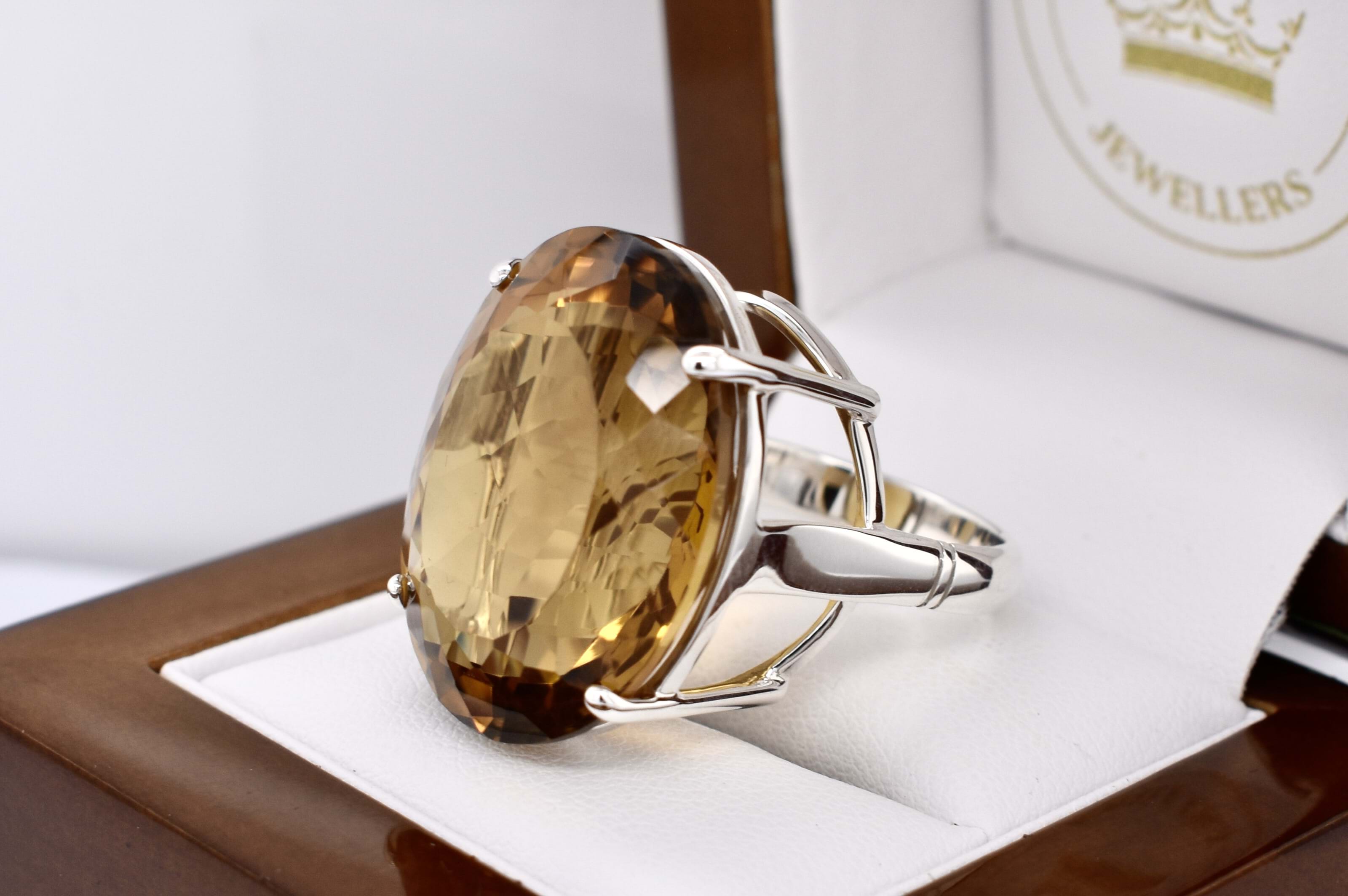 Fabulous large oval ring, featuring a 26.0x20.8mm smokey quartz, four claw set in sterling silver with a grooved plain band. Finger size S.
