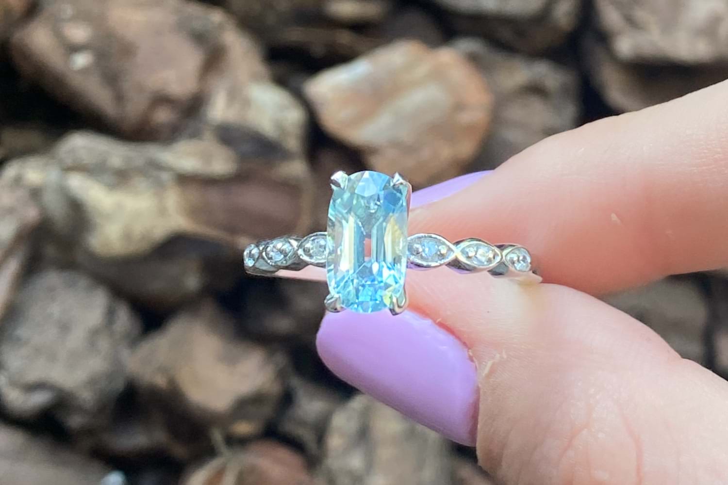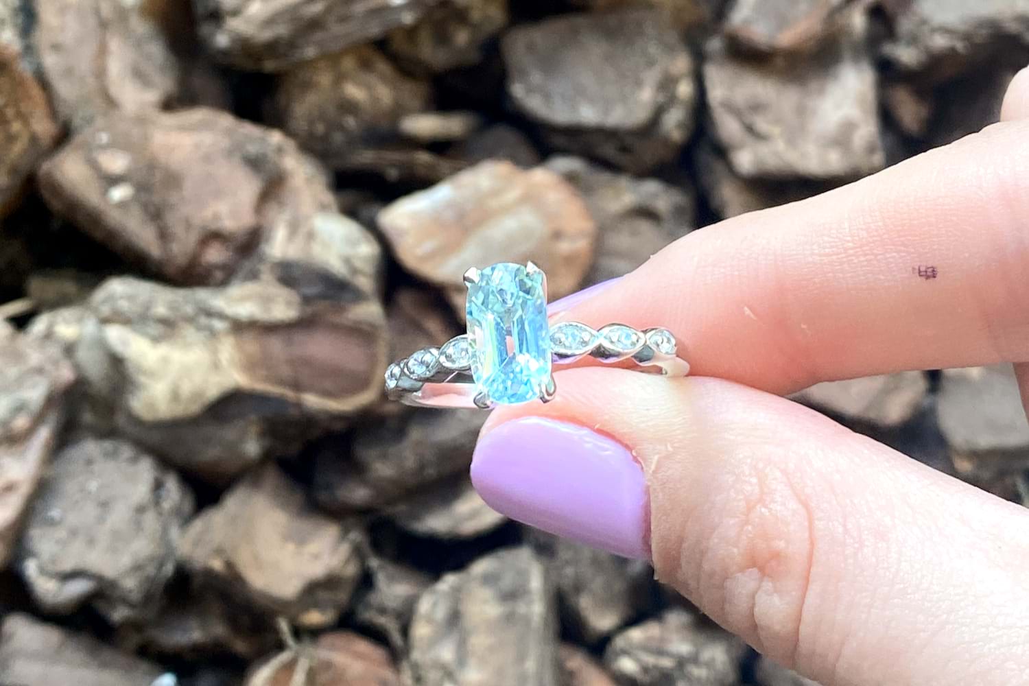 Sterling Silver Oval Aquamarine & CZ Ring (S)