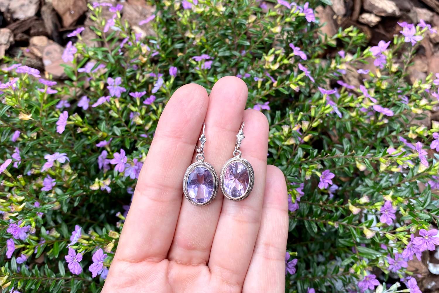 Sterling Silver Vintage Oval Amethyst Drops
