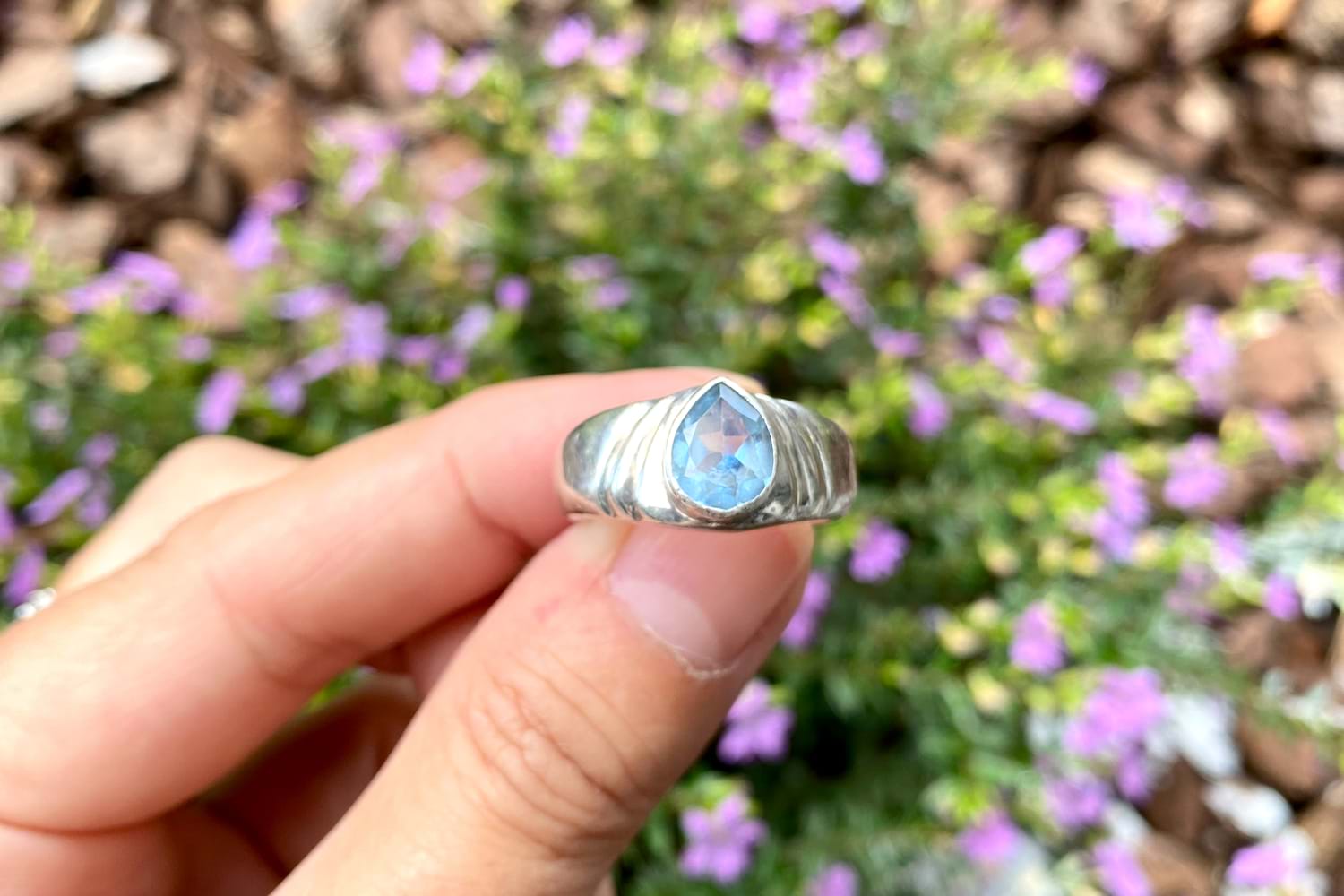 Sterling Silver Vintage Pear Shape Sky Blue Topaz Ring (R)