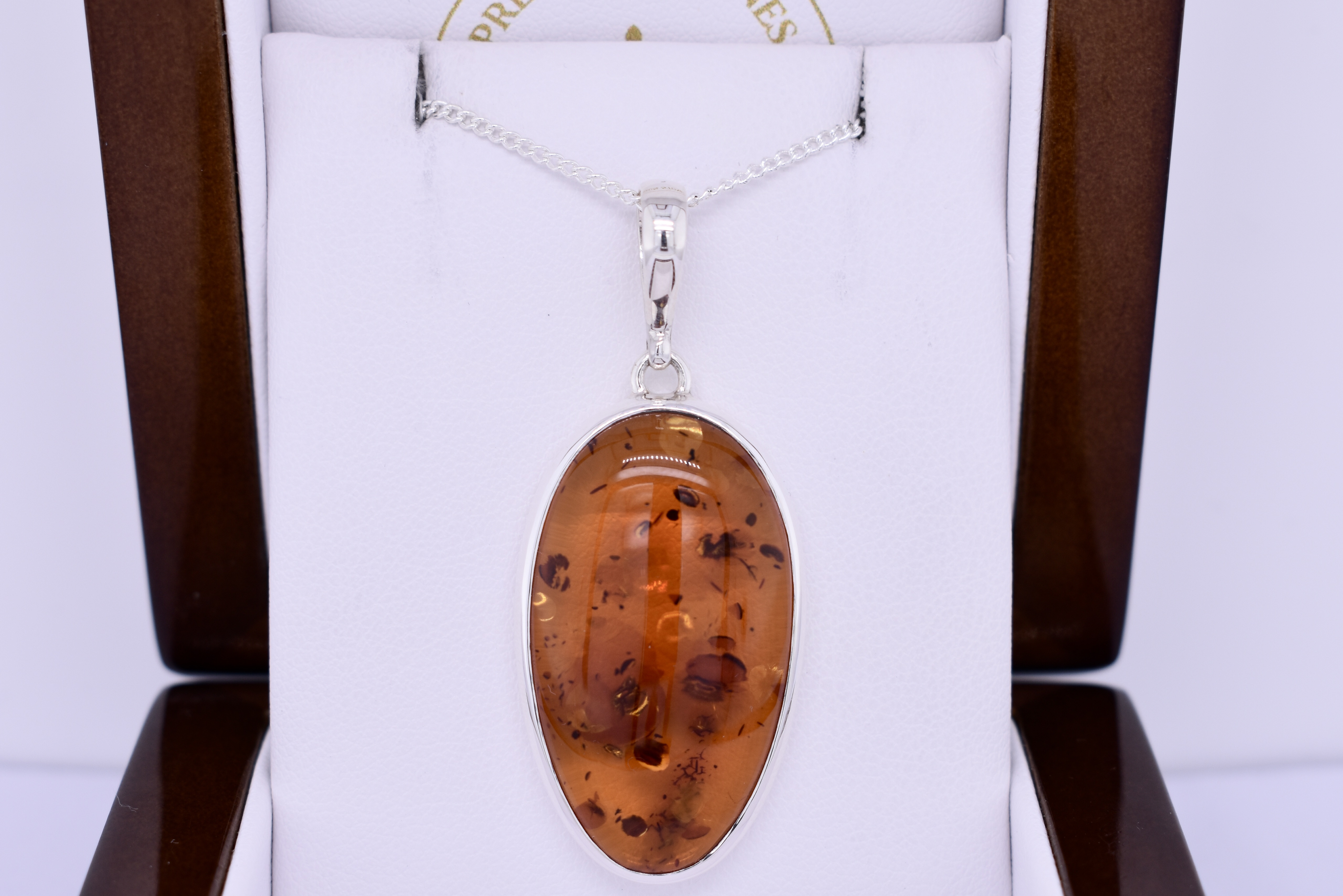 Handmade Sterling Silver Amber Oval Bezel Set Pendant