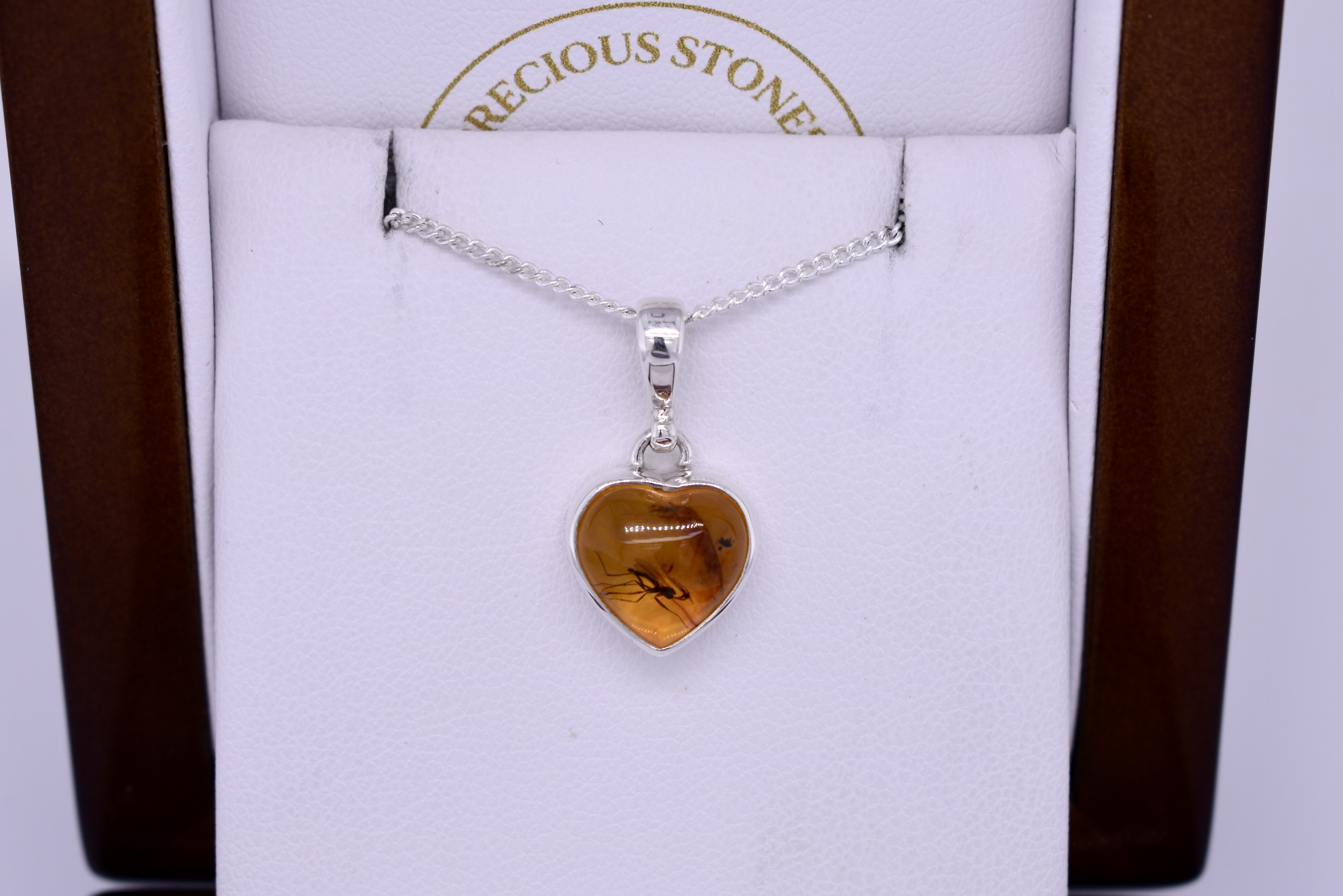 Handmade Sterling Silver Amber Heart Shaped Bezel Set Pendant