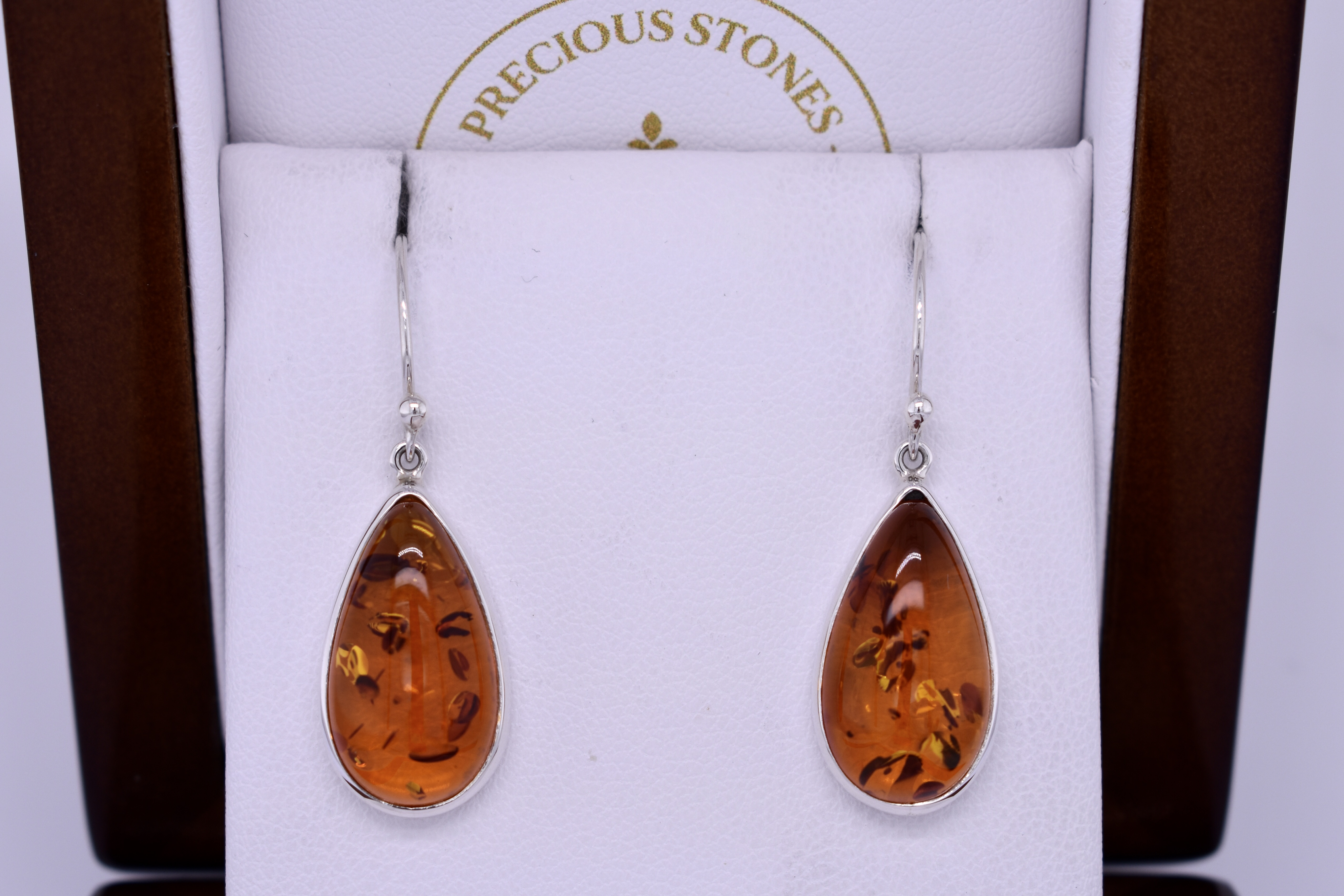 Handmade Sterling Silver Amber Pear Shaped Drops
