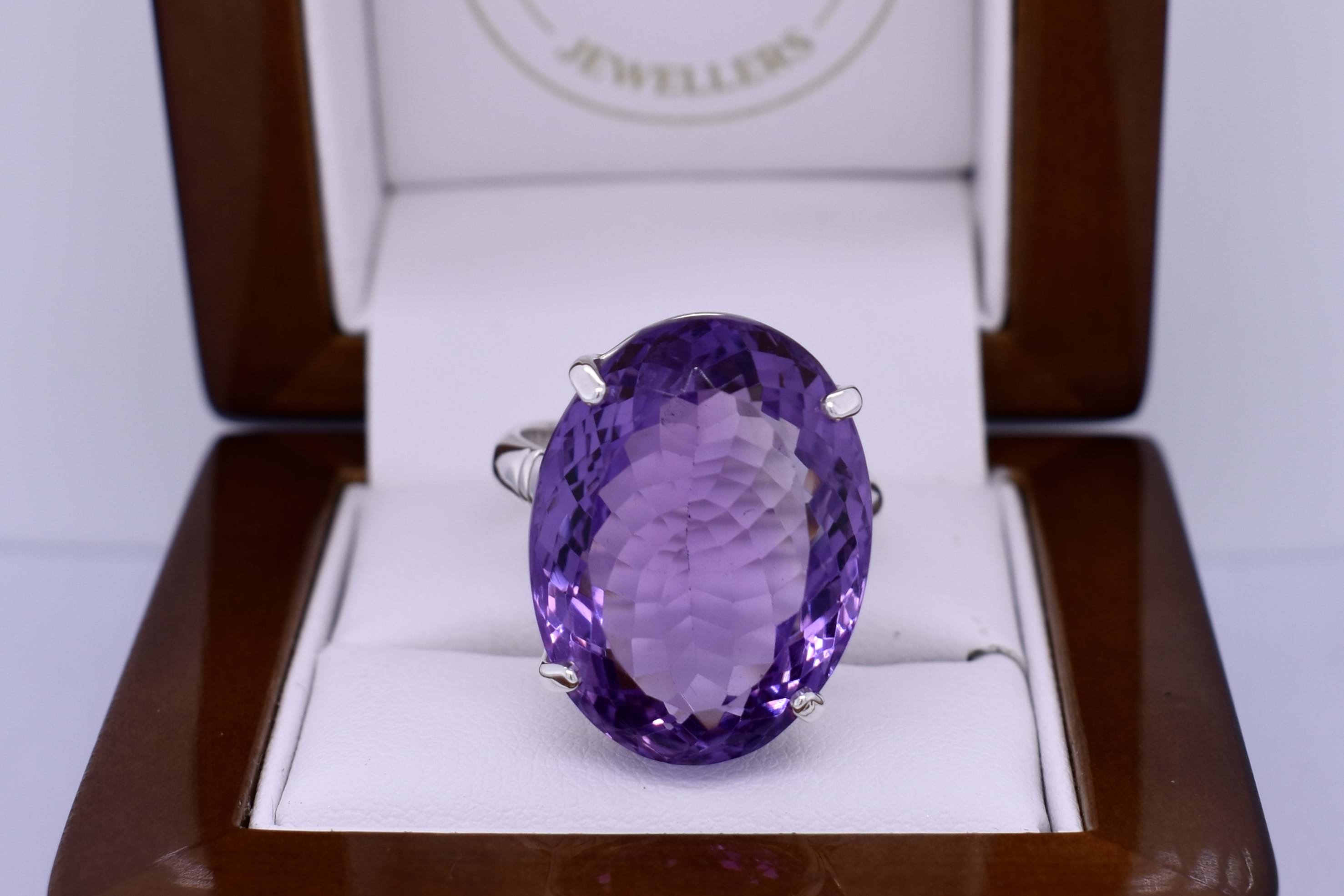Handmade Sterling Silver Amethyst Oval Shaped Ring (T)