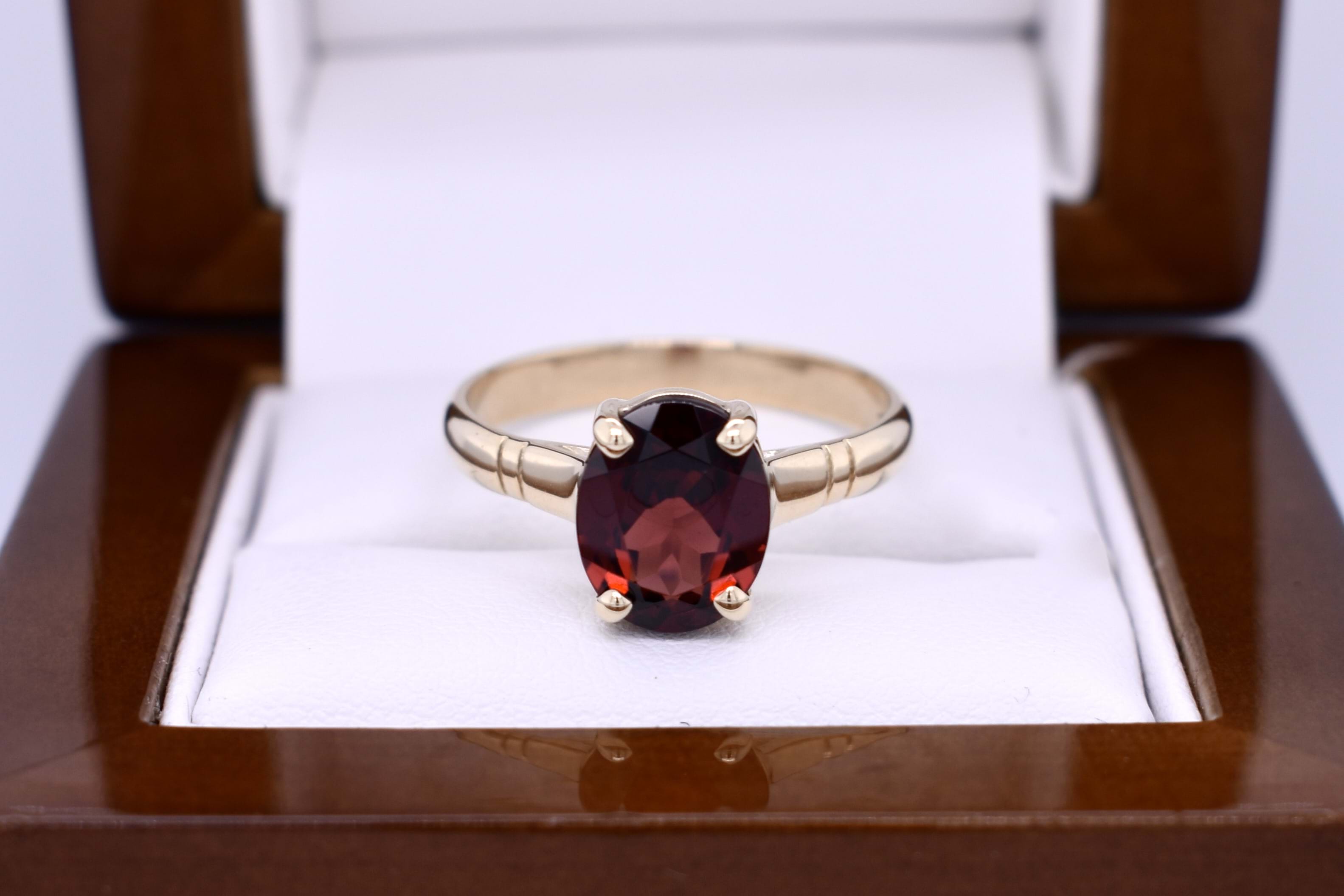 Handmade 9ct Yellow Gold Oval Garnet Ring (R+)