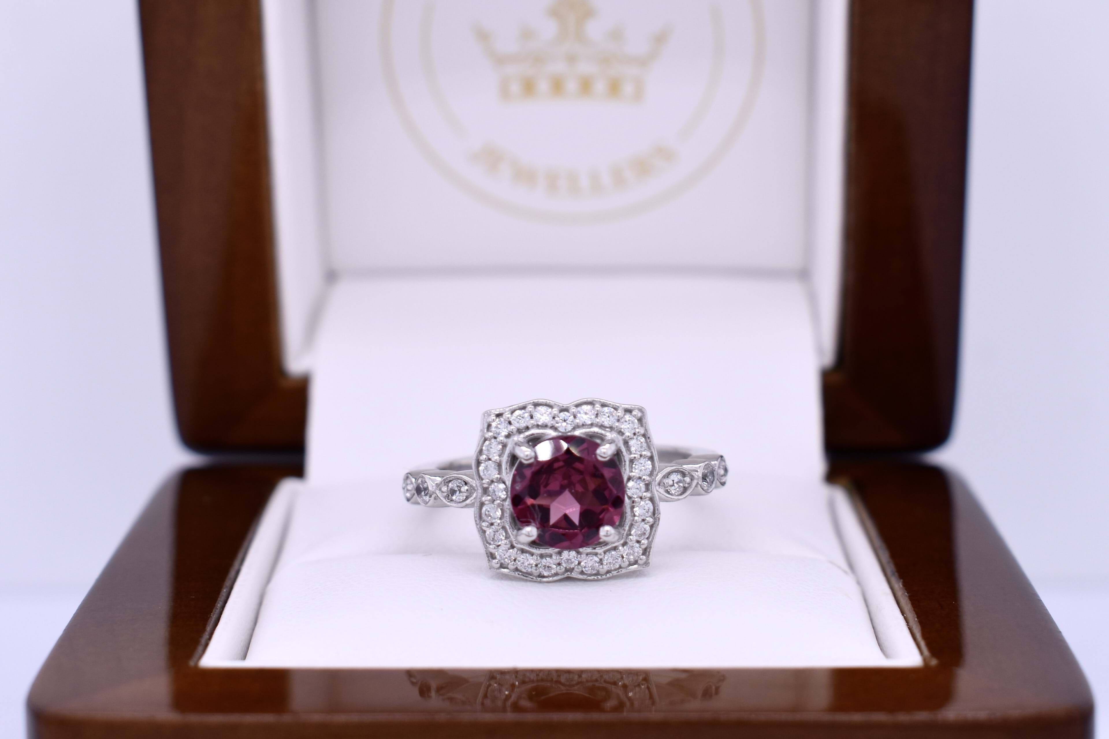 Sterling Silver Rhodolite Garnet & CZ Halo Ring (N)