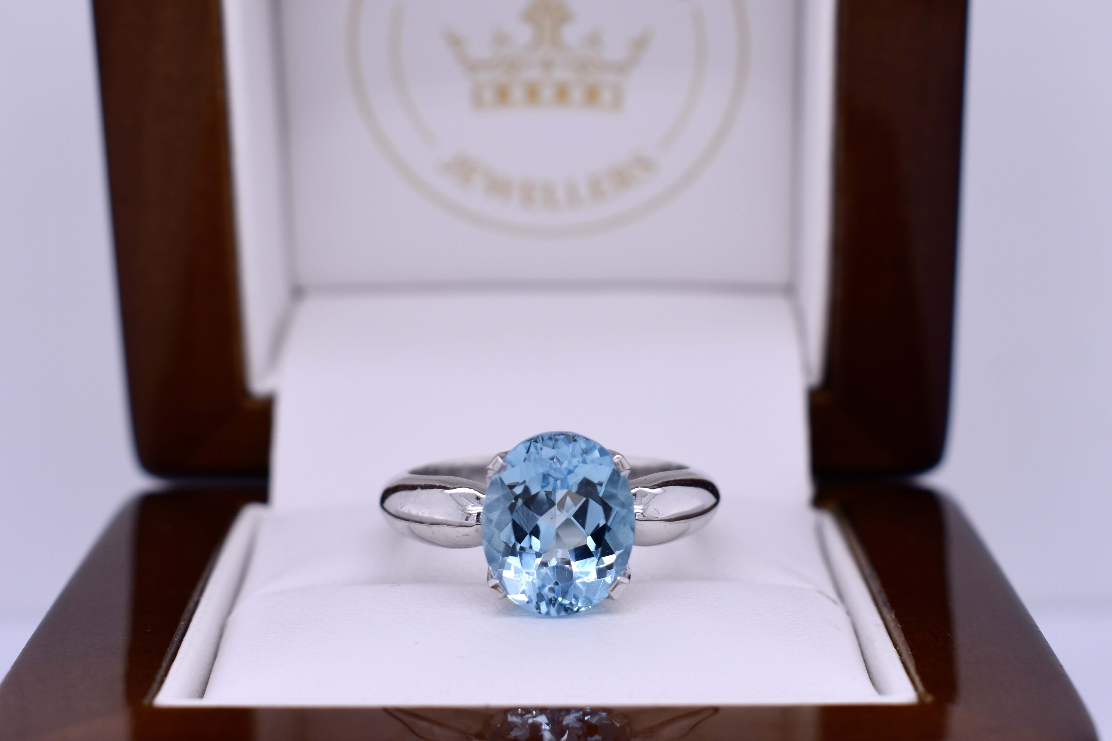 Sterling Silver Oval Sky Blue Topaz Solitaire Ring (T)