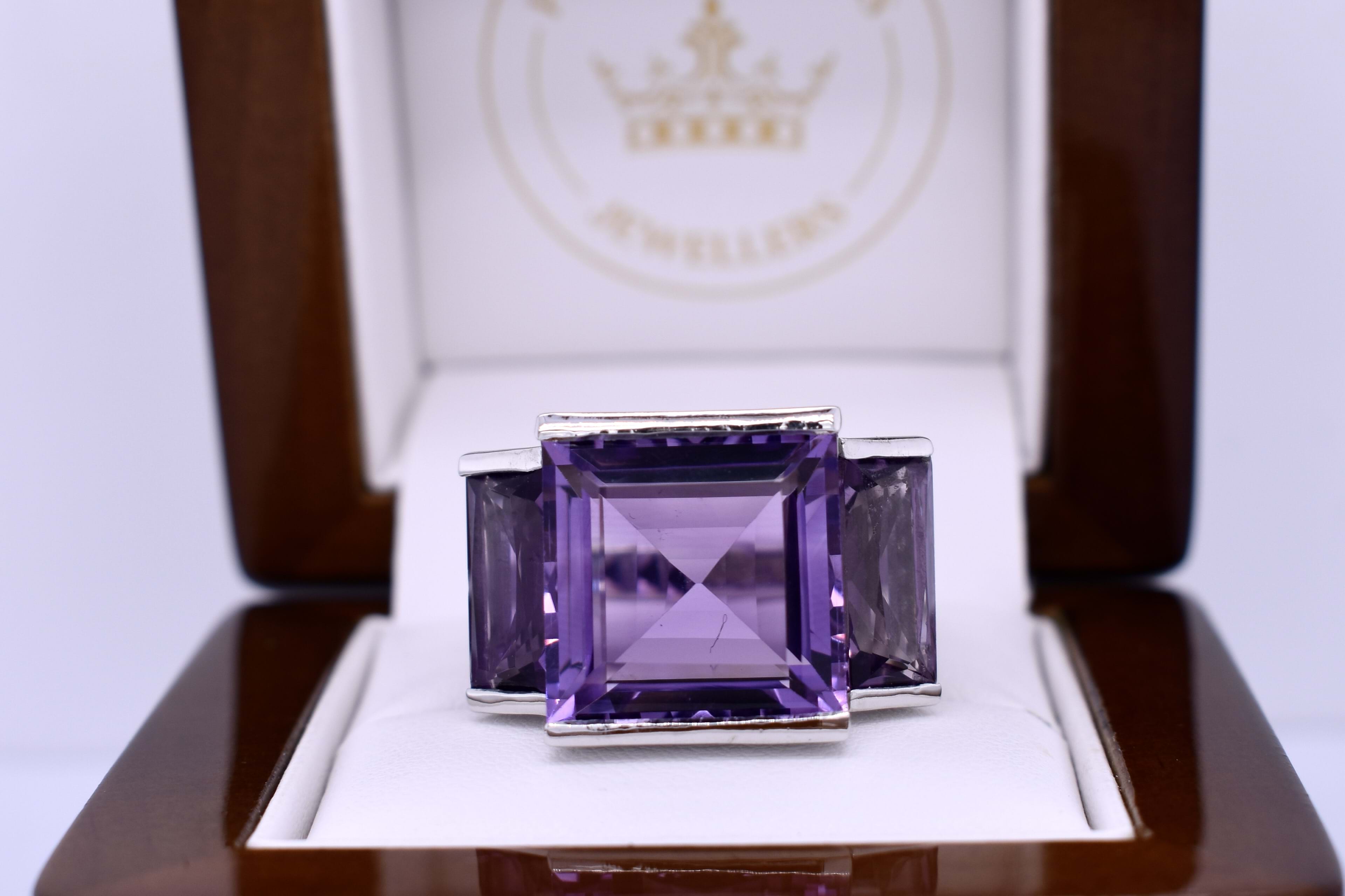 Sterling Silver Amethyst & CZ Trilogy Ring (Q)