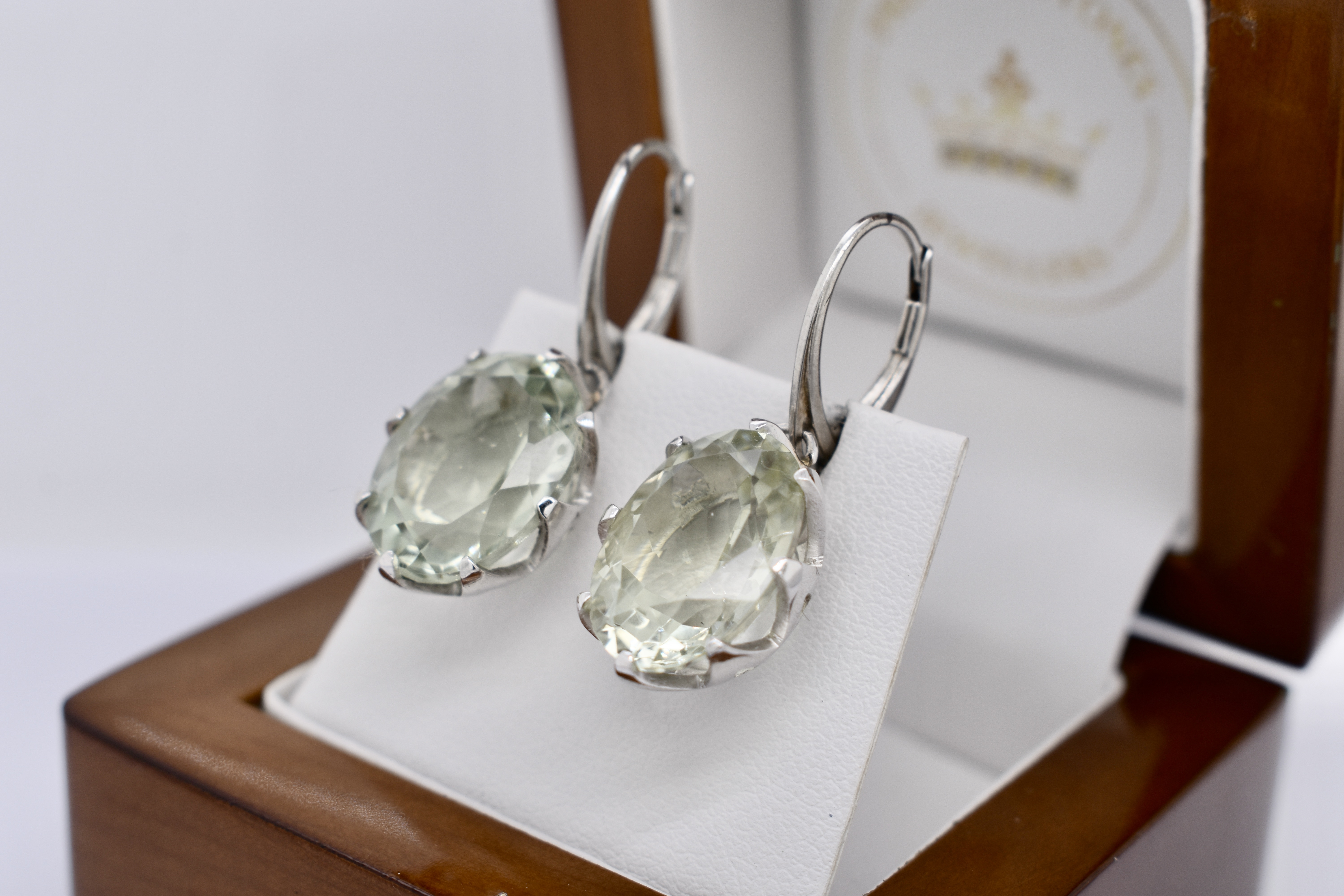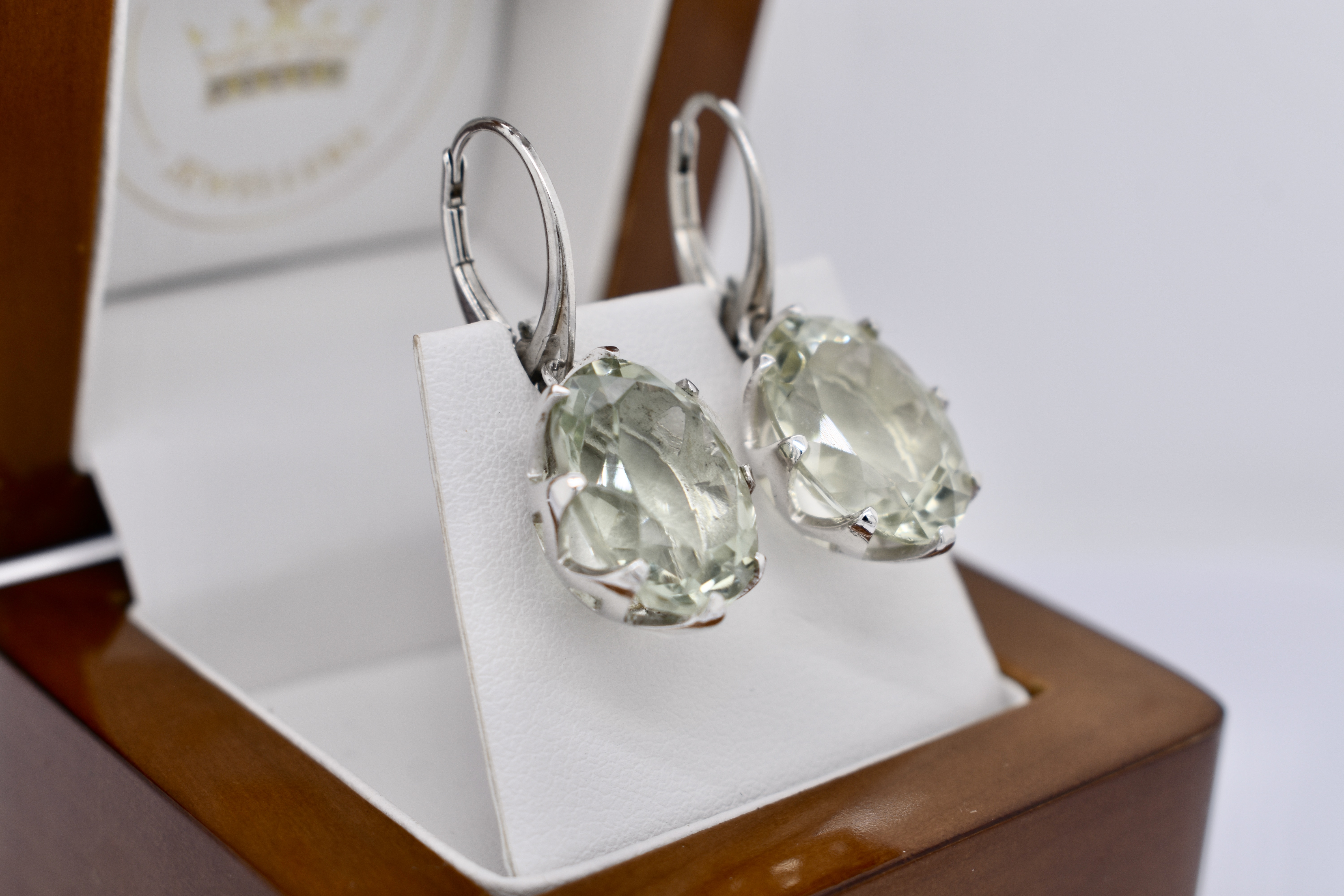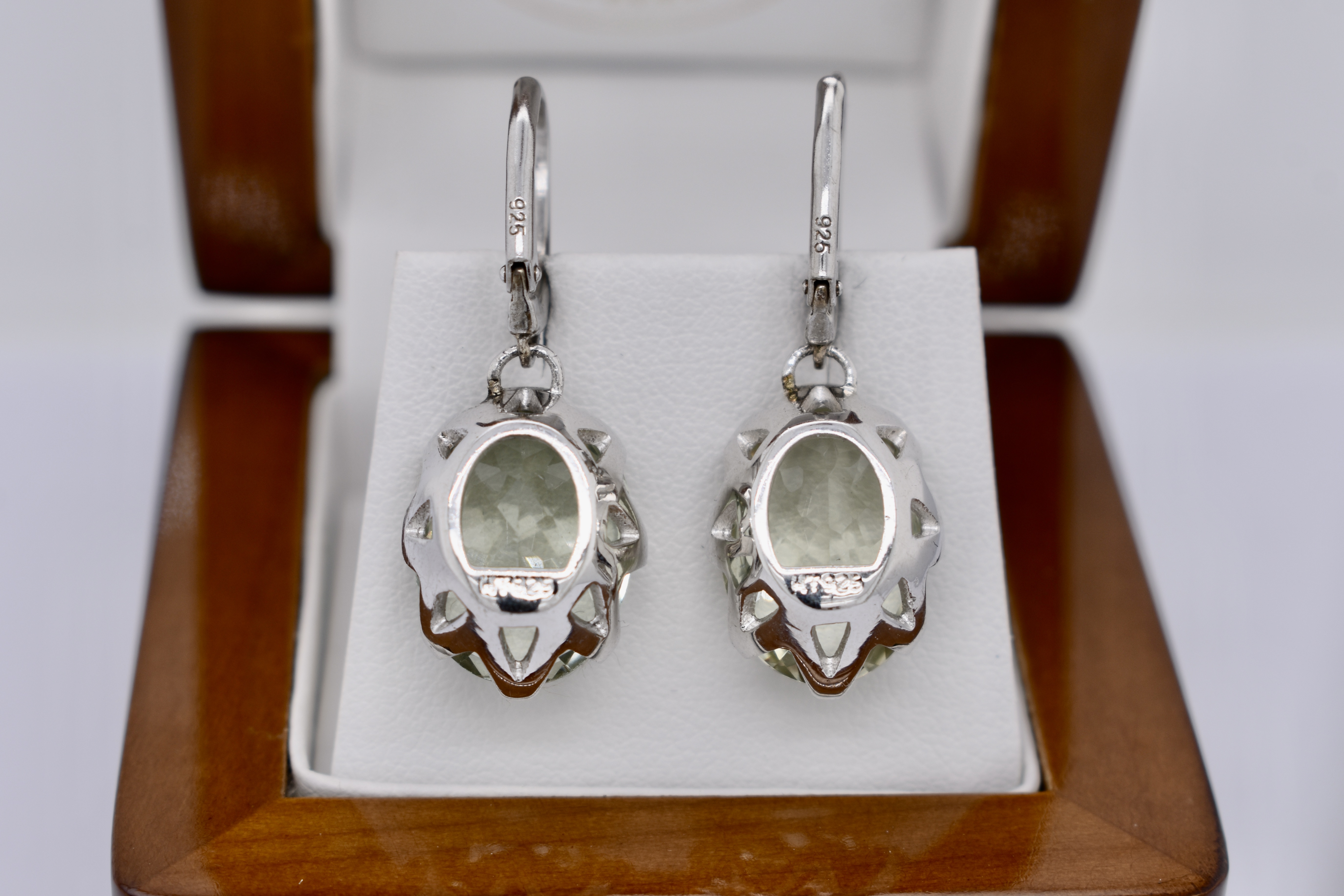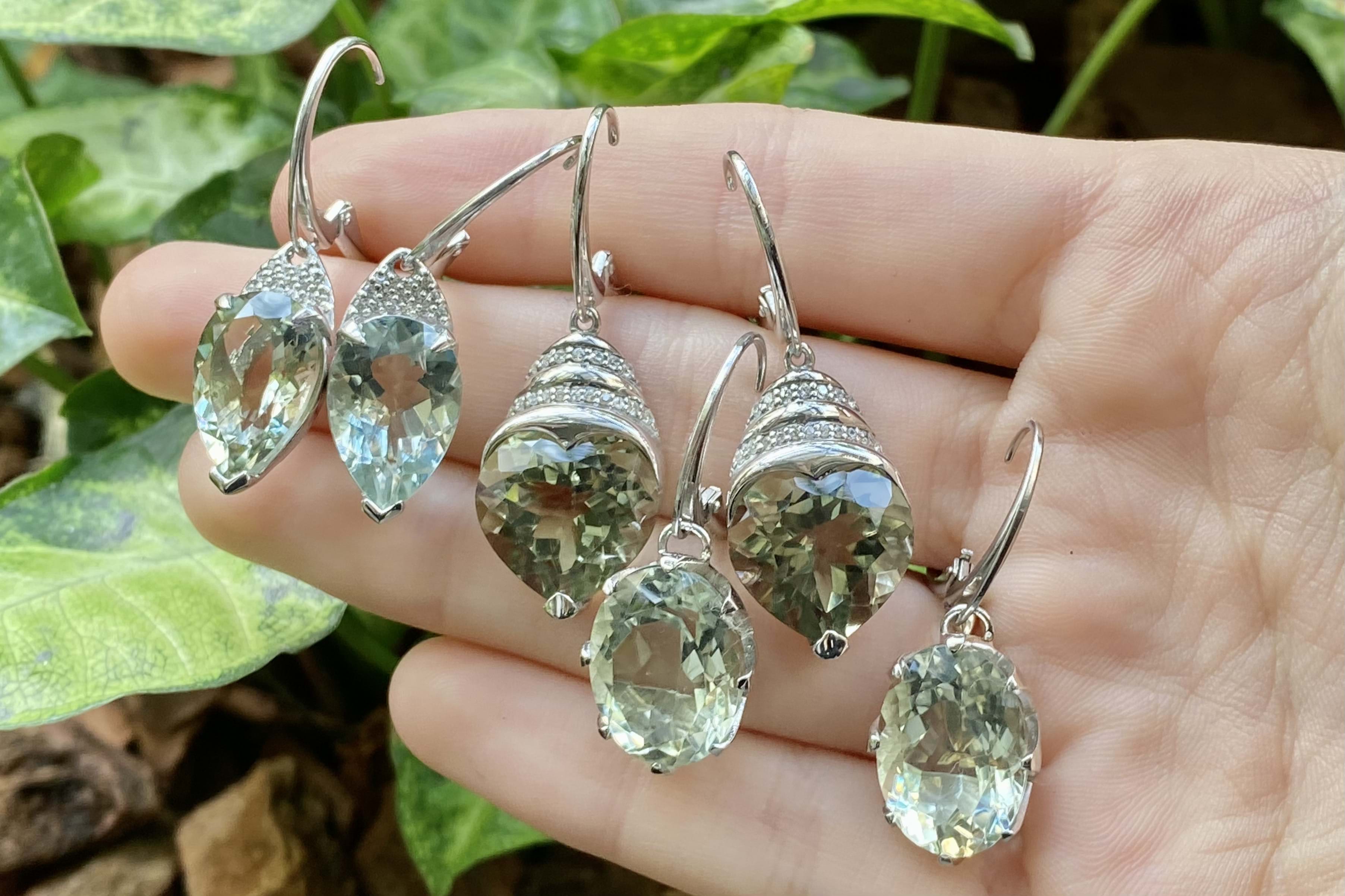 Crafted in sterling silver, these stunning oval prasiolite drops are set with eight claws. Finished with a secure euro clip fitting. Measuring 15.9x13.2mm. Pictured with other earrings available for seperate purchase.