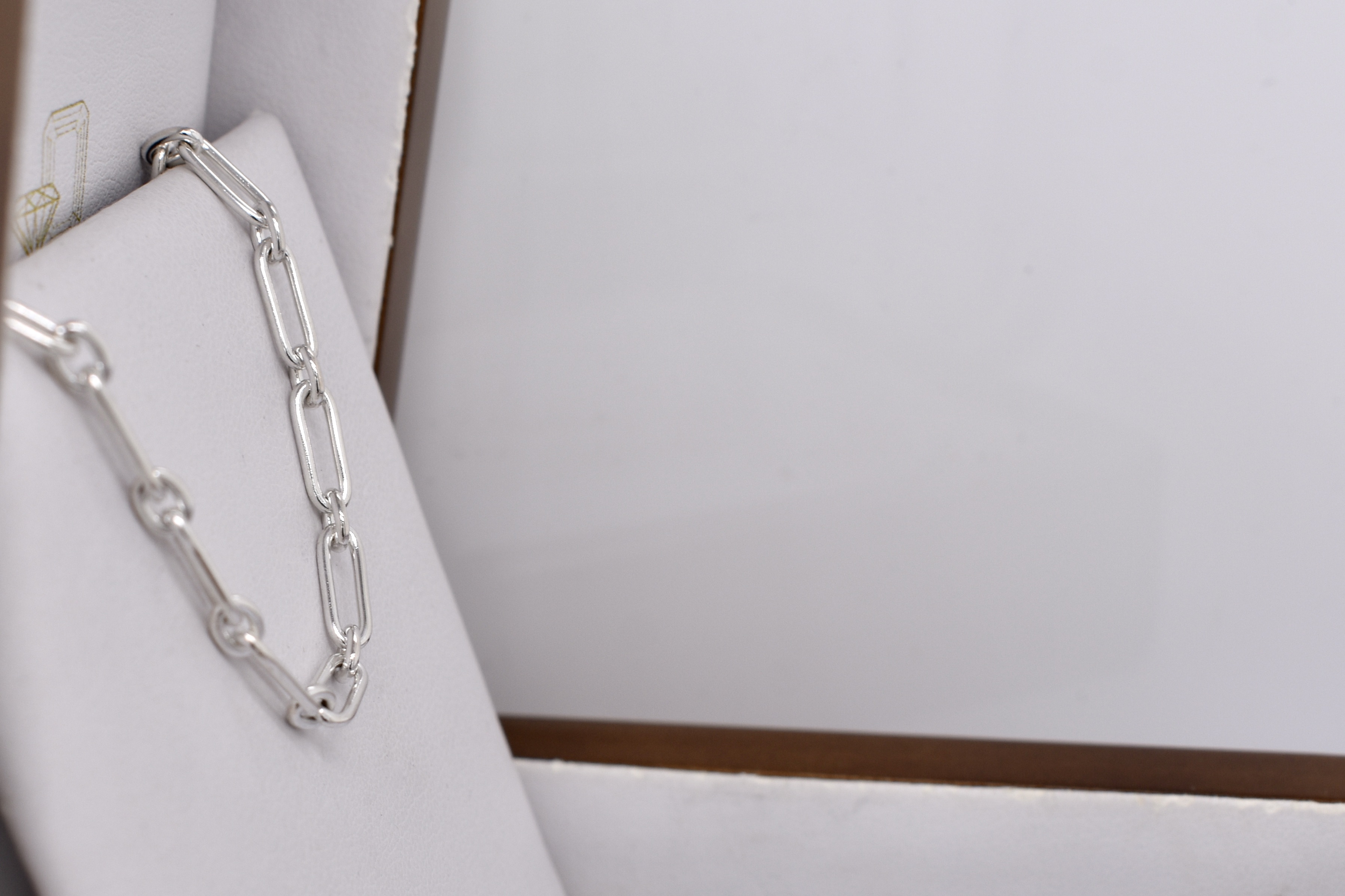 Handmade by our fabulous goldsmith, this lovely 1/1 link cable chain (1 long link, 1 short link), is crafted in sterling silver and measures 47.5cm long. Complete with open jump ring ends. 11.0 grams.