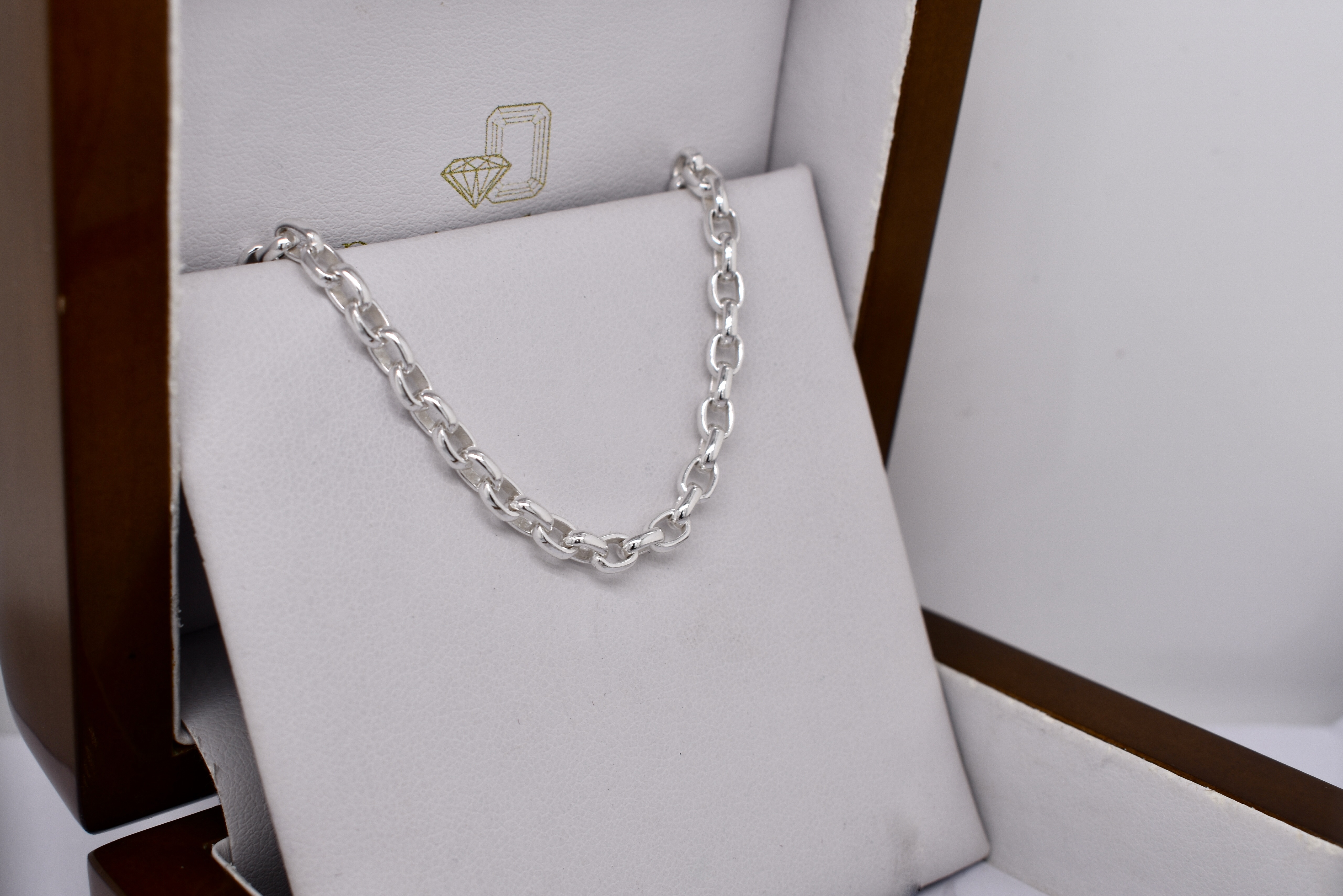 A simple oval belcher link chain, crafted in sterling silver, measuring 60cm long. Complete with a parrot clasp. Chain weighs 23.3 grams.
