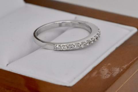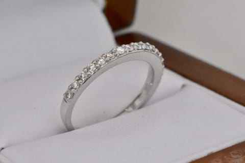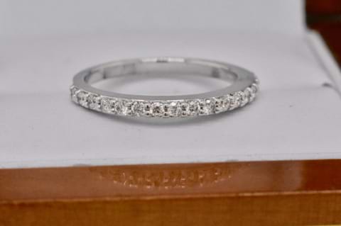 18ct white gold diamond band containing 17 round brilliant cut diamonds equalling 0.30cts in a raised bead set design. Size M. Independent Valuation Supplied