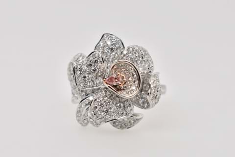 Presented with a loose 0.07ct Argyle pink diamond our inhouse designers alongside it's current owner have created this show stopping diamond encrusted flower ring. Crafted in 18ct white gold it contains an incredible 214 scintitalting round brilliant cut diamonds totalling 2.38cts and is the first piece in what will be a spectacular demi-parure. This totally fabulous, diamond encrusted, flower ring is currently being rocked by it's equally fabulous owner, if you are inspired by this archived design contact us today to discuss how we can create something incredible for you or your loved one.