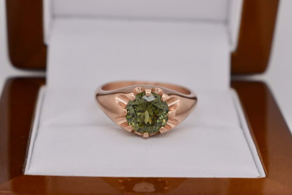 Archived 18ct Rose Gold Brushed 3.18ct Demantoid Garnet Ring