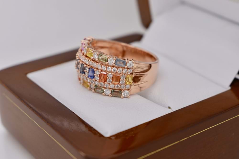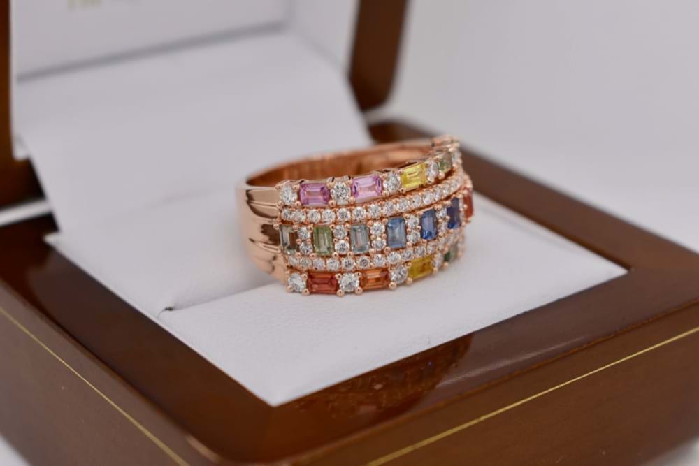 Archived 18ct Rose Gold Rainbow Sapphire Dress Ring