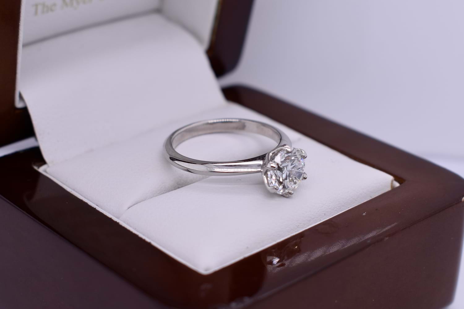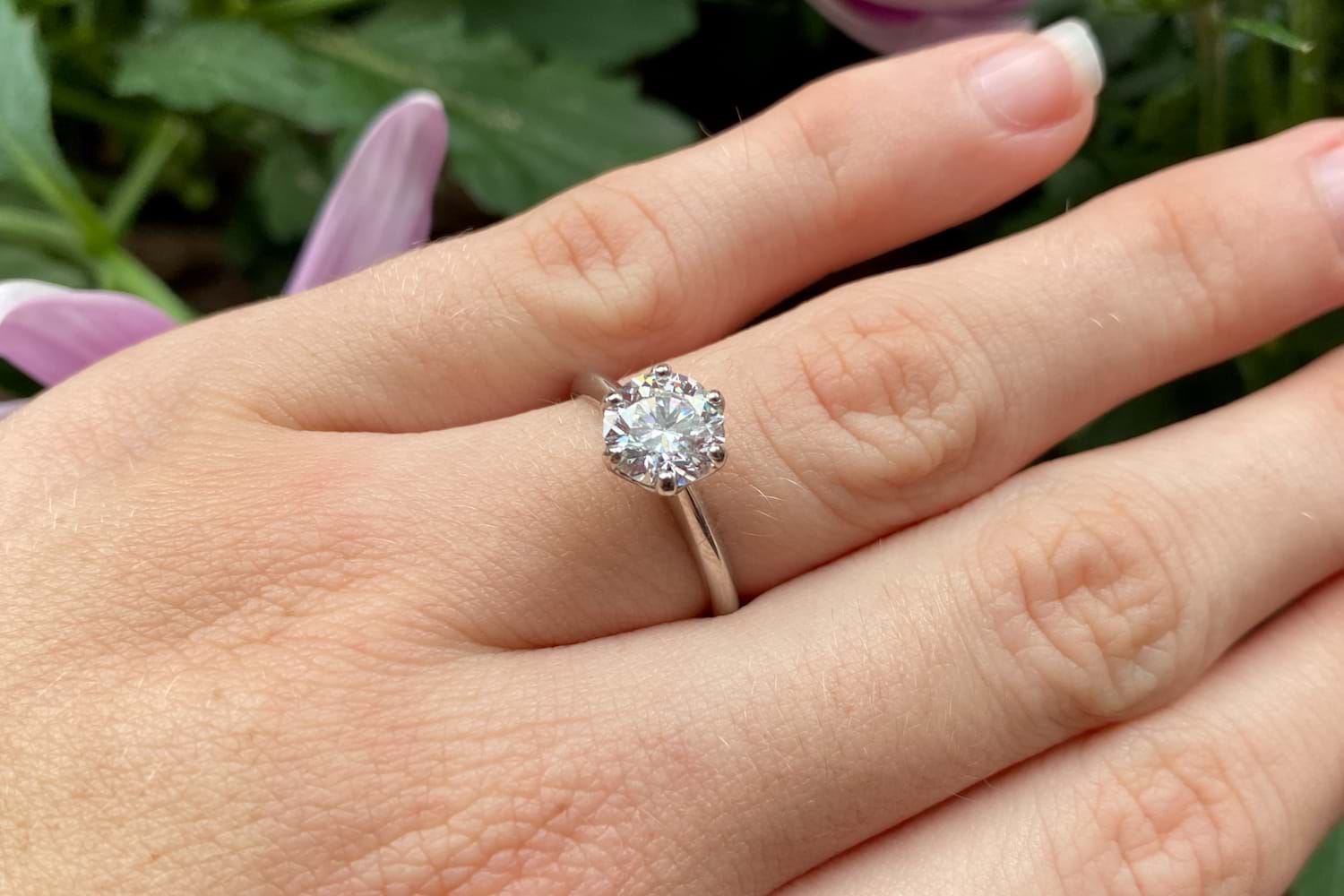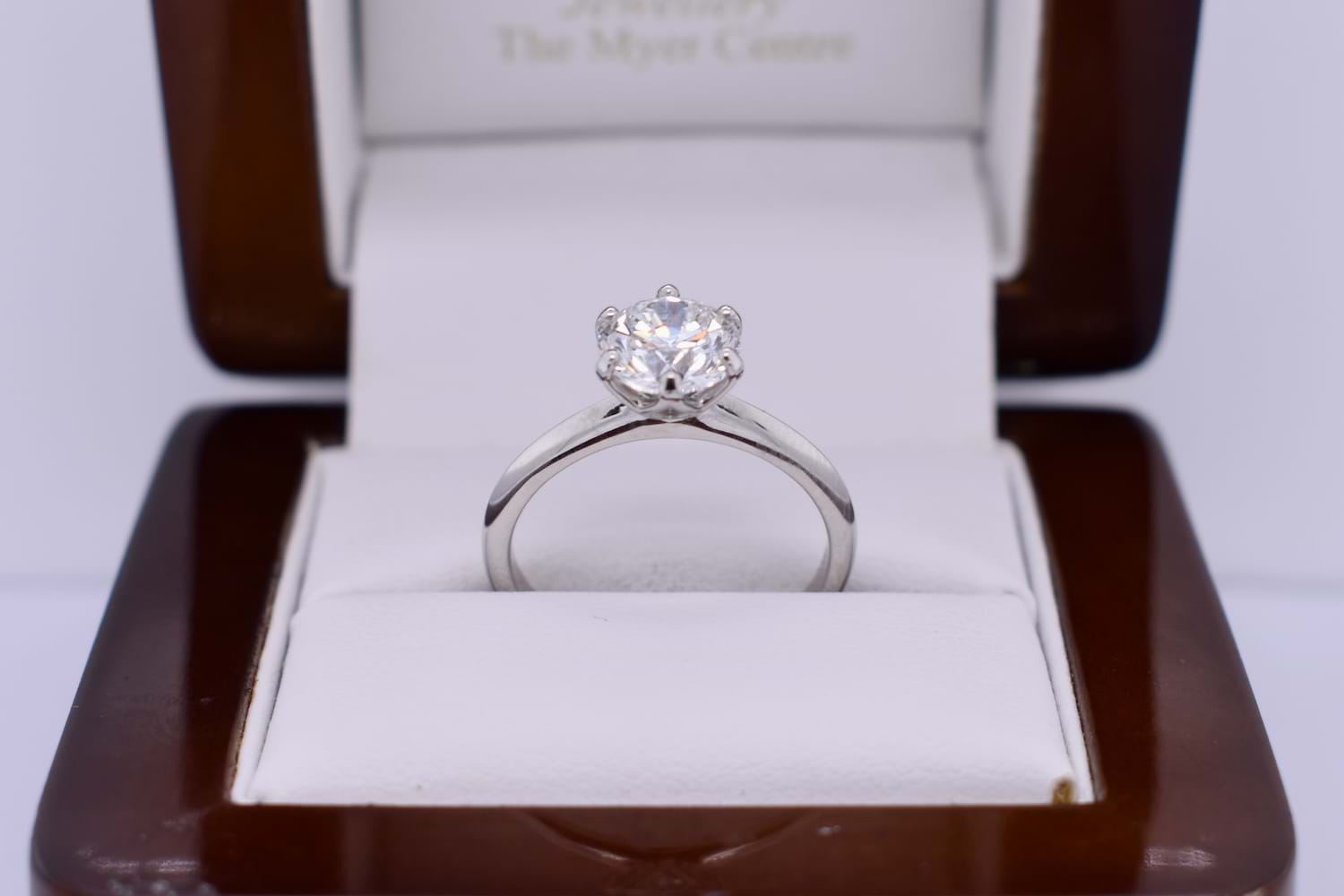 Our signature vine solitaire design is being showcased as the vessel for this spectacular natural 1.54ct round brilliant cut diamond, hand selected in store by our clients. This stunning E colour diamond has six claws and a beautiful vine inspired collet, and will sit beautifully next to her existing wedding band. Auscert & Independent Valuation Supplied.