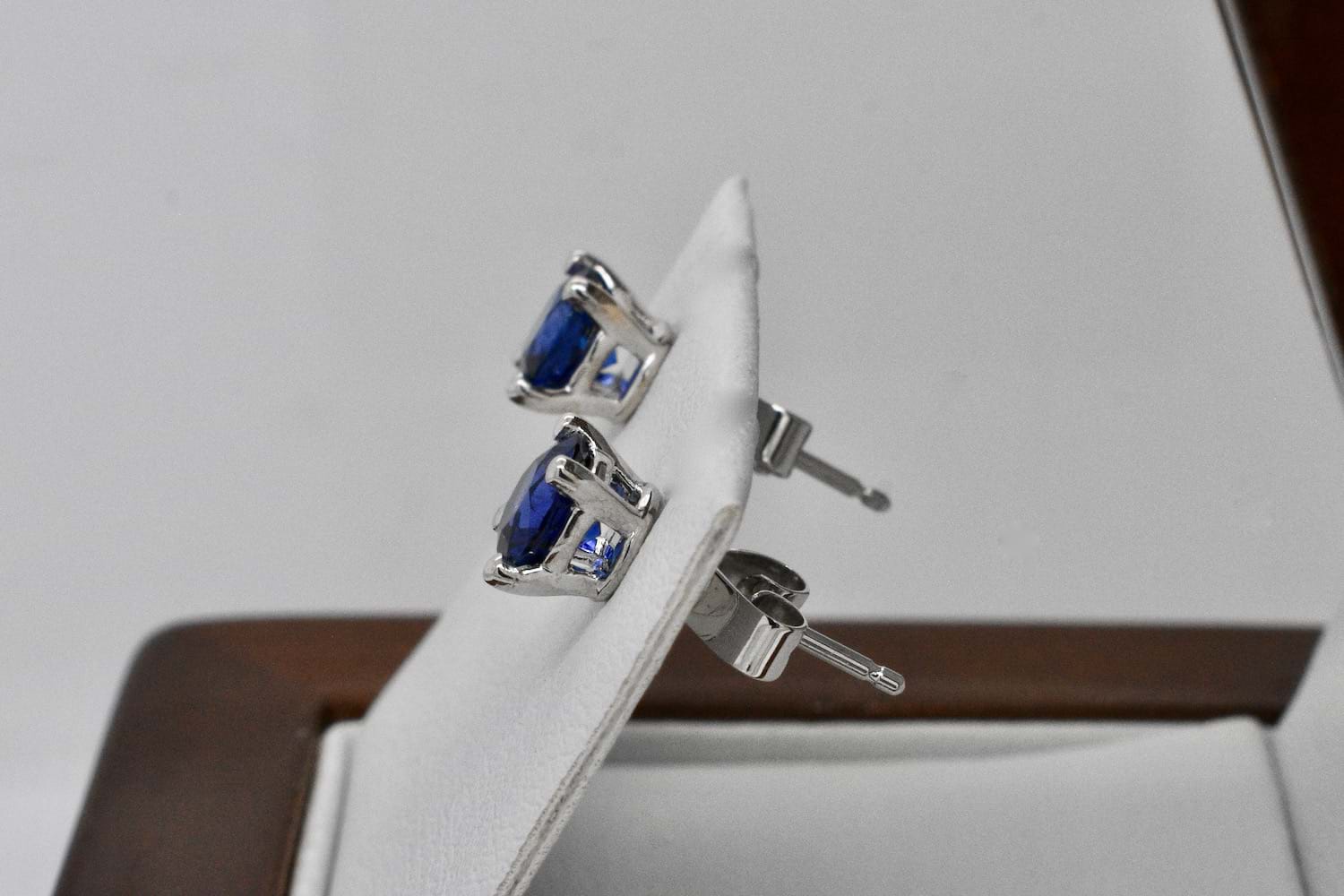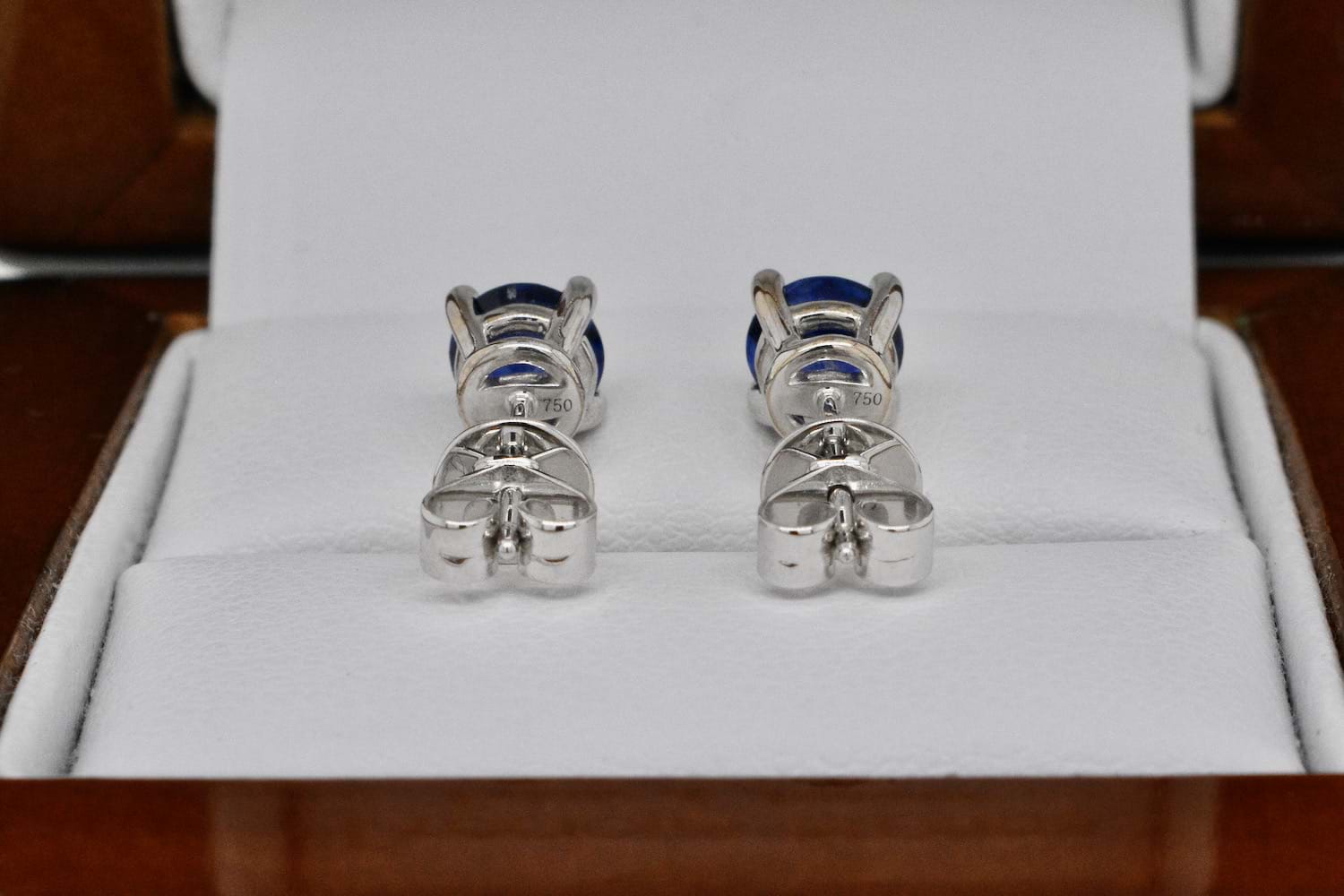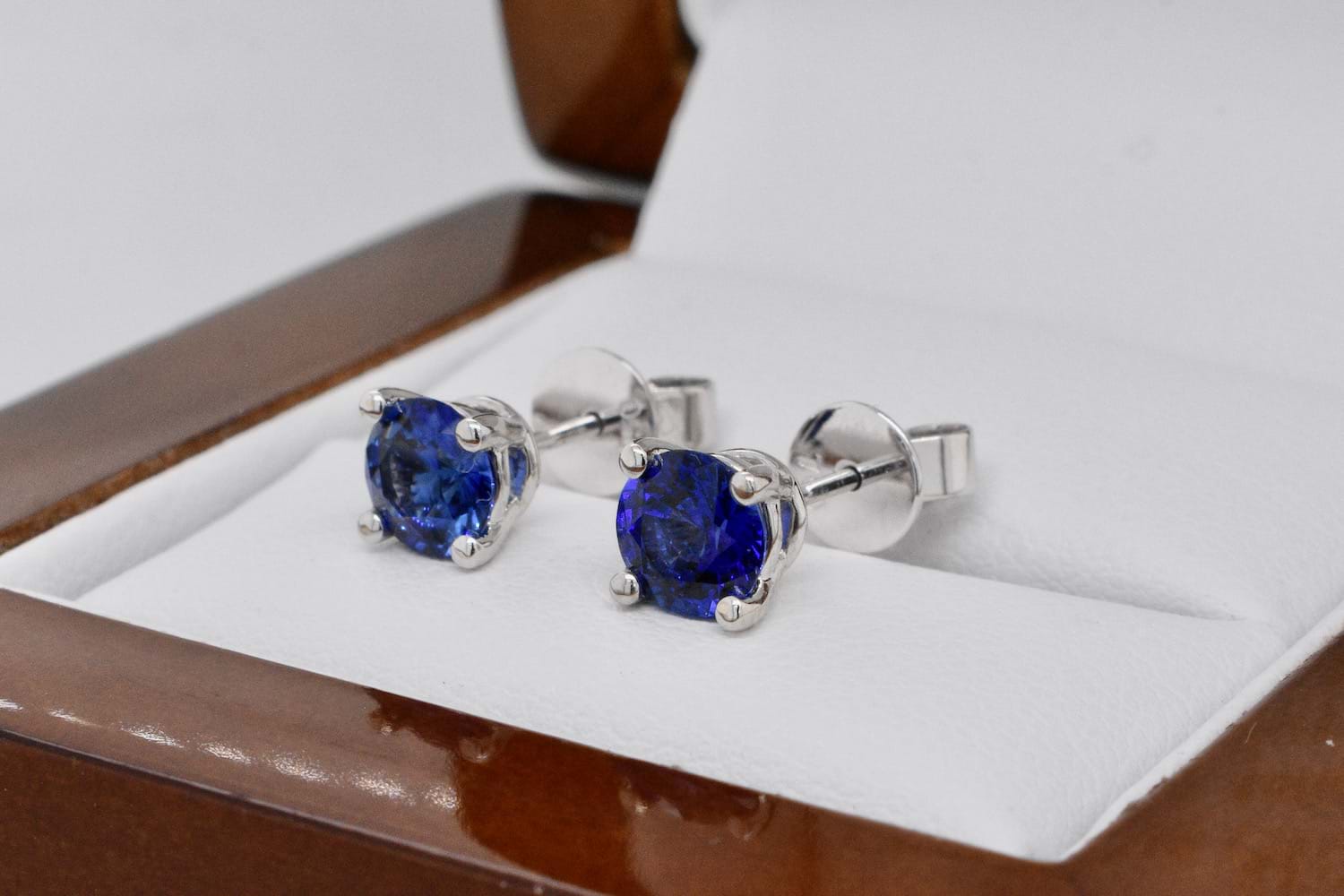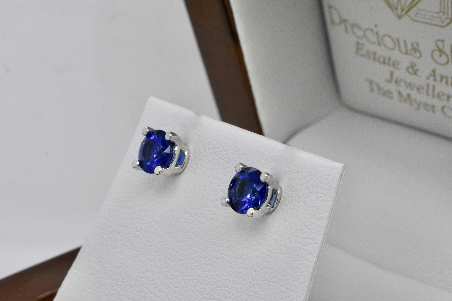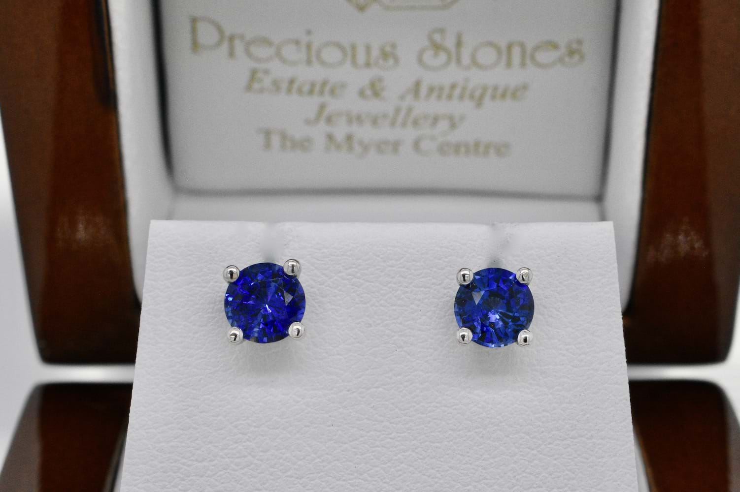 This stunning pair of bright, dark blue, Ceylon sapphires total 1.56cts and were selected in store by our client to set into simple and timeless 18ct white gold stud fittings. Independent Valuation Supplied.