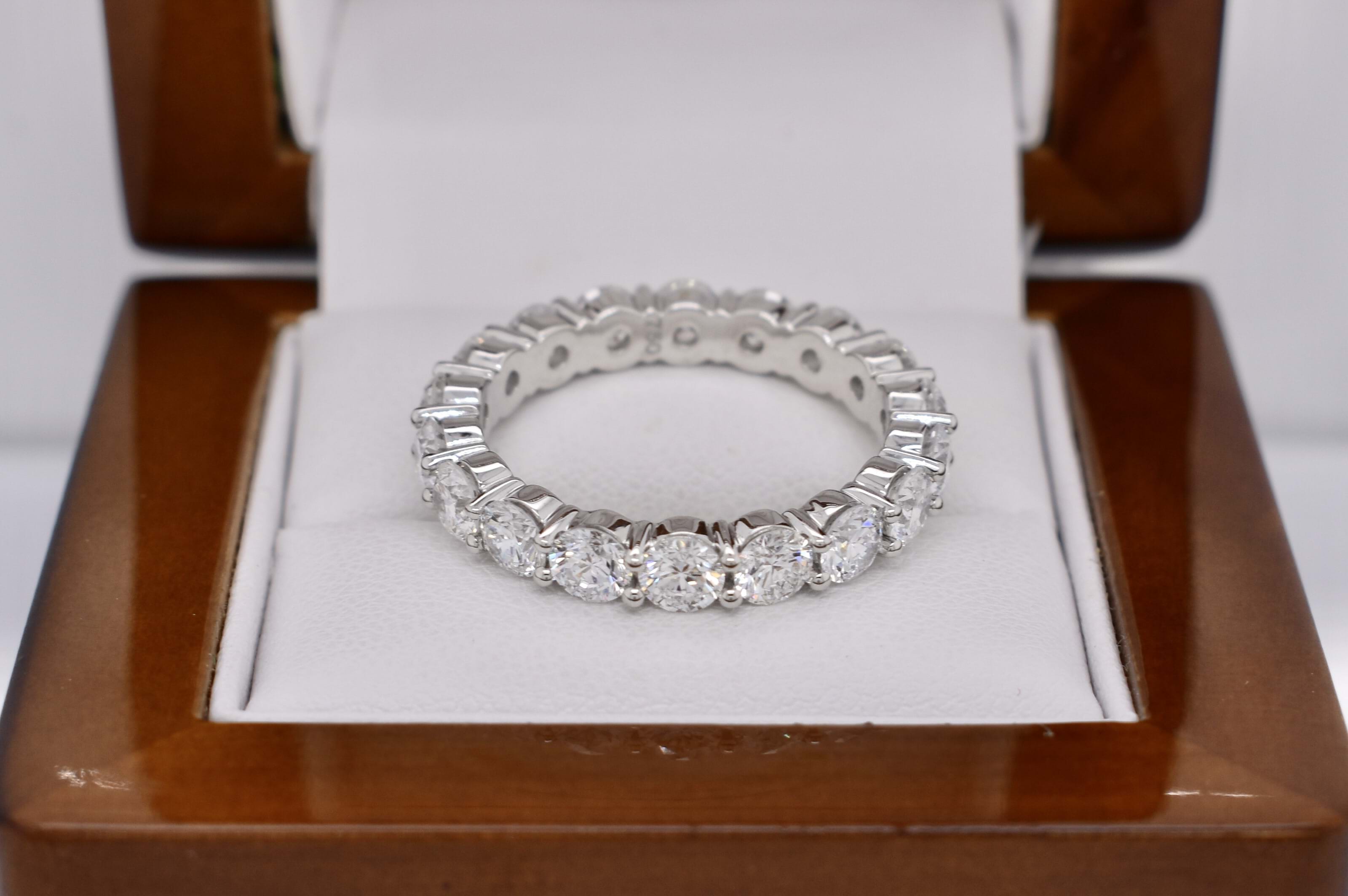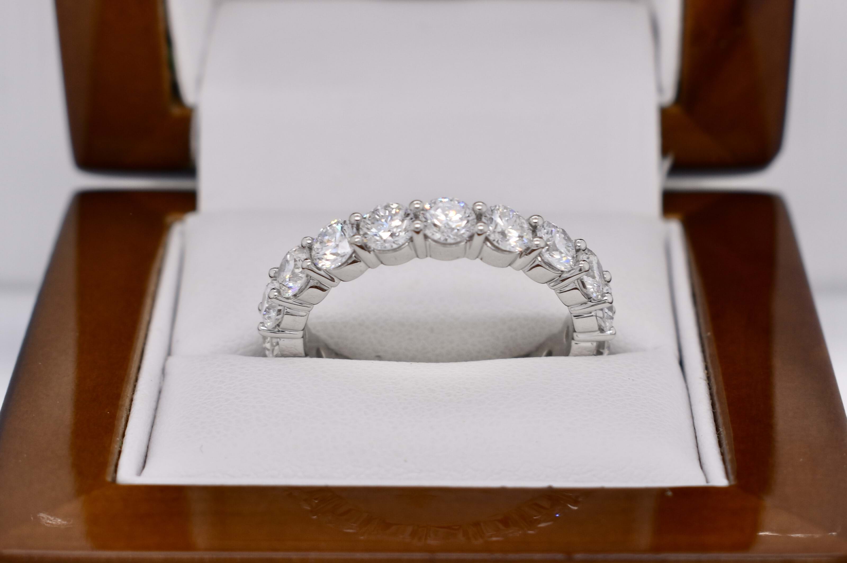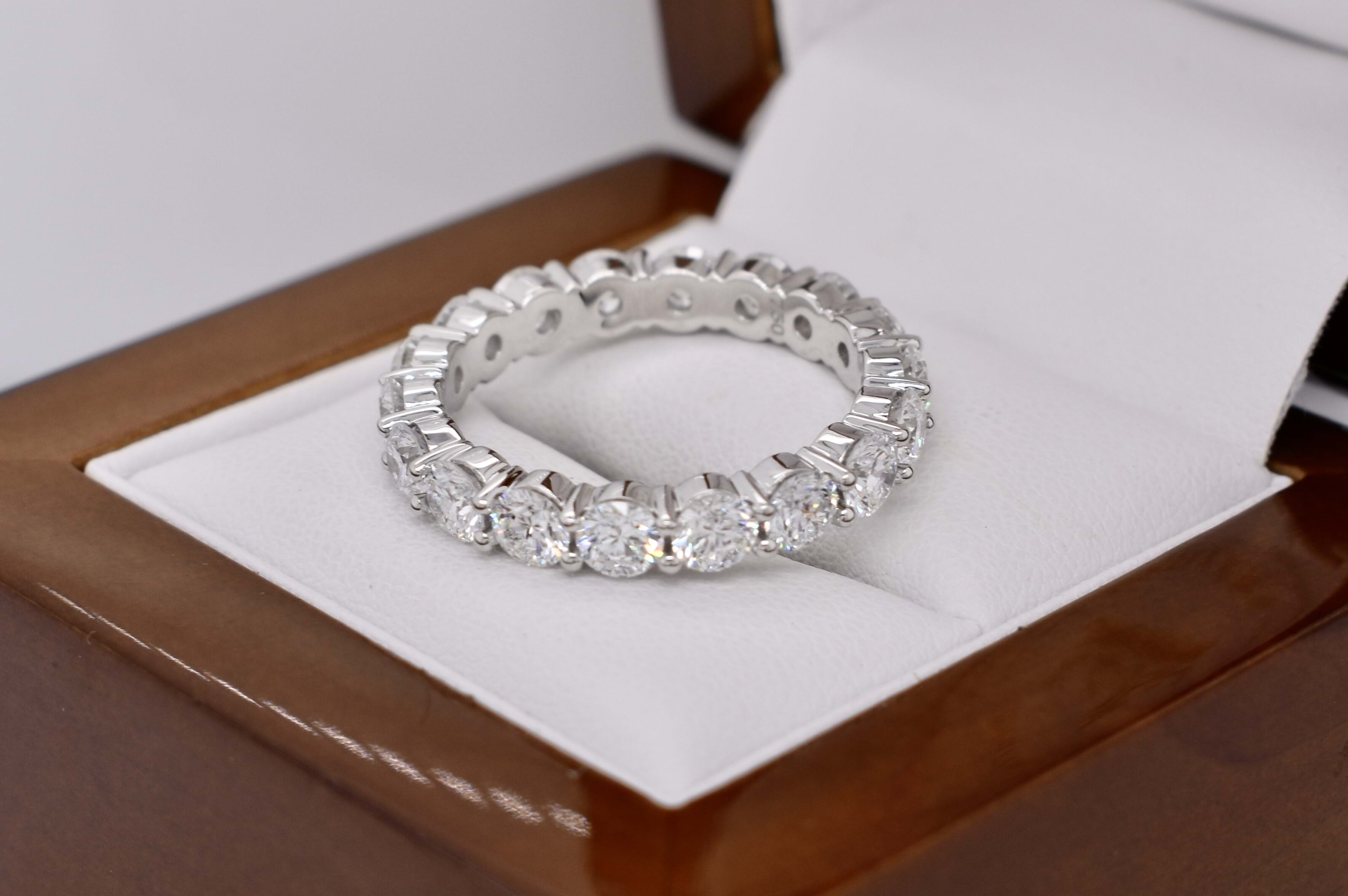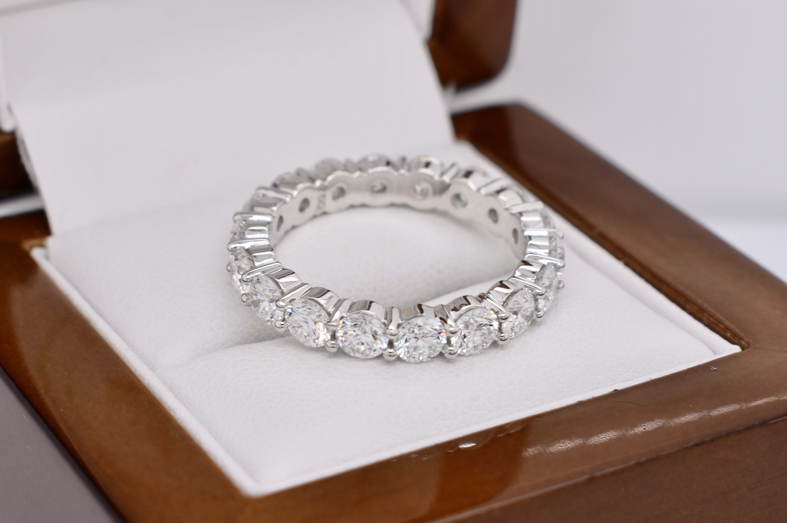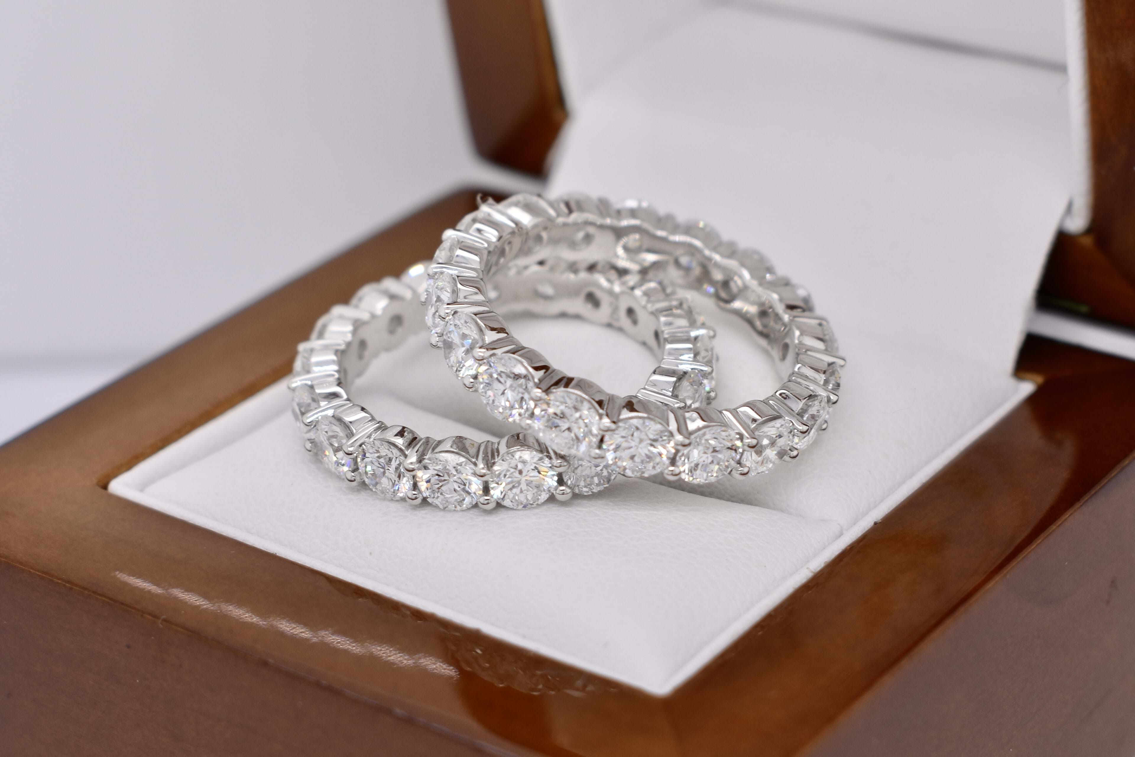 Sparkling and fabulous! These epic labgrown diamond bands each contain 18ct shimmering round brilliant cut labgrown diamonds shared claw set and totaling 4.50ct in 18ct white gold. Naturally our client needed the matching pair! Independent Valuation Supplied.