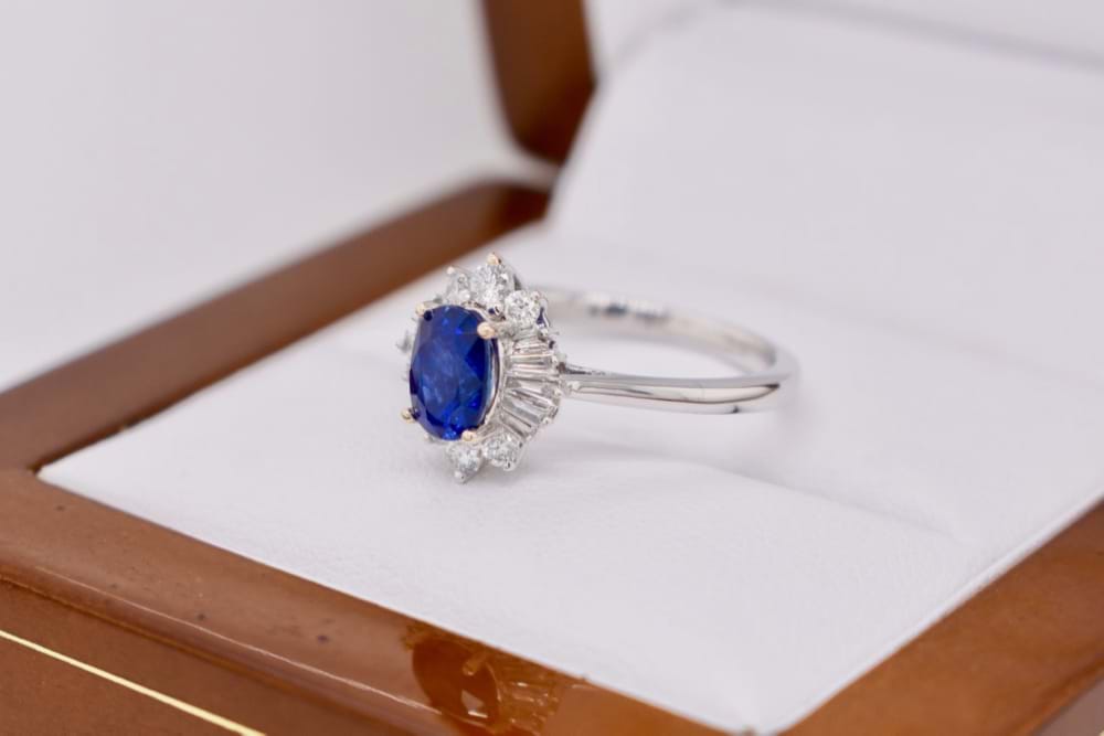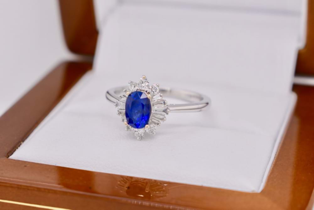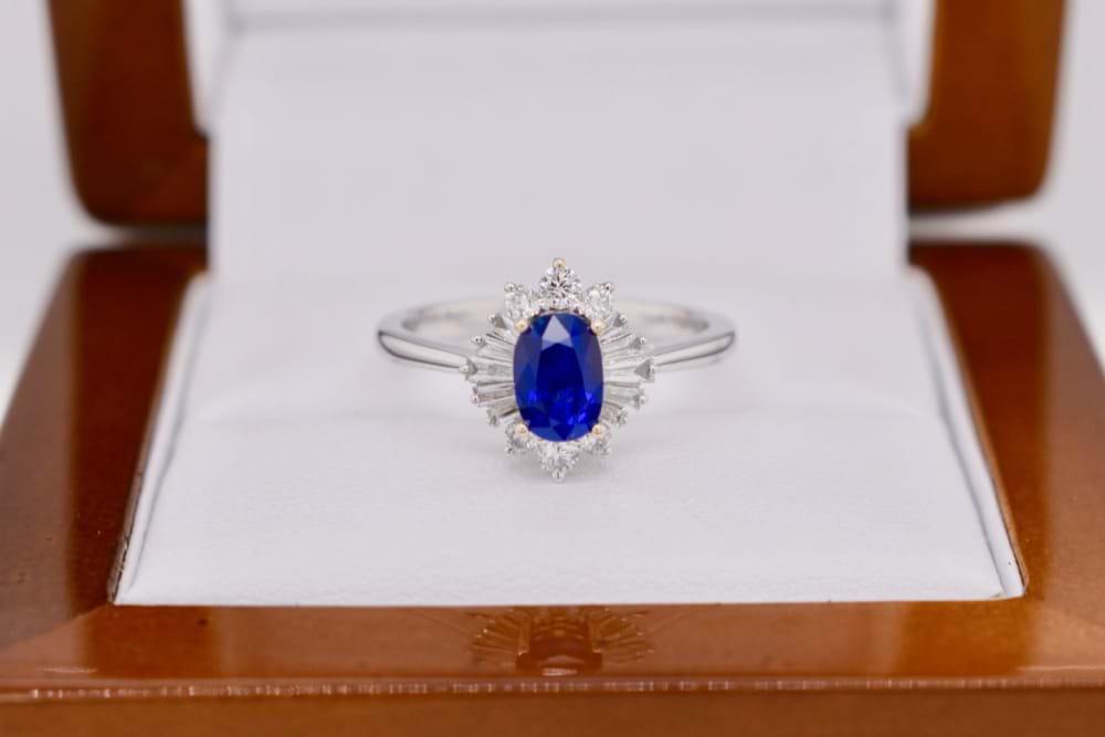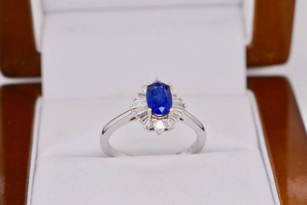 Archived 18ct White Gold Ceylon Sapphire & Diamond Ballerina Ring