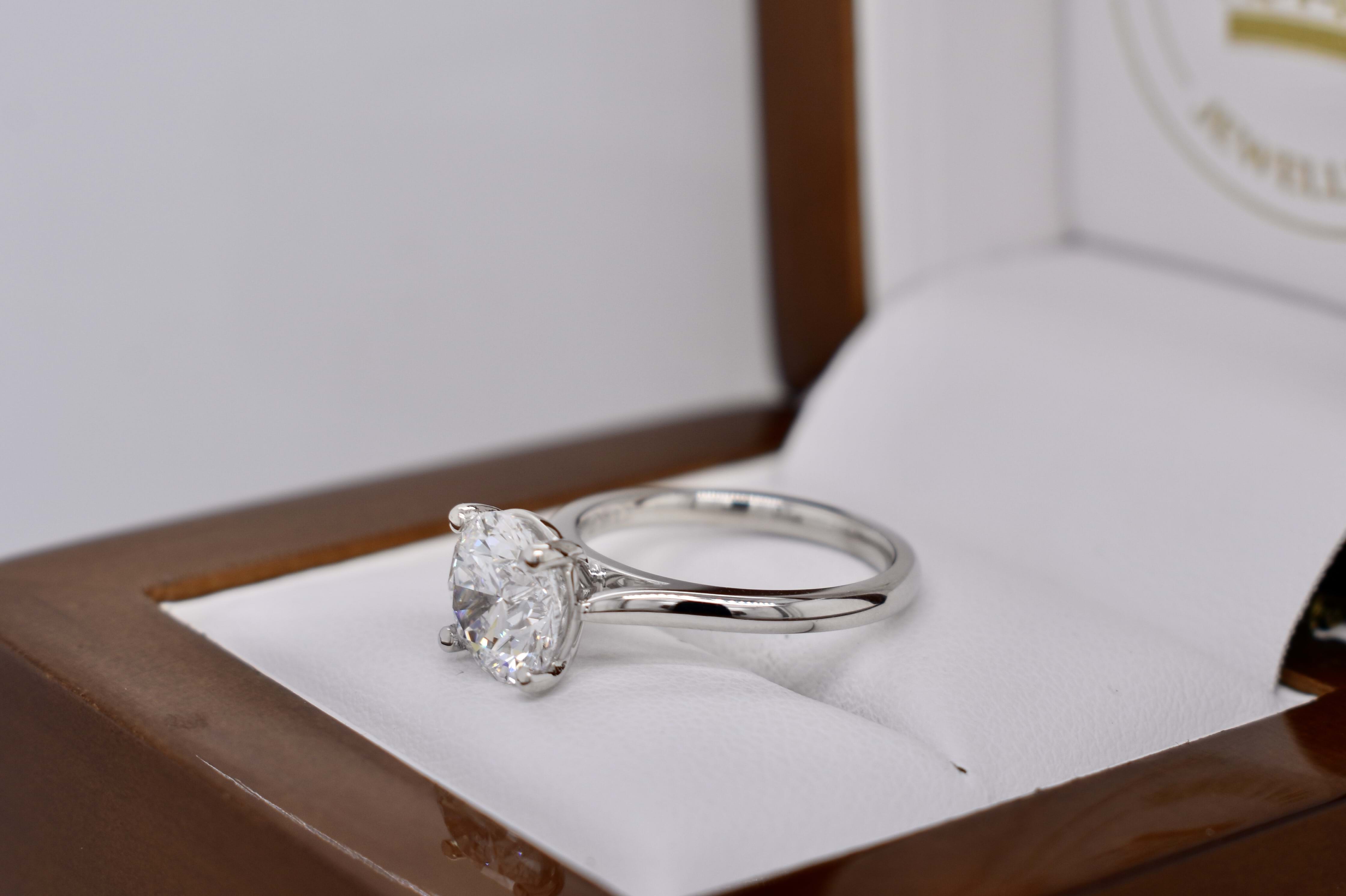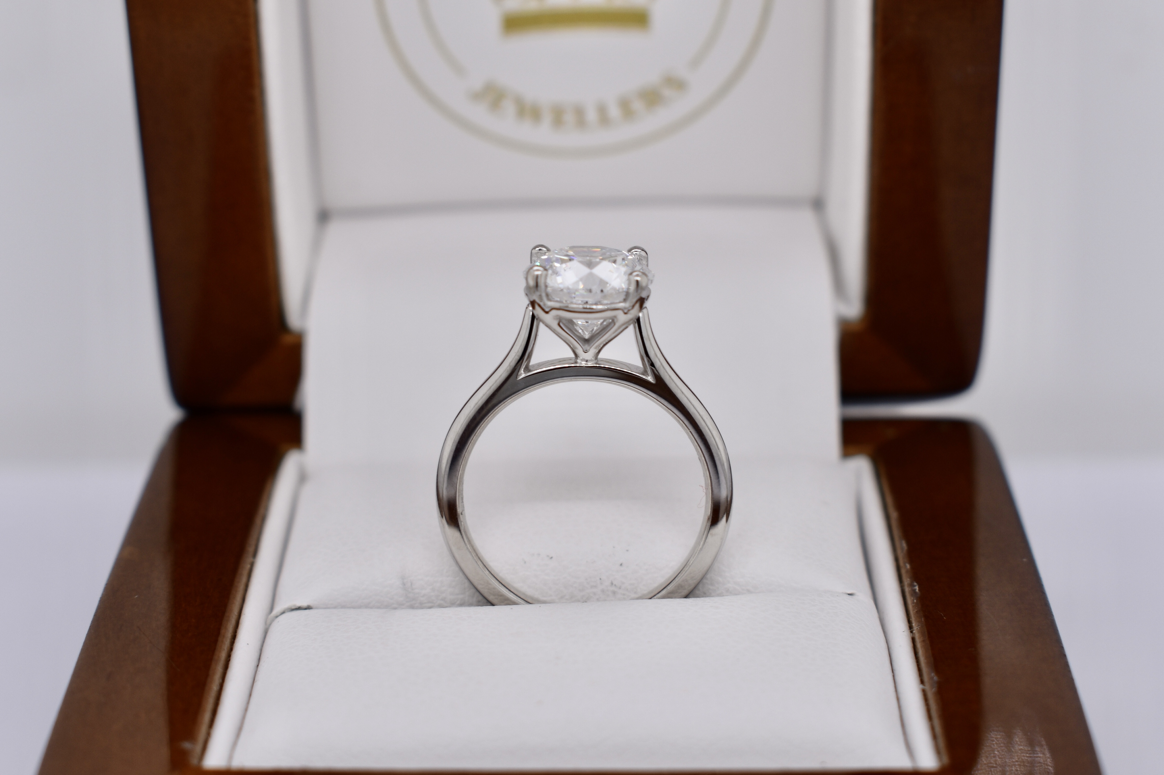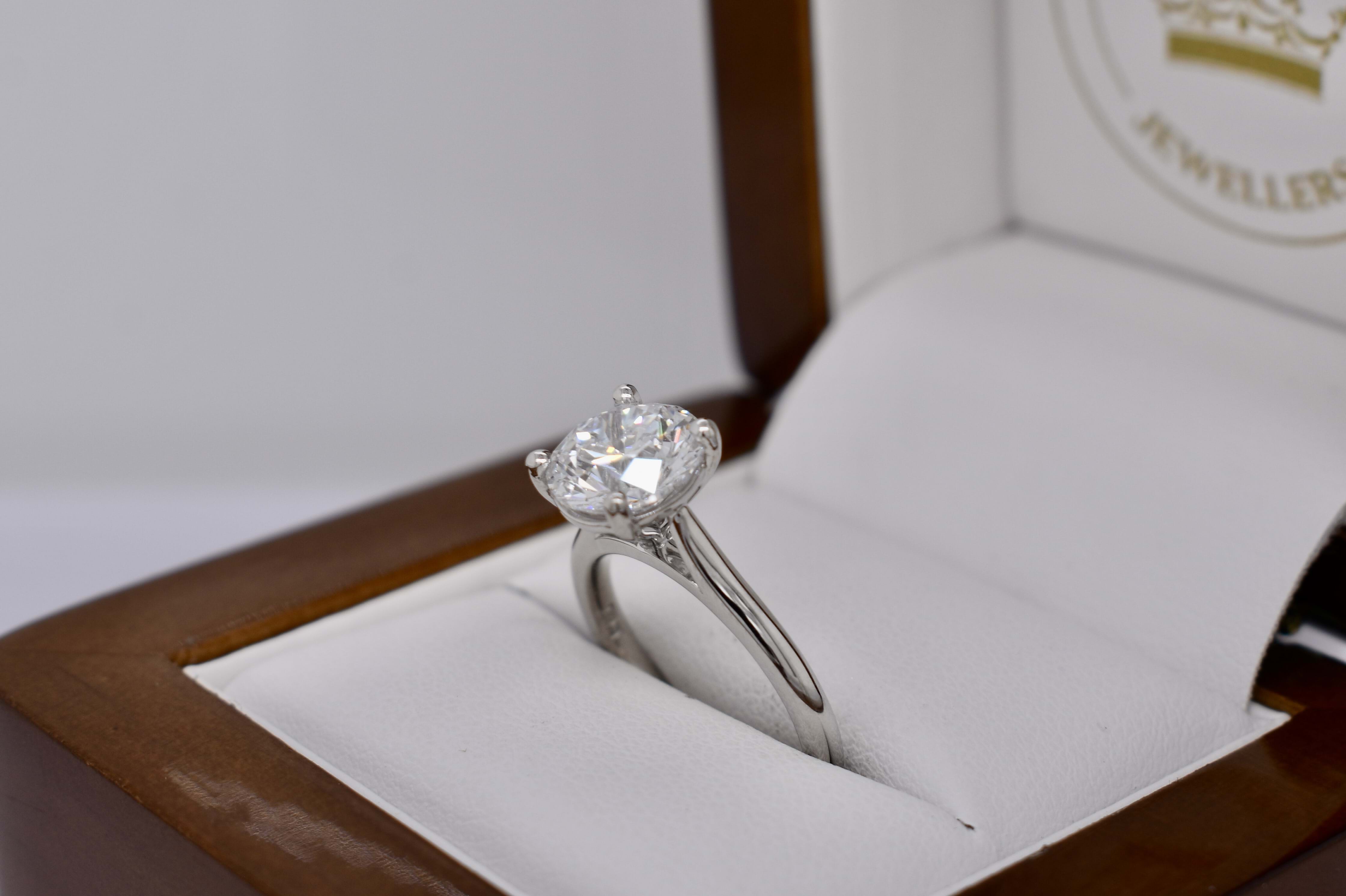 A classic solitaire design crafted using our clients diamond in both 18ct white gold and platinum, this design combines style and practicality with the foresight to last a lifetime.
