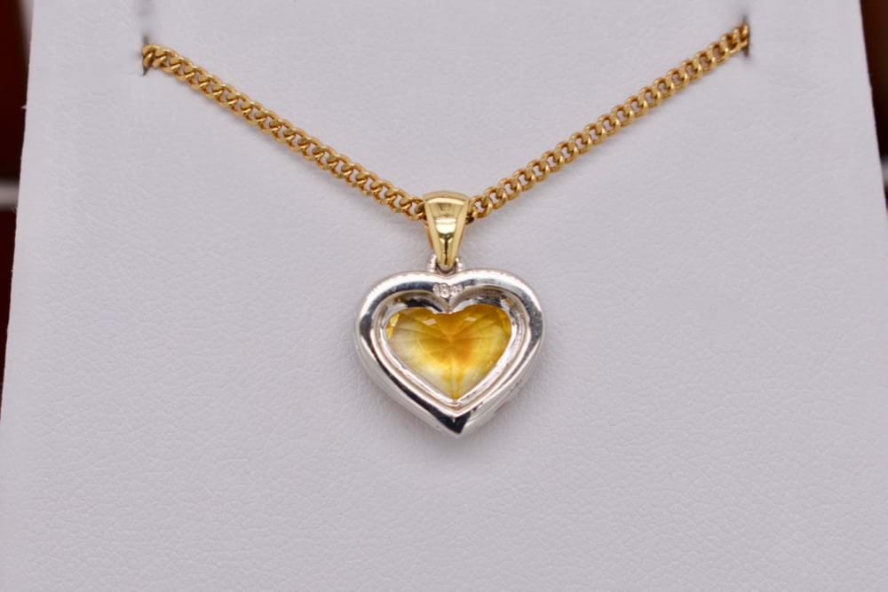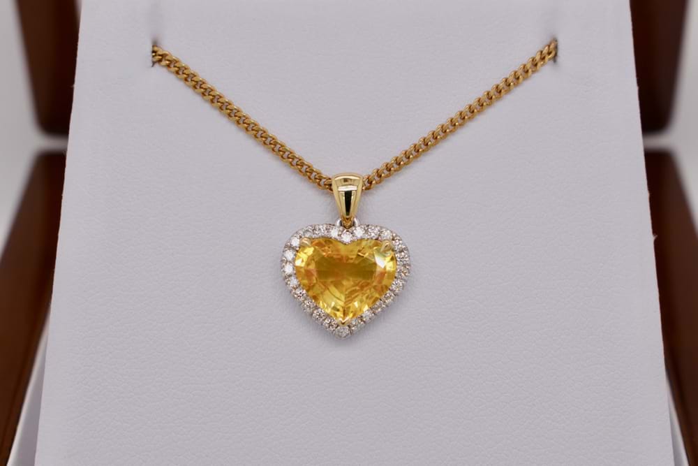 Archived 18ct Yellow Gold 3.01ct Heart Yellow Sapphire & 0.24ct Diamond Pendant