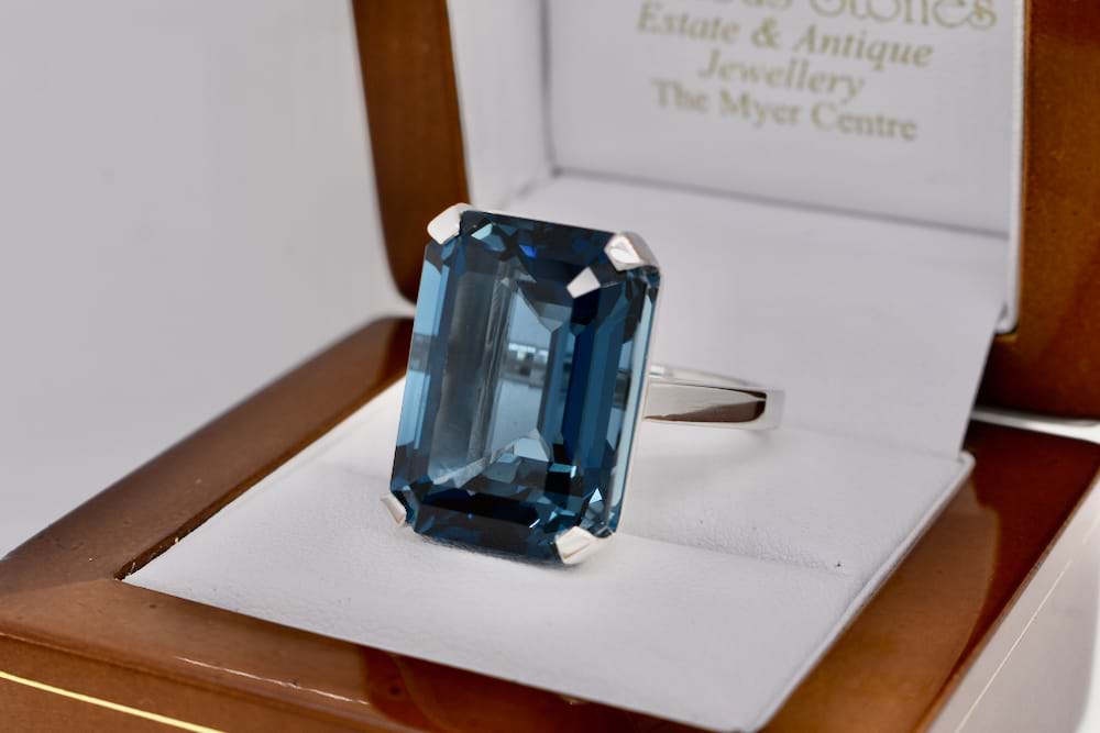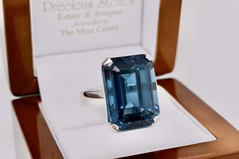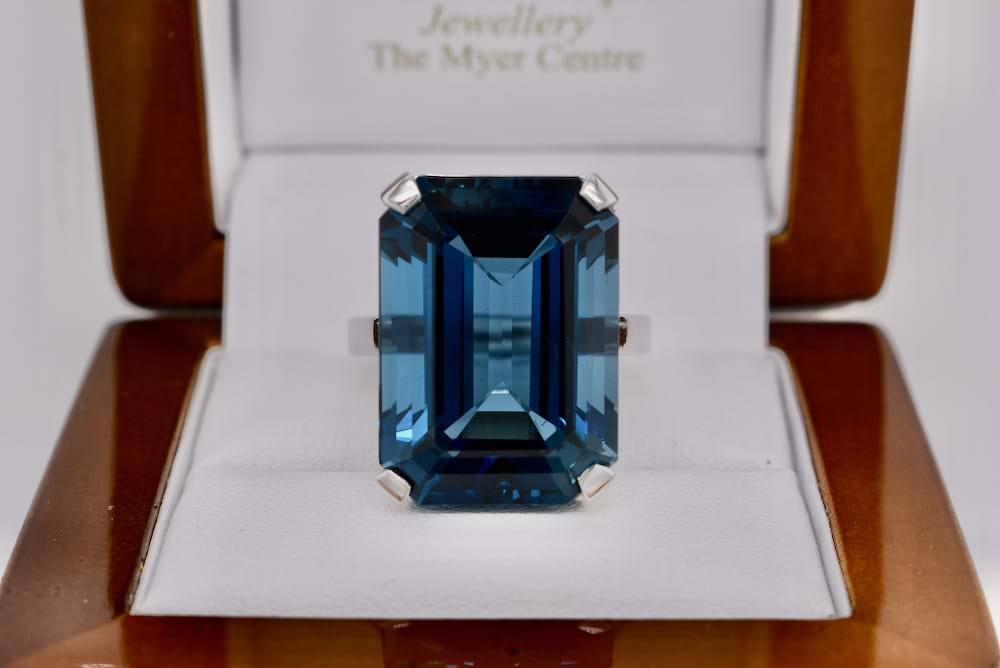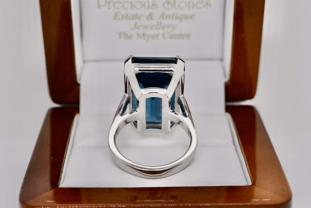 Did someone say cocktail ring? This eye catching 36.07ct emerald cut London blue topaz was instantly snapped up by our lovely client and soon after set into this custom 9ct white gold simple and timeless dress ring. Independent Valuation Supplied. This bespoke creation is being enjoyed by its new owner, if you are inspired by this archived design contact us today to discuss how we can create something incredible for you or your loved one.