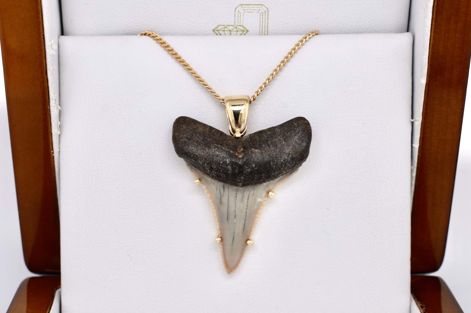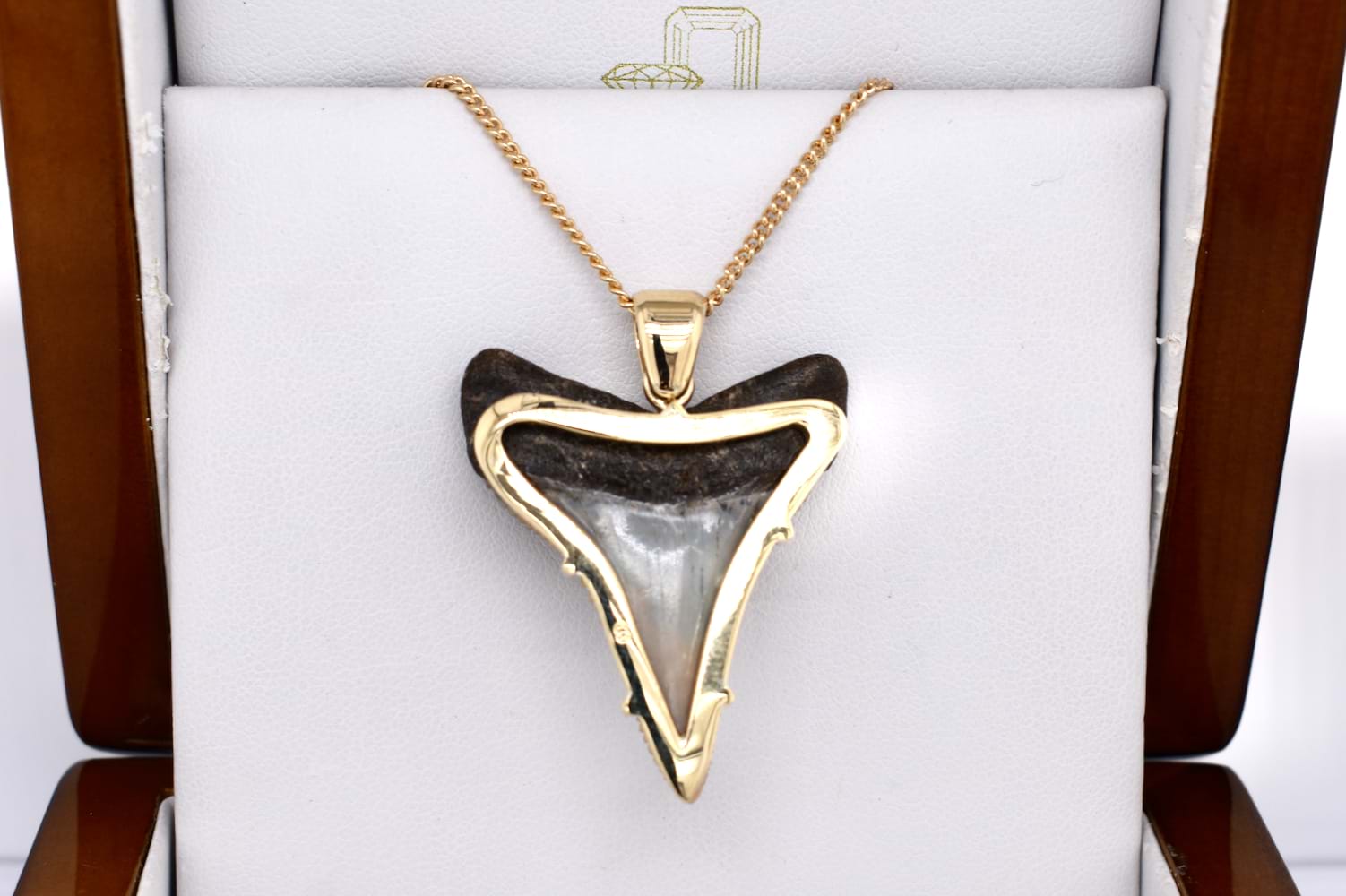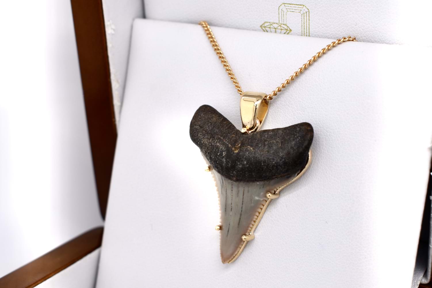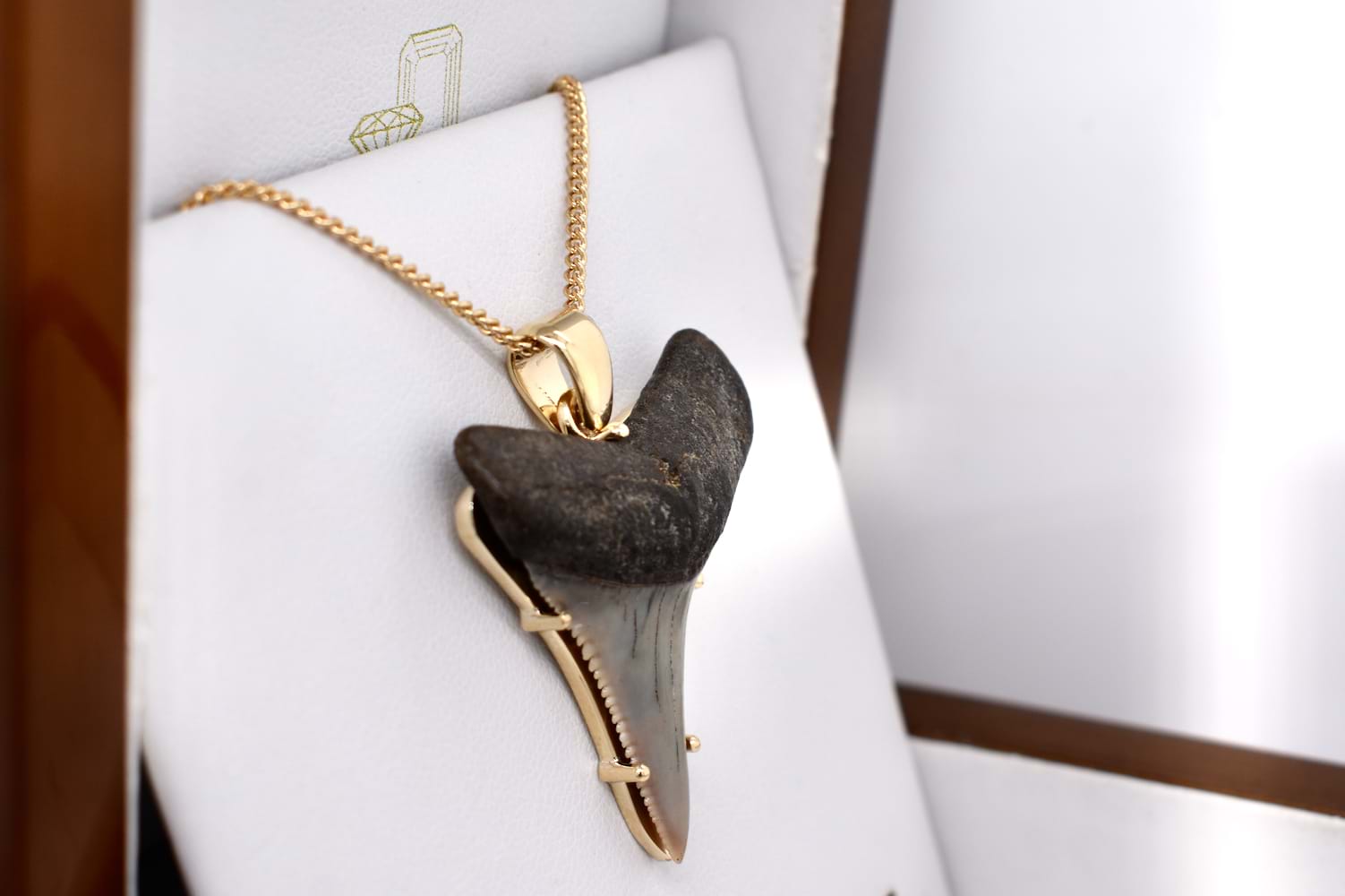 Our client supplied this very cool and unusual specimen: Shark tooth to be the feature of this simple and striking handmade 9ct yellow gold pendant.