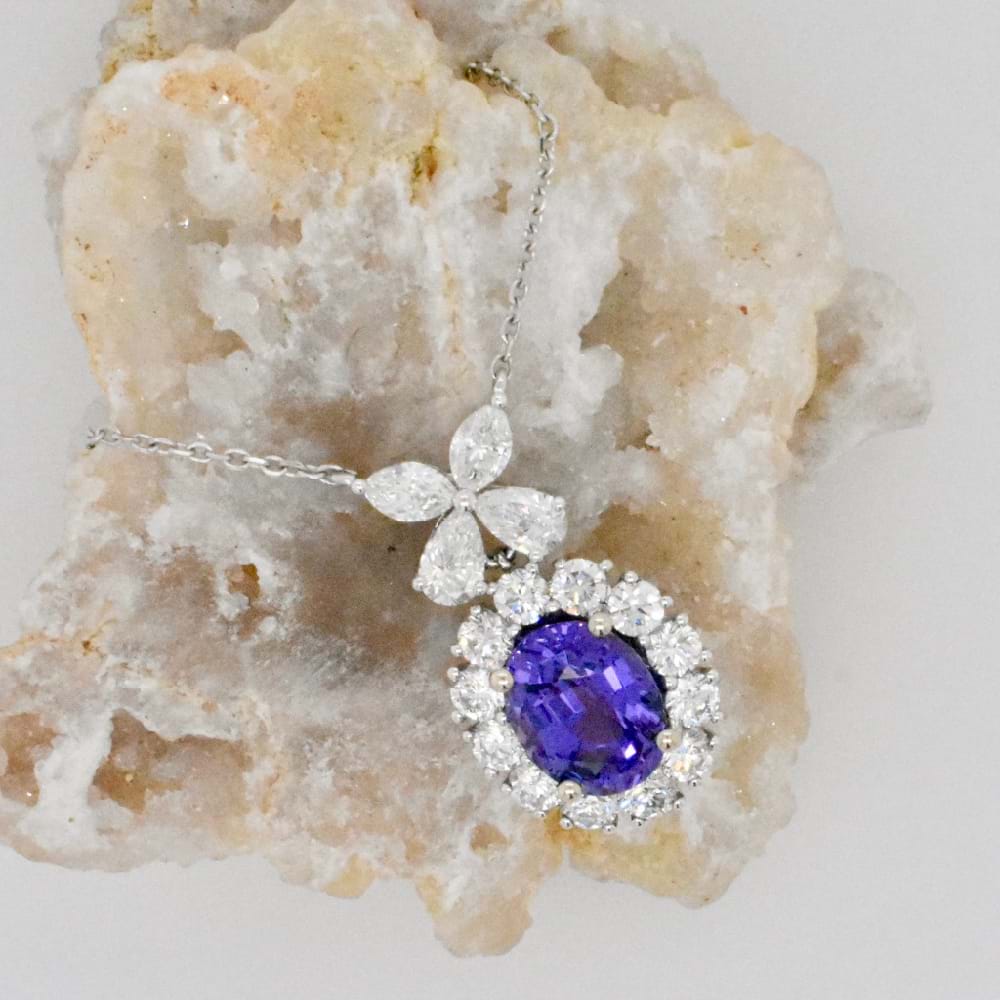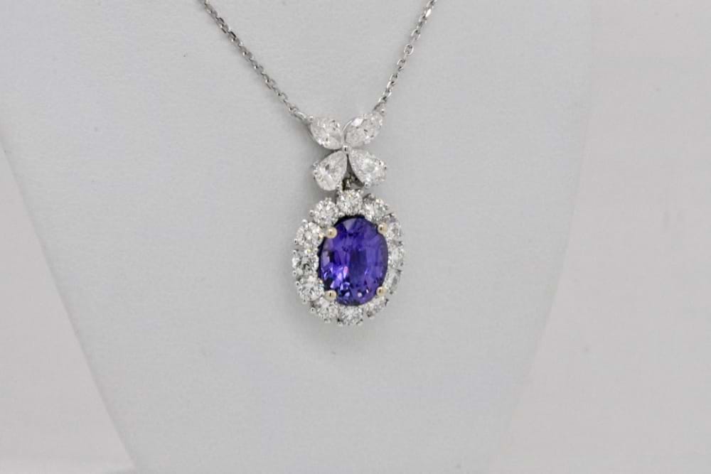 Archived Design 18ct White Gold 3.26ct Unheated Purple Sapphire & 1.92ct Diamond Necklace
