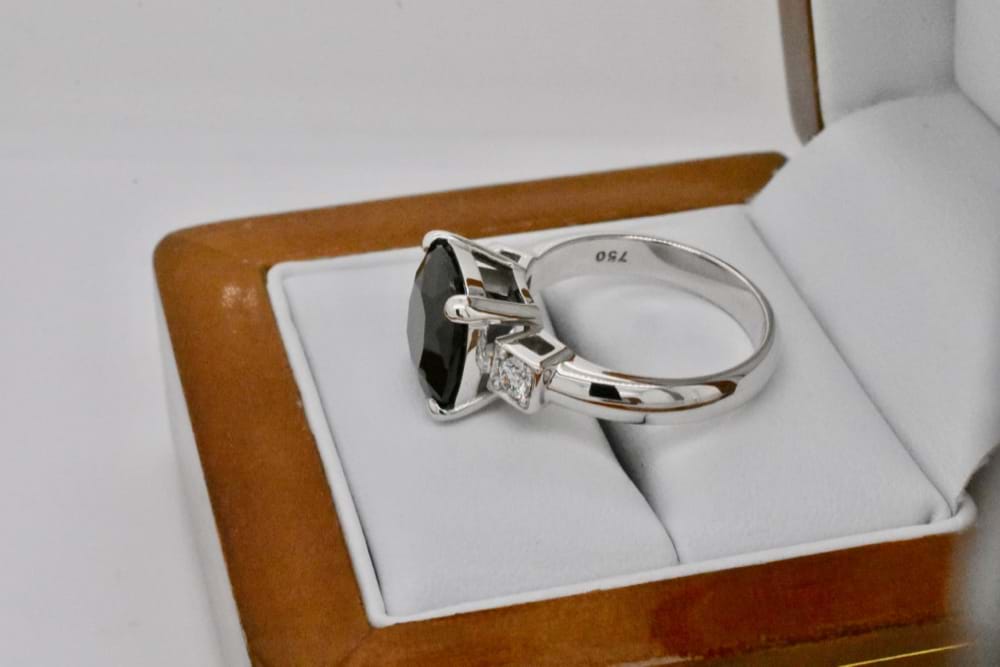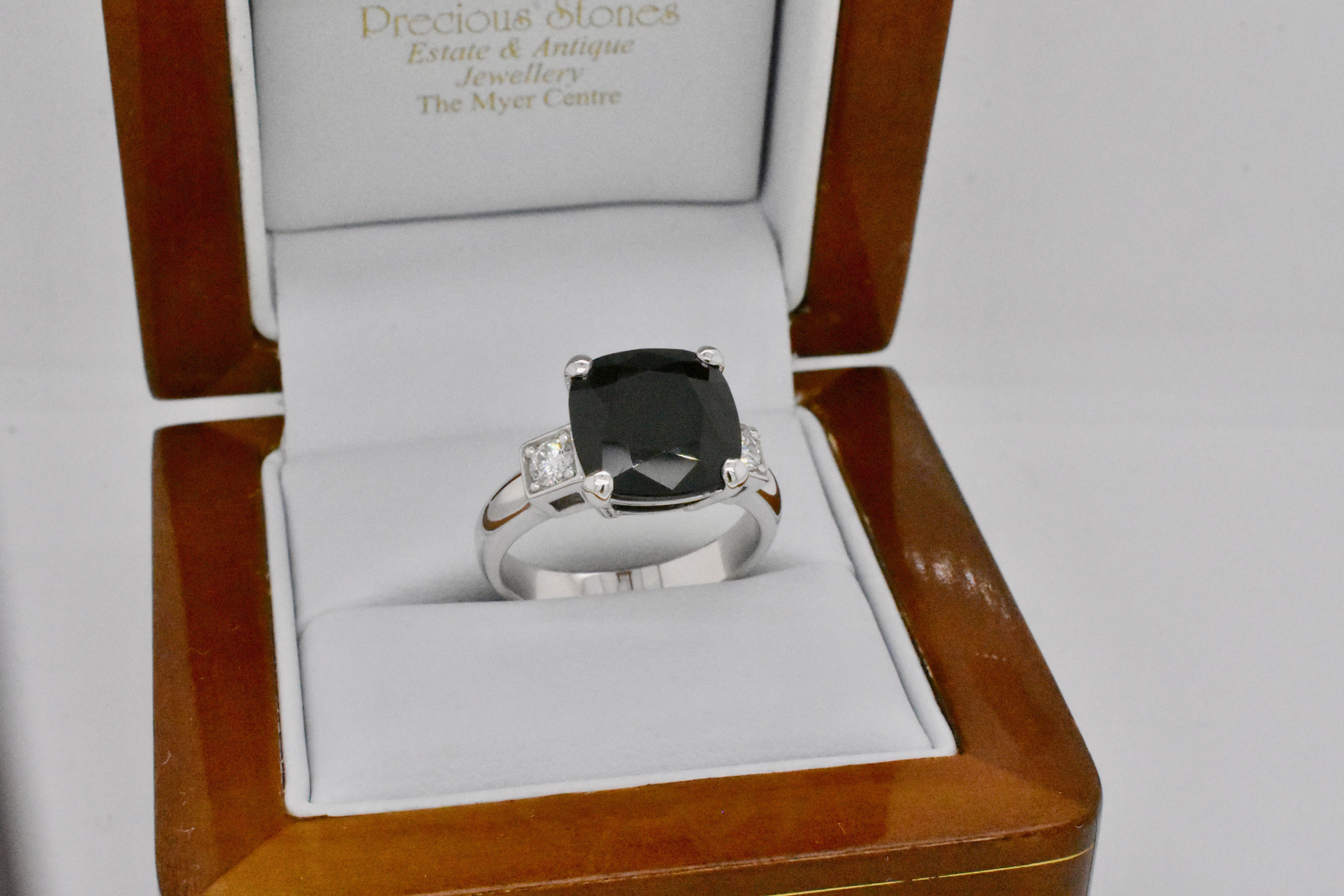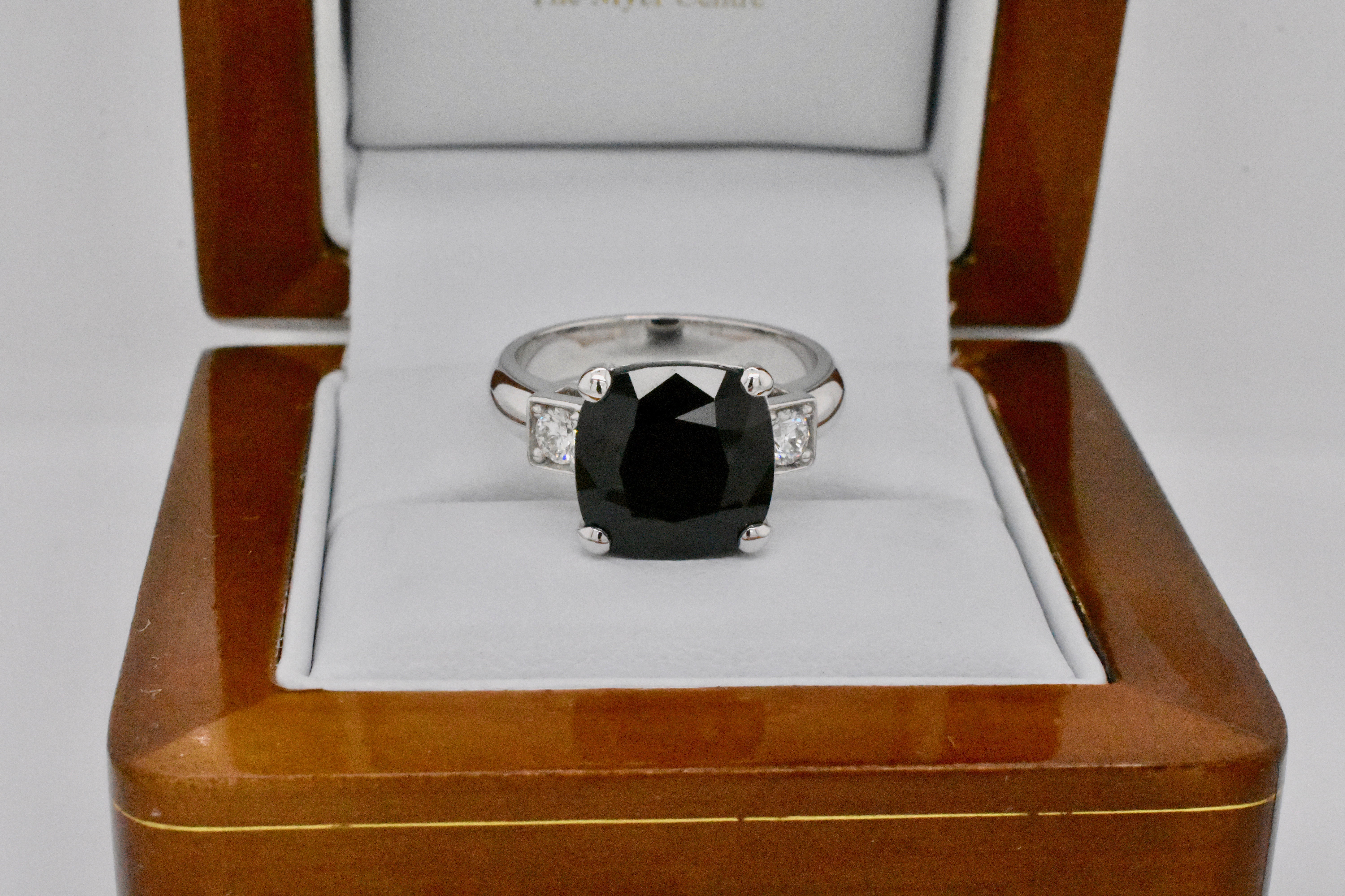 Archived Design 18ct White Gold 7.30ct Black Spinel & 0.26ct Diamond Ring