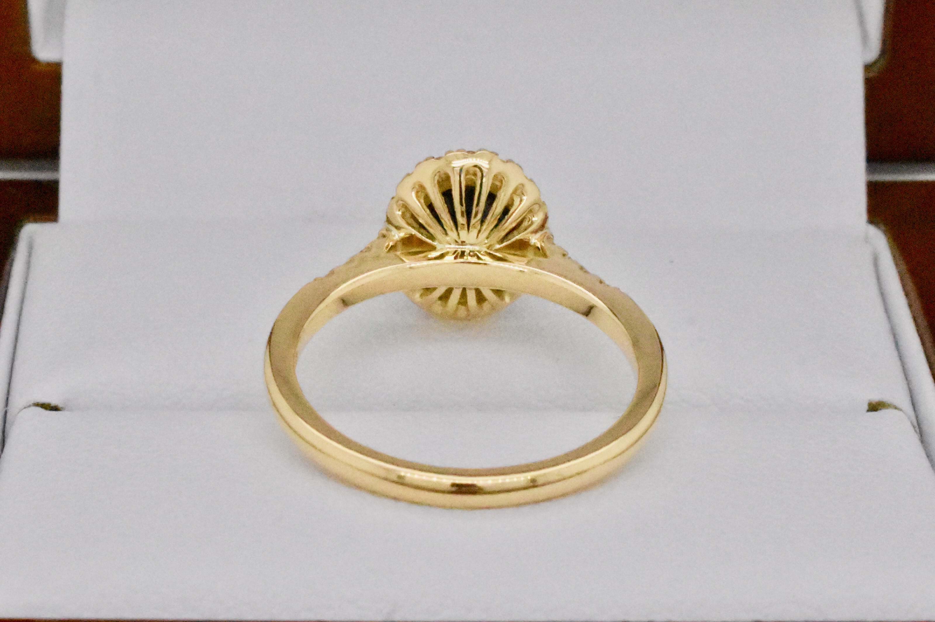 This one of a kind, custom, engagement ring was designed in store alongside our client to suit his fiance to be perfectly! With a 1.06ct Australian sapphire in the centre selected by our client and a halo of natural white sapphires around the centre stone continuing down the band, this ring is designed to sit with a plain or gem set wedding band. Independent Valuation Supplied. If you are inspired by this archived design contact us today to discuss how we can create something incredible for you or your loved one.
