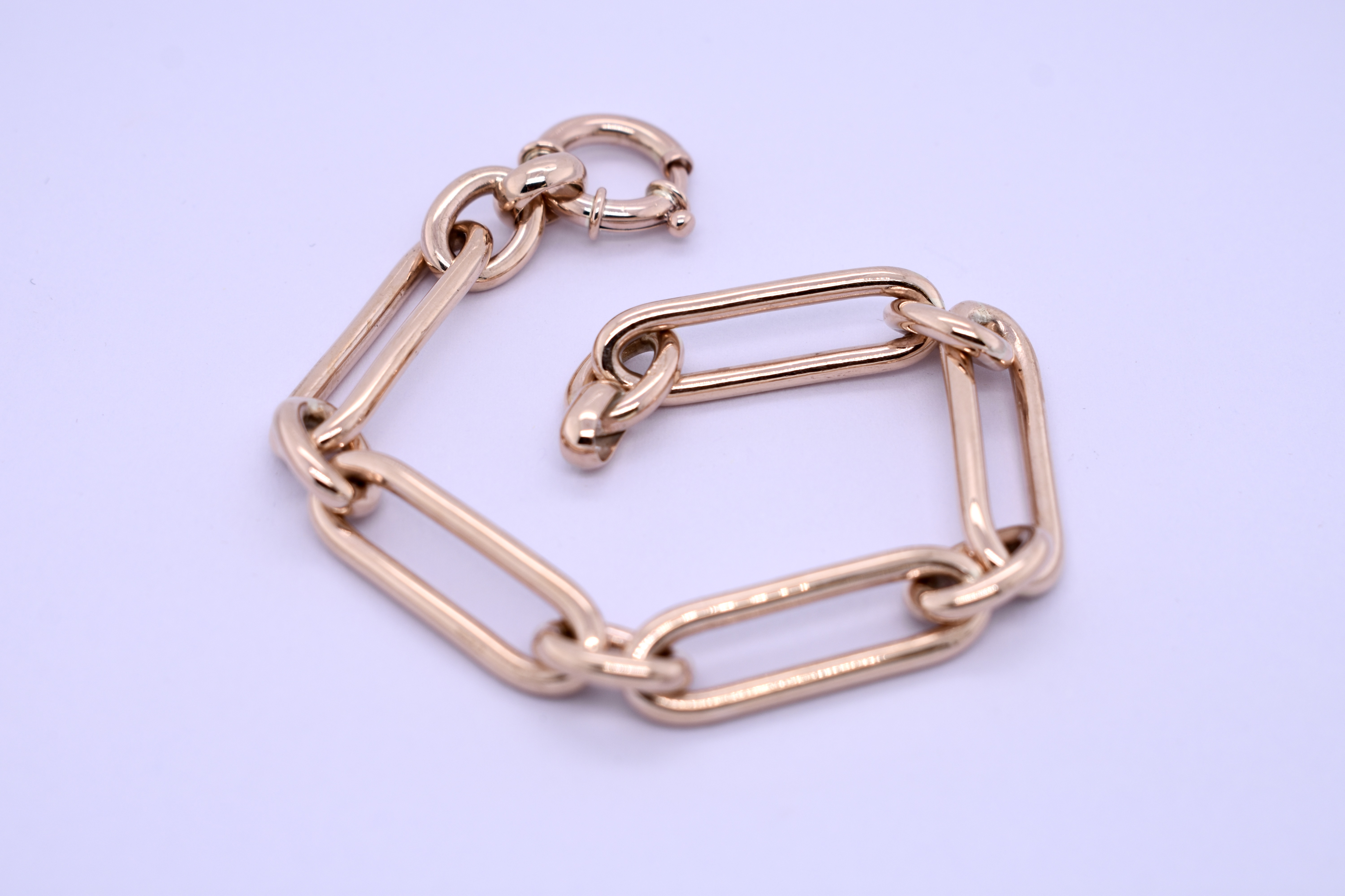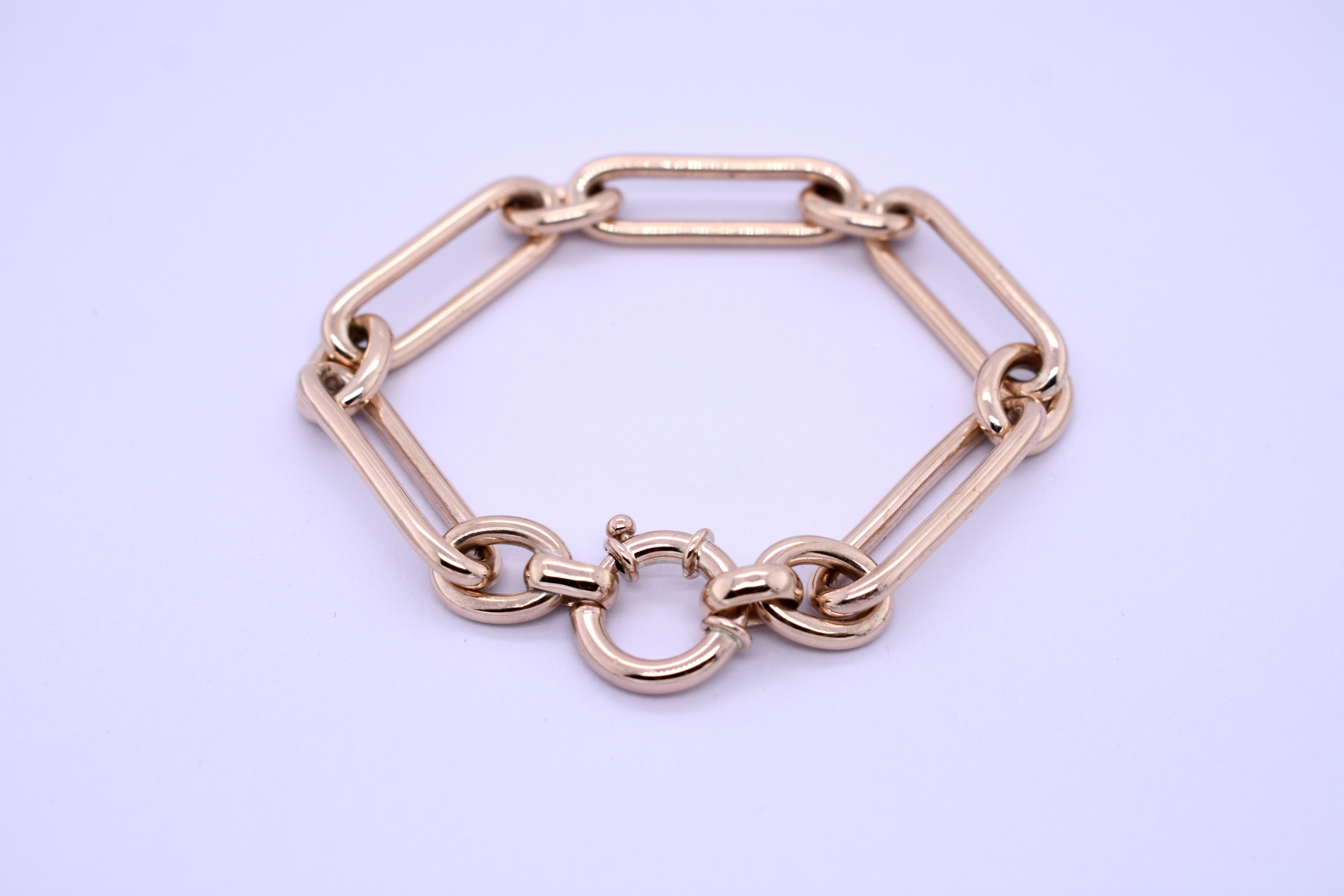Delicious and chunky handmade paperlink chain, crafted in 9ct rose gold using our clients recycled gold, total combined weight is 108grams including two 15mm boltring clasps.